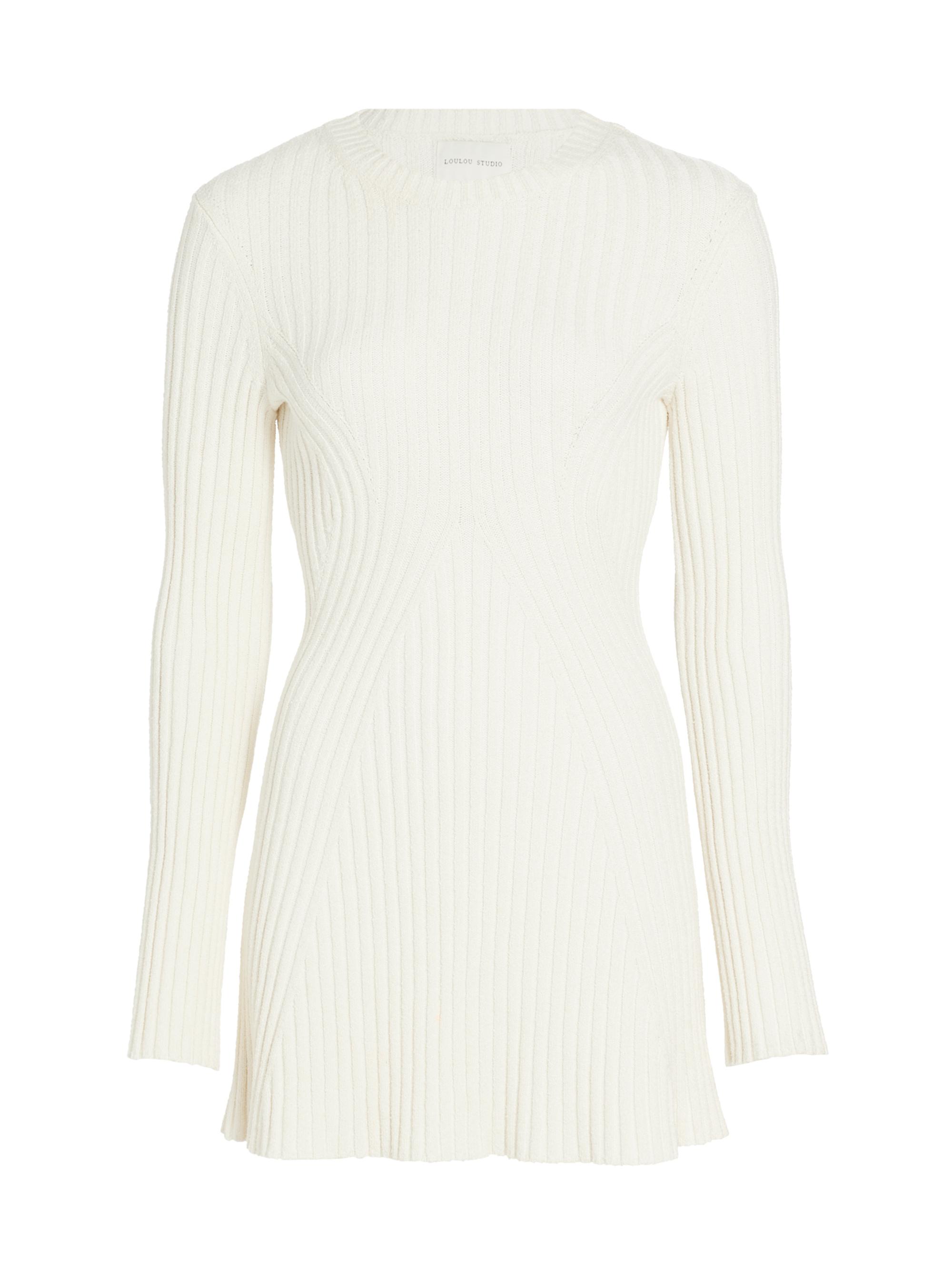 Loulou Studio Amalia Cotton-Blend Rib-Knit Minidress RICE IVORY
