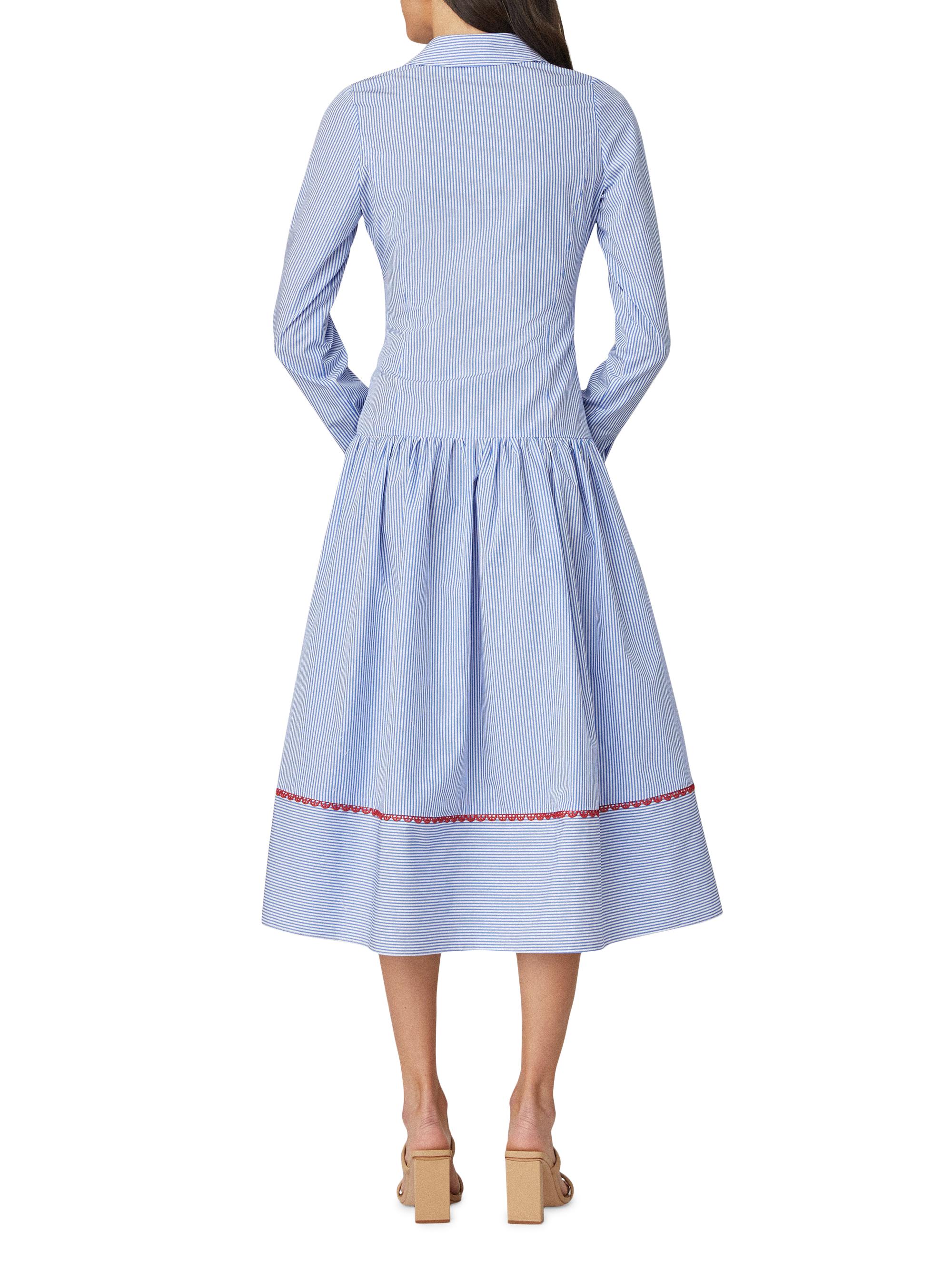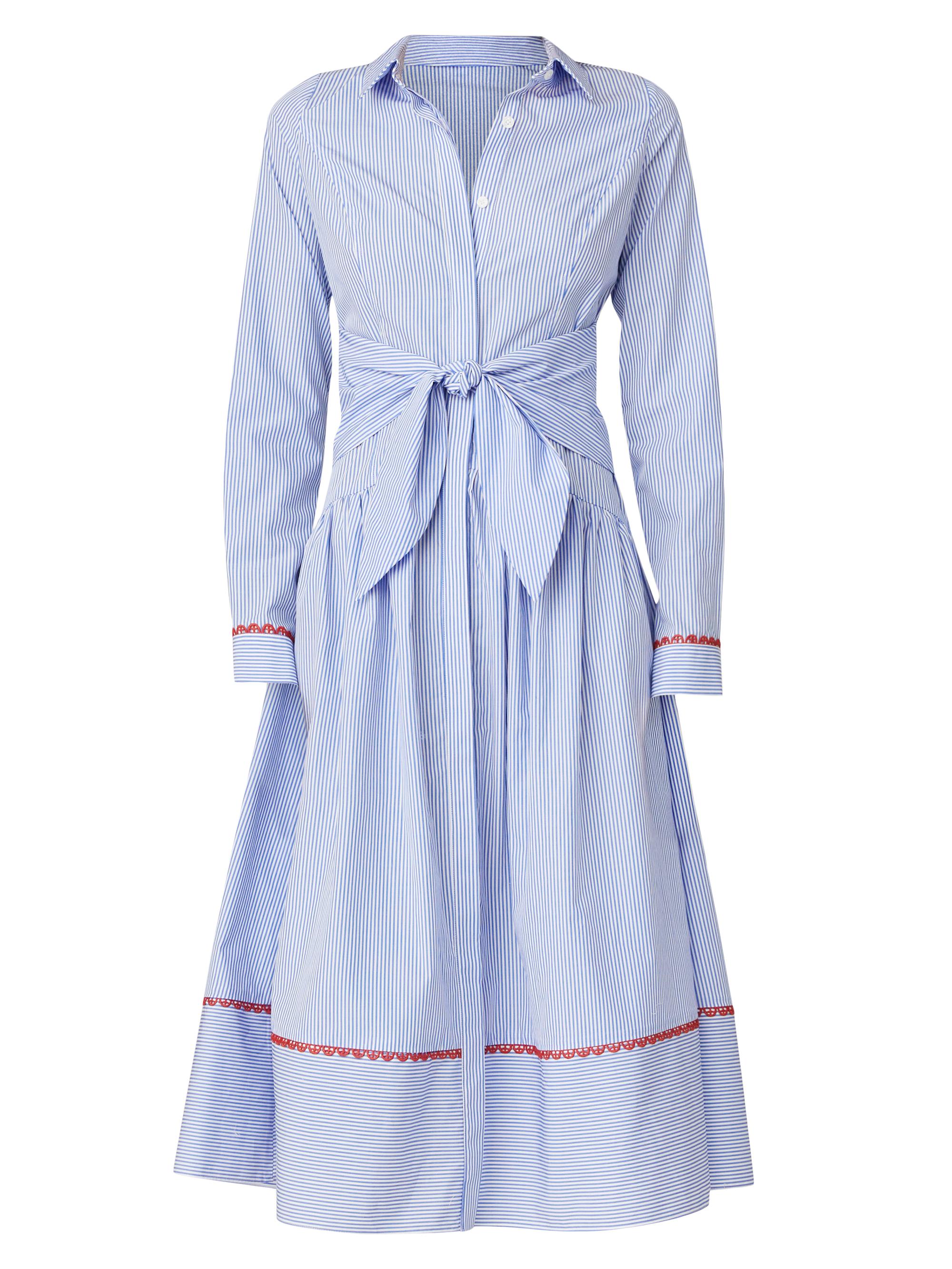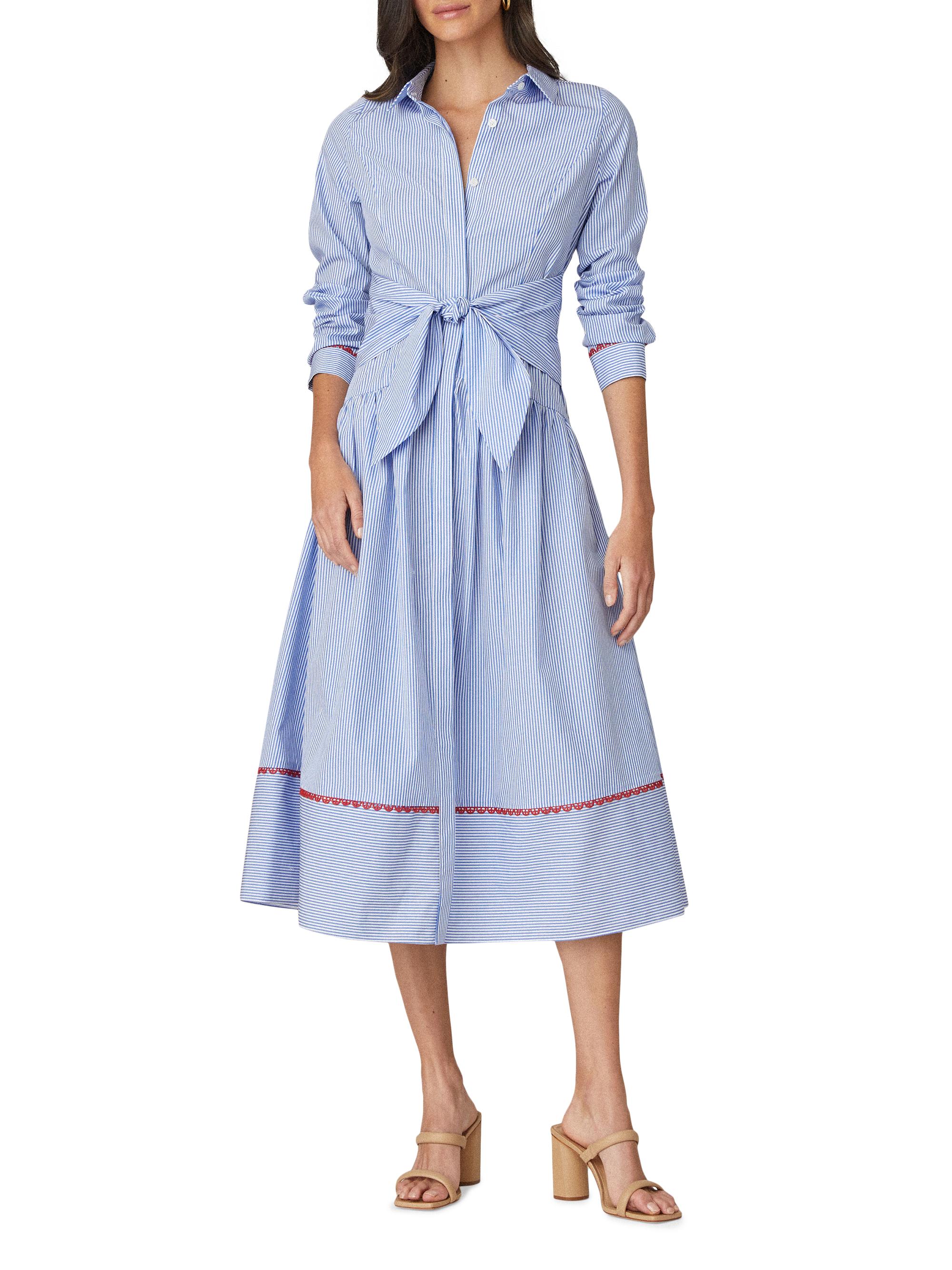 Shoshanna Clarice Striped Cotton-Blend Tie-Waist Shirtdress
