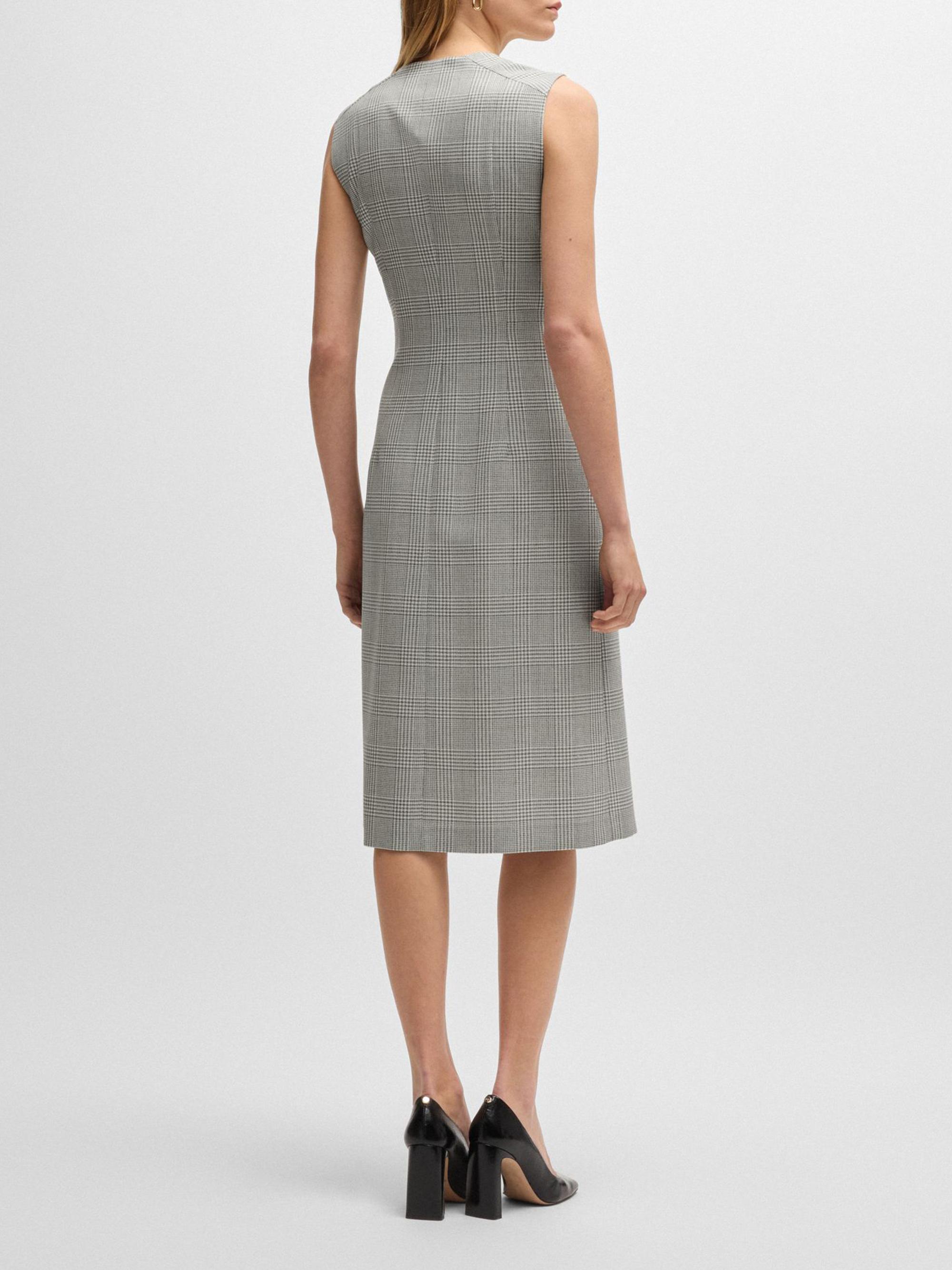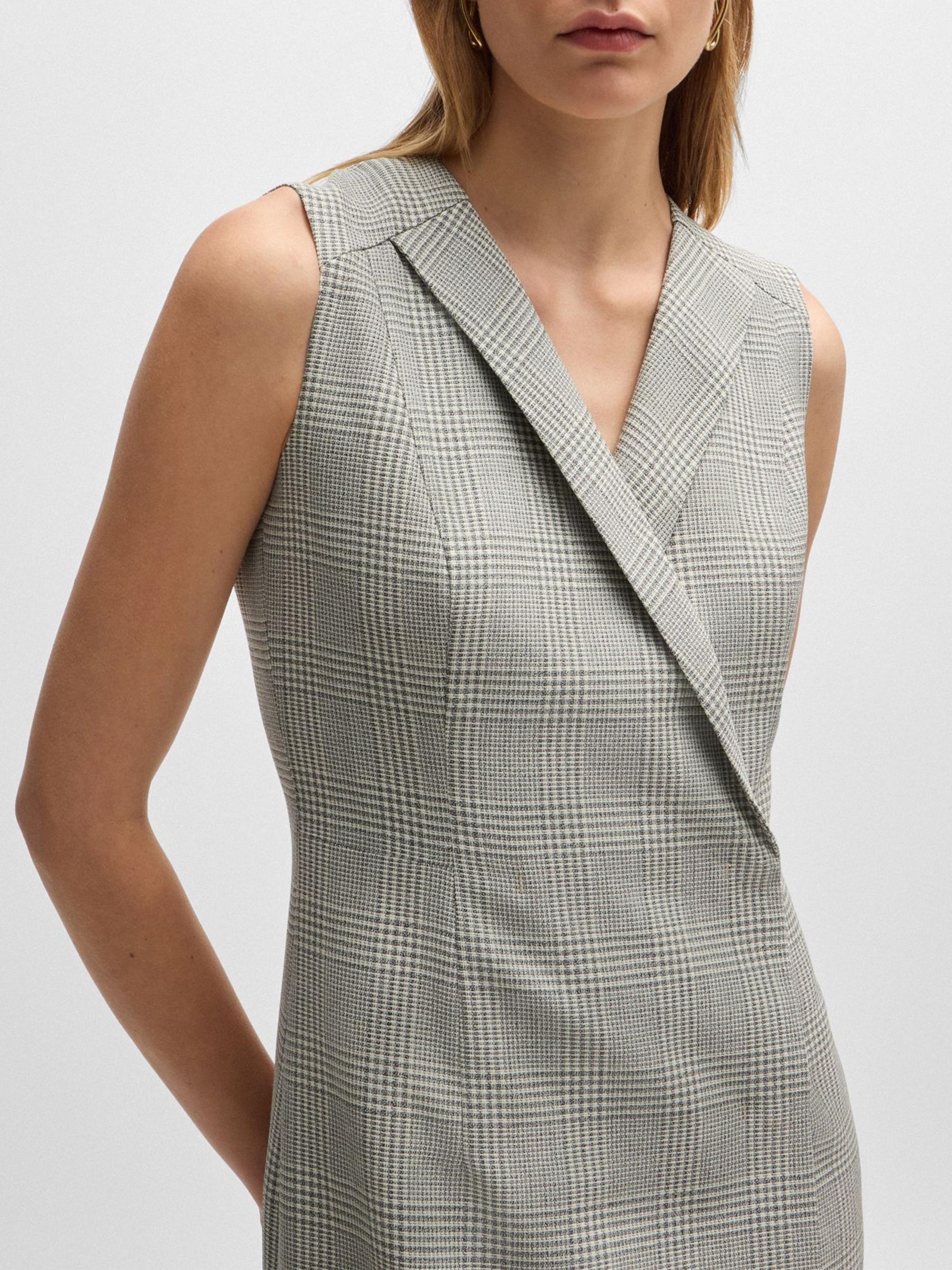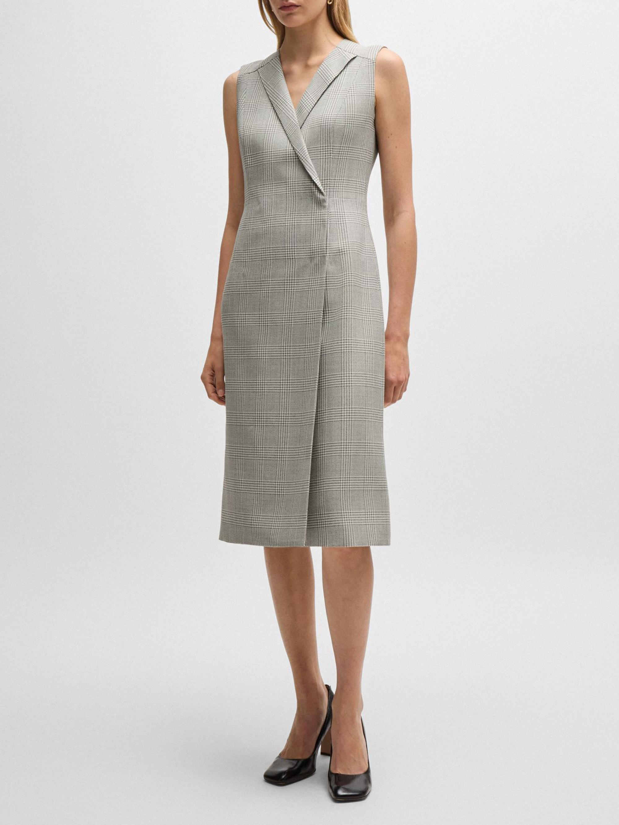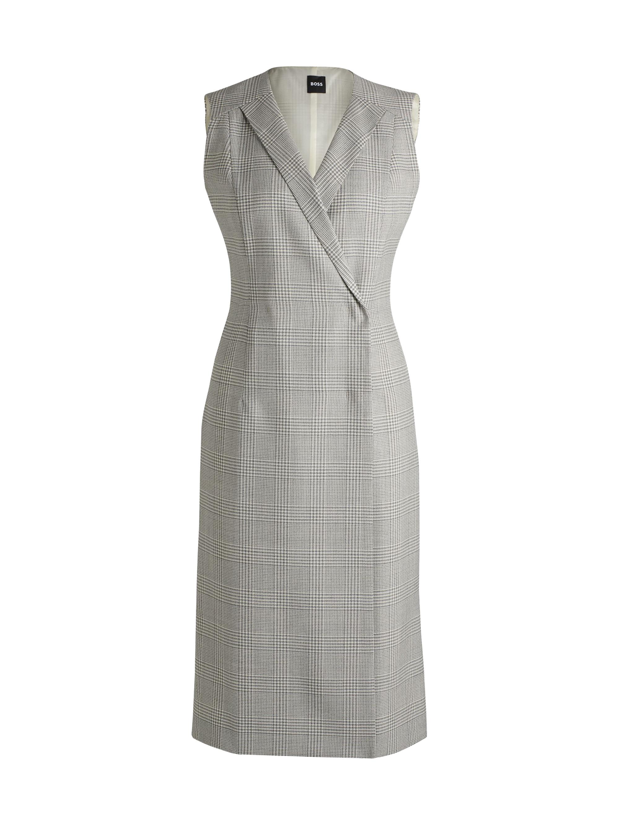 BOSS Wrap Front Dress in Checked Virgin Wool Crepe