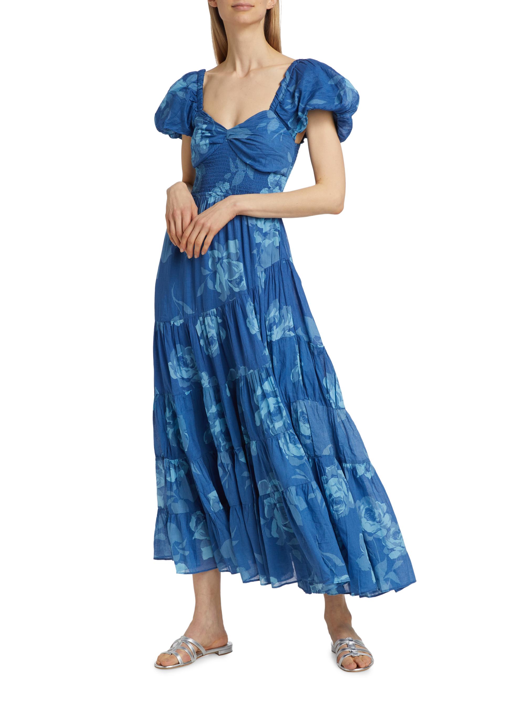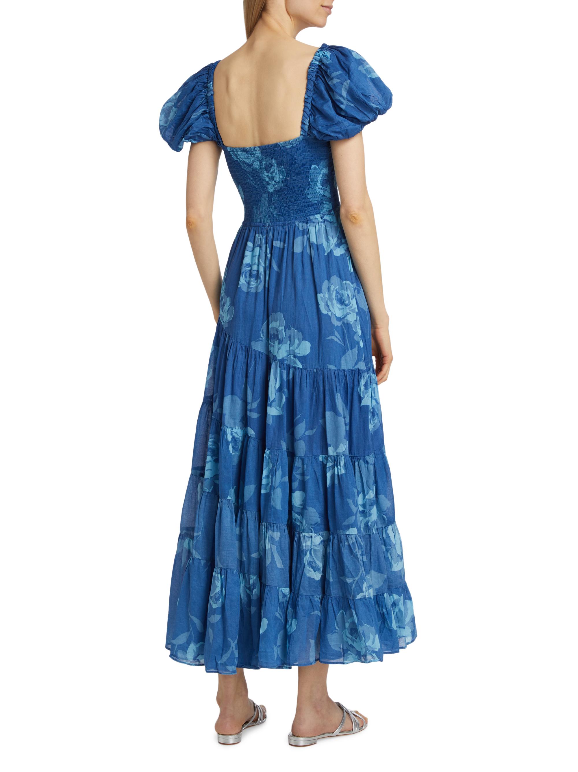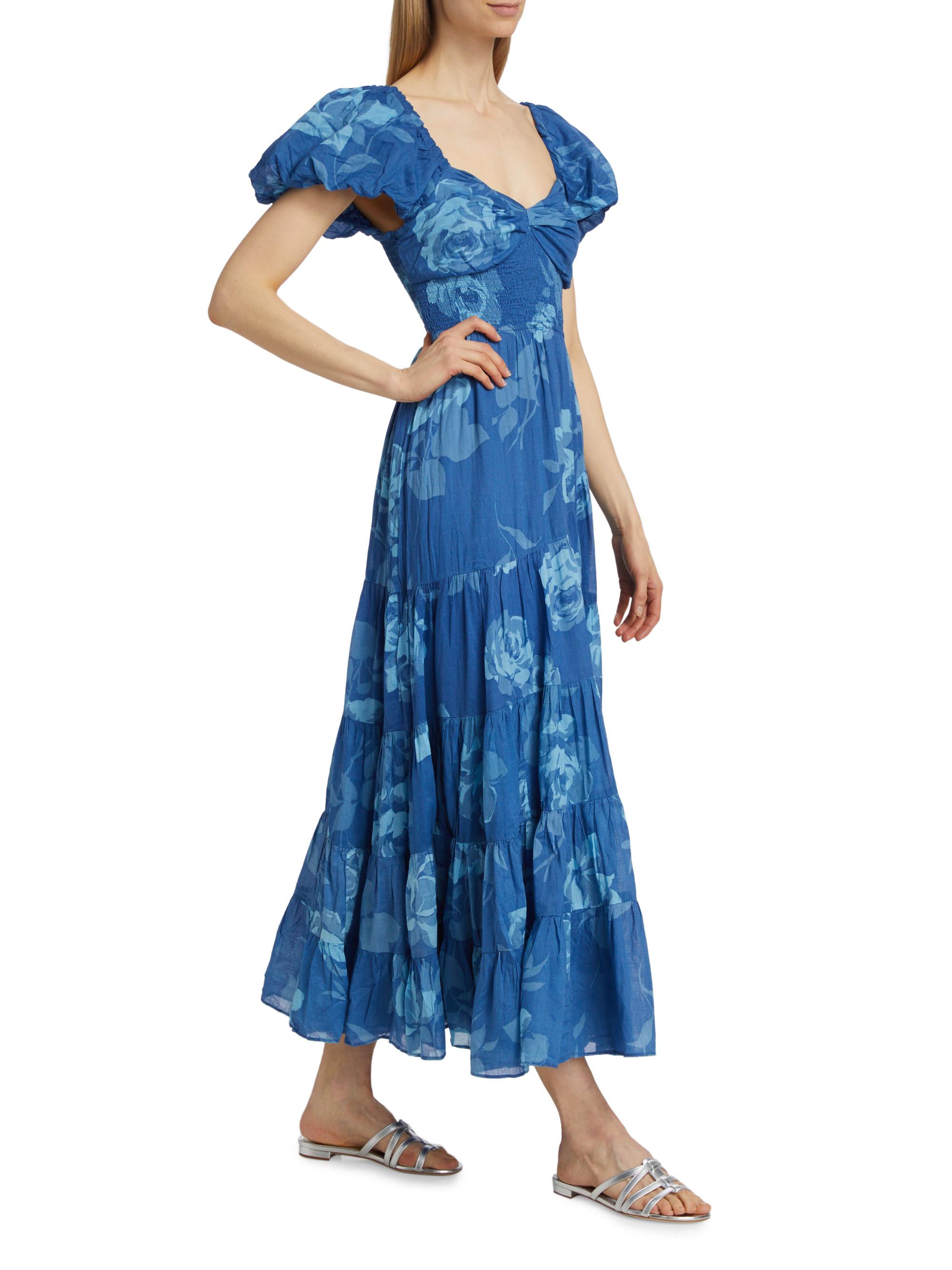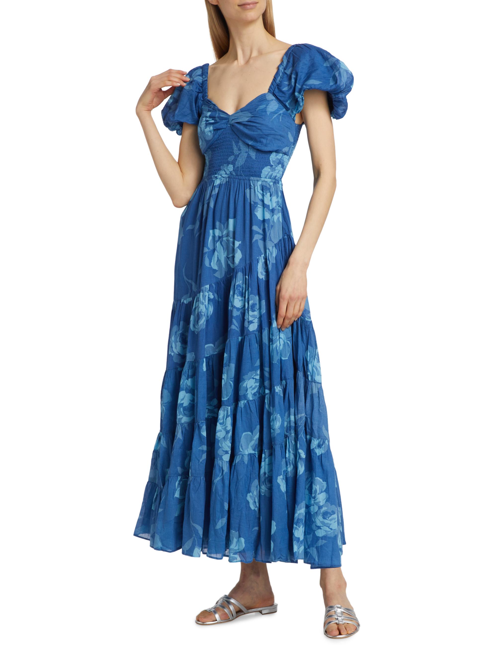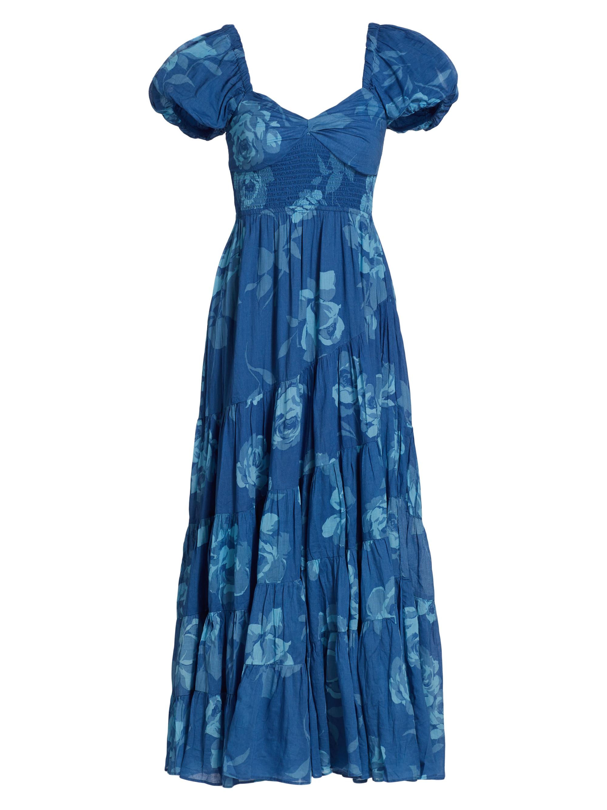 Free People Sundrenched Floral Cotton Tiered Maxi Dress SAPPHIRE COMBO