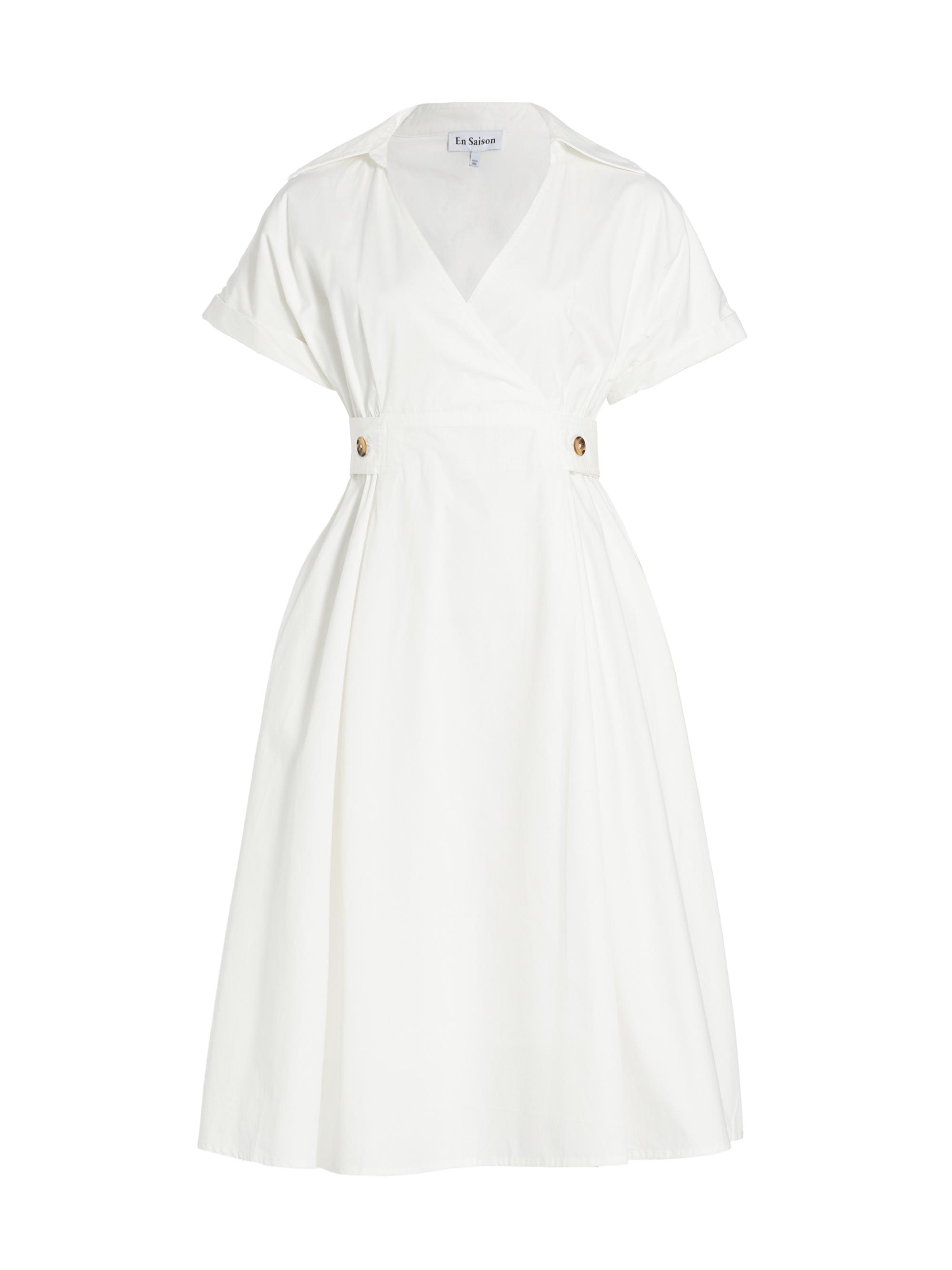 En Saison Lorena Cotton V-Neck Midi-Dress