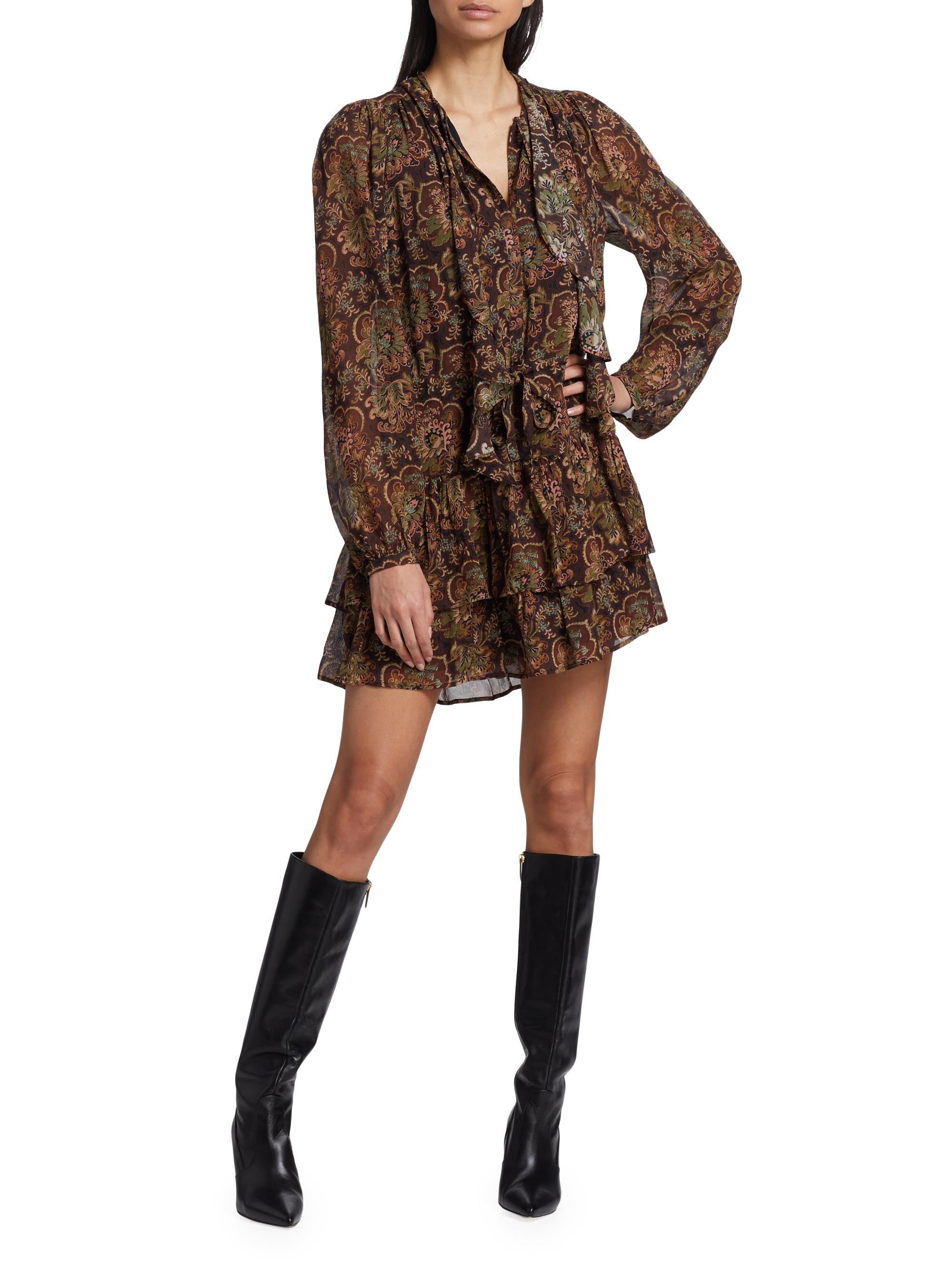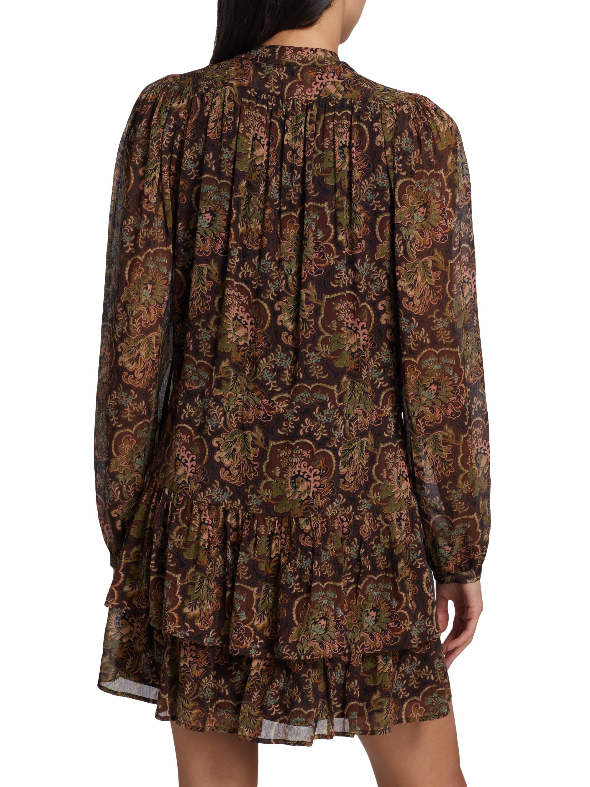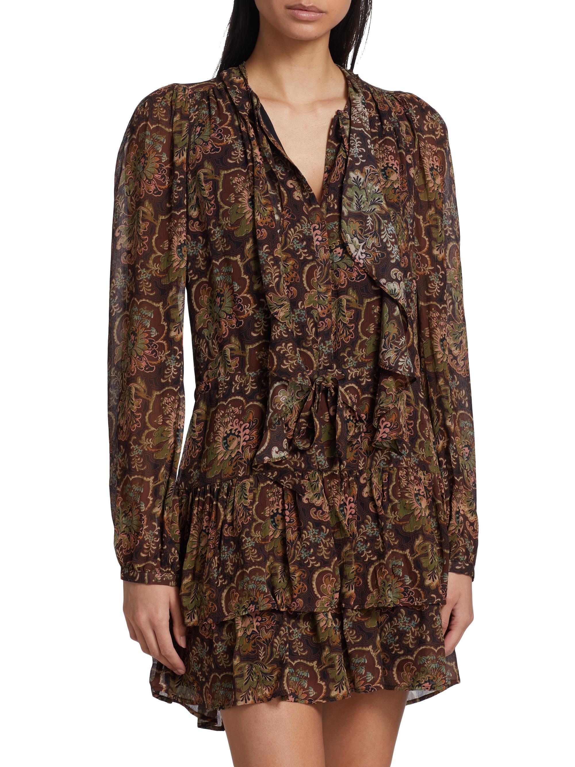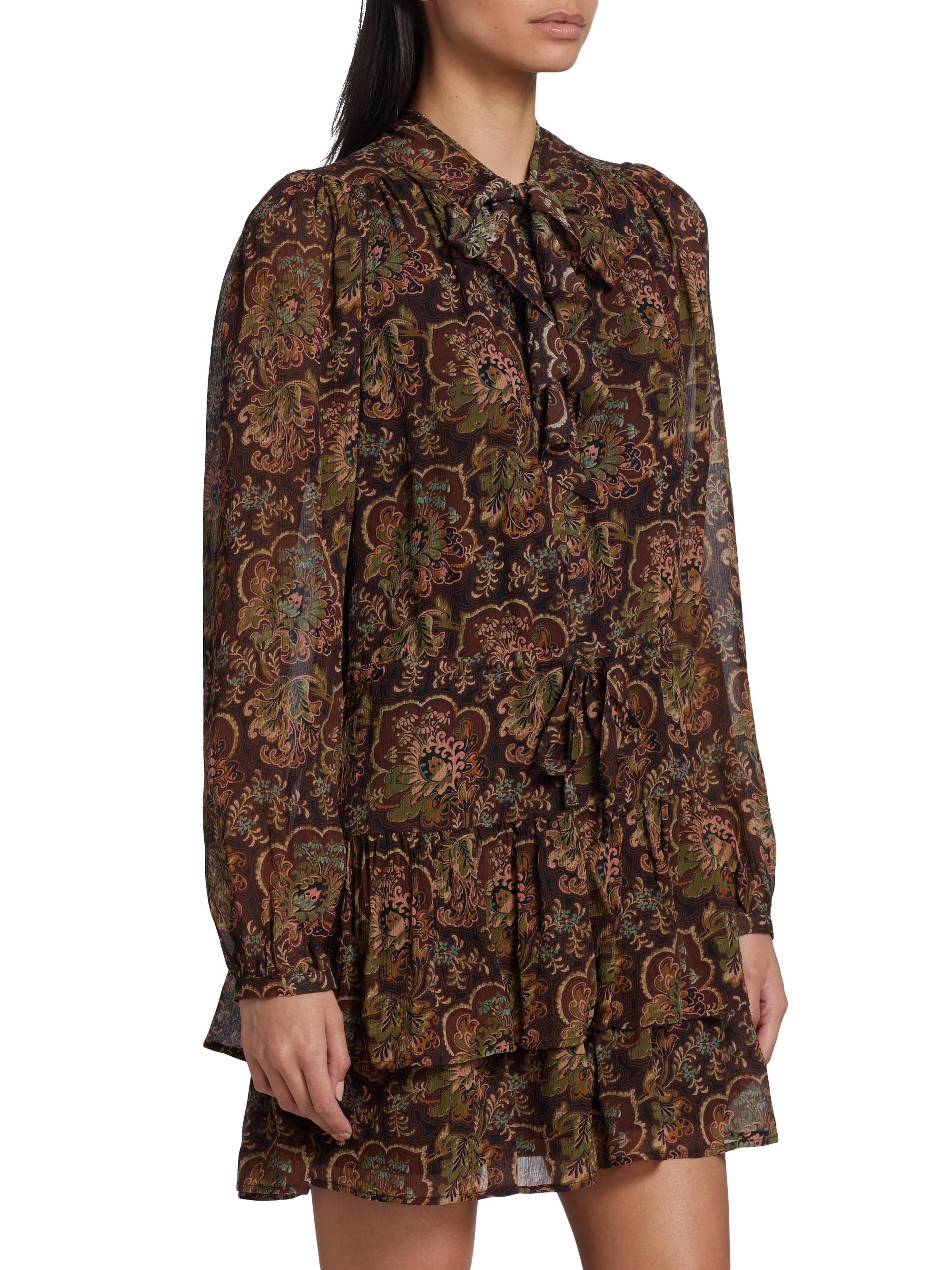 Paige Elias Floral Silk Tie-Neck Minidress