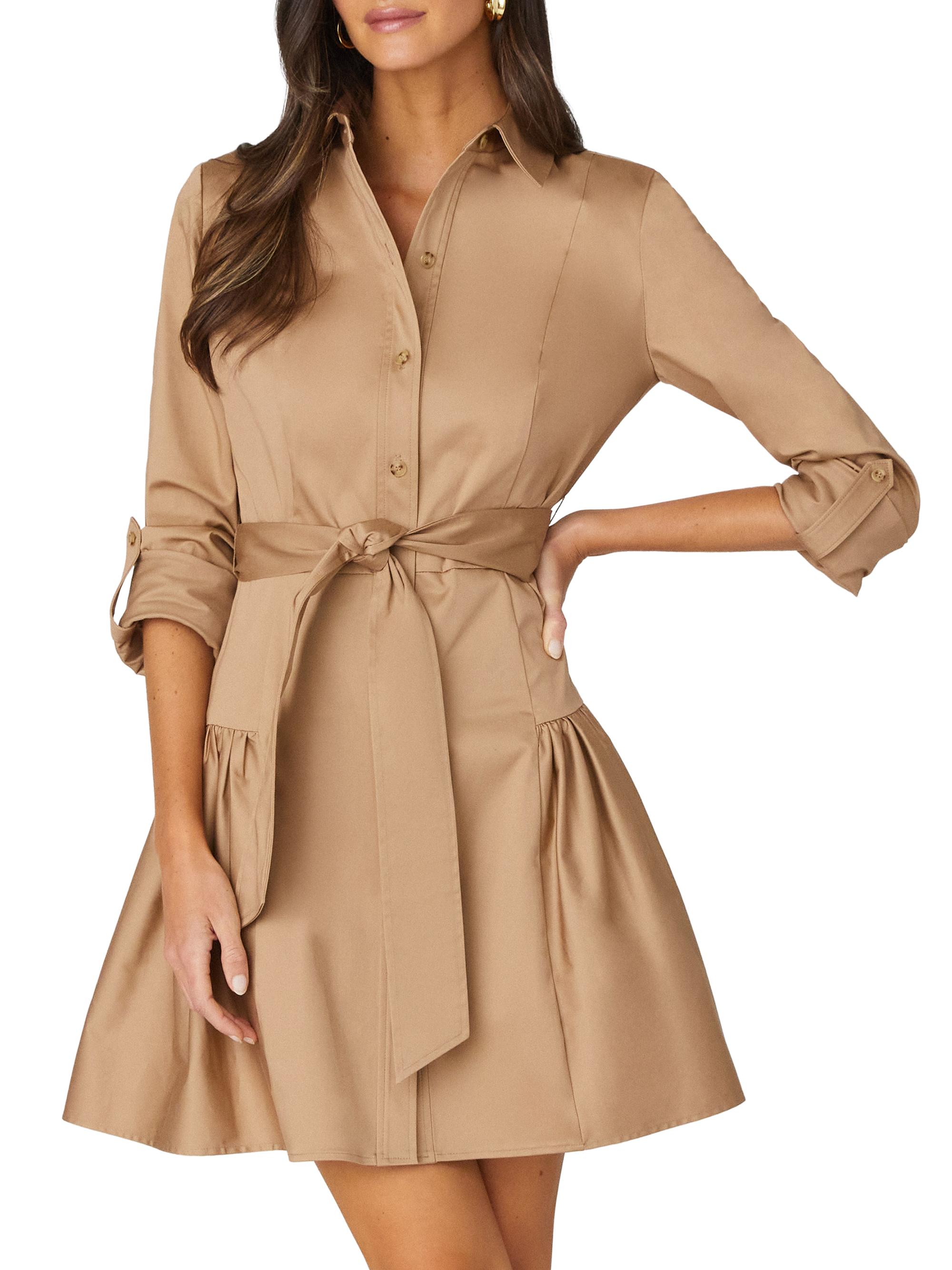 Shoshanna Ruth Stretch Cotton Tie-Waist Shirtdress