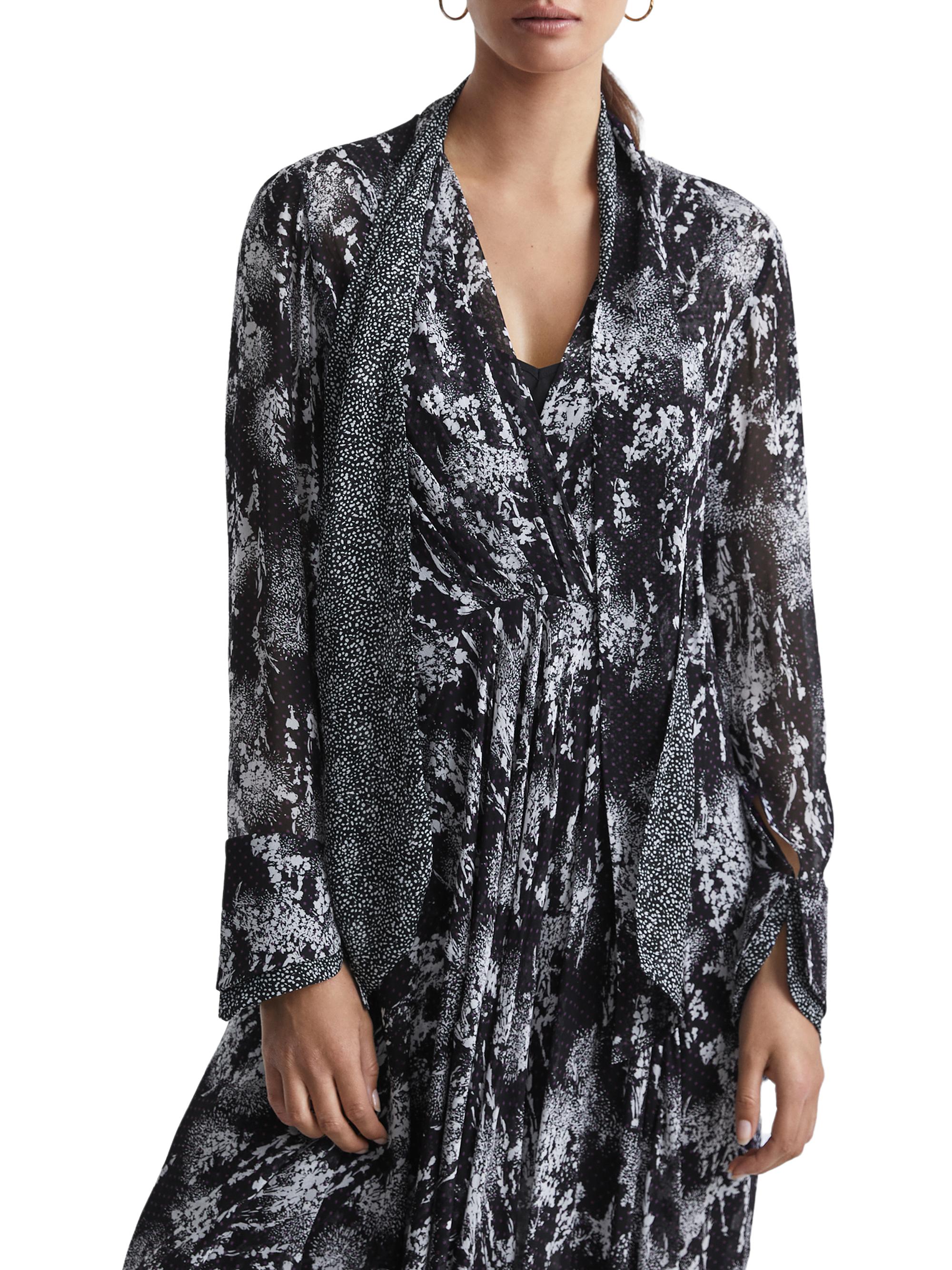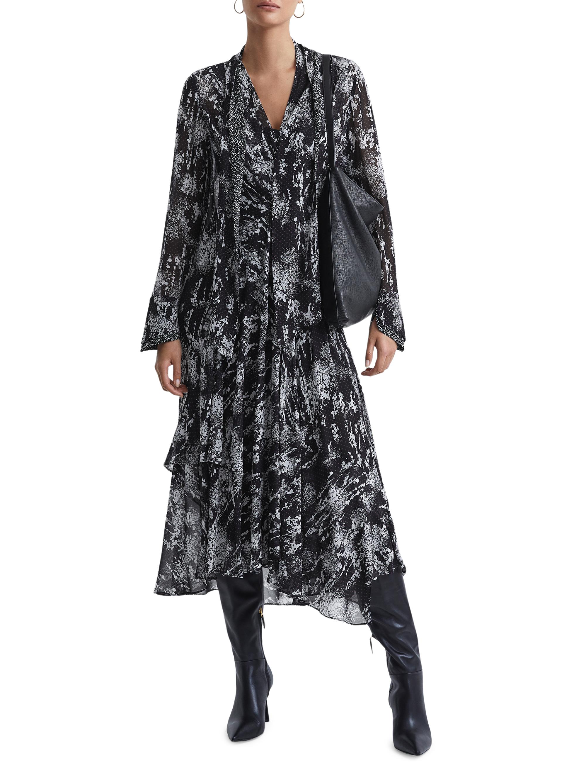 Reiss Callie Printed Tie-Neck Midi-Dress