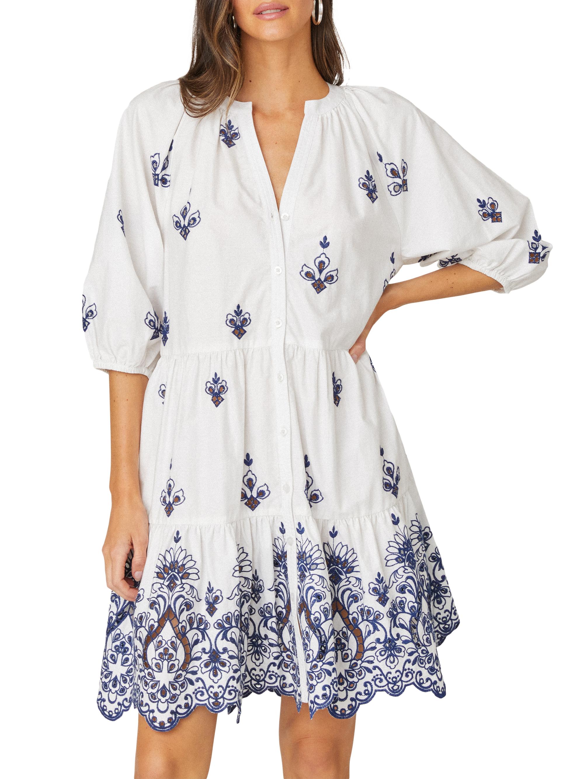 Shoshanna Arabesque Embroidered Cotton Minidress