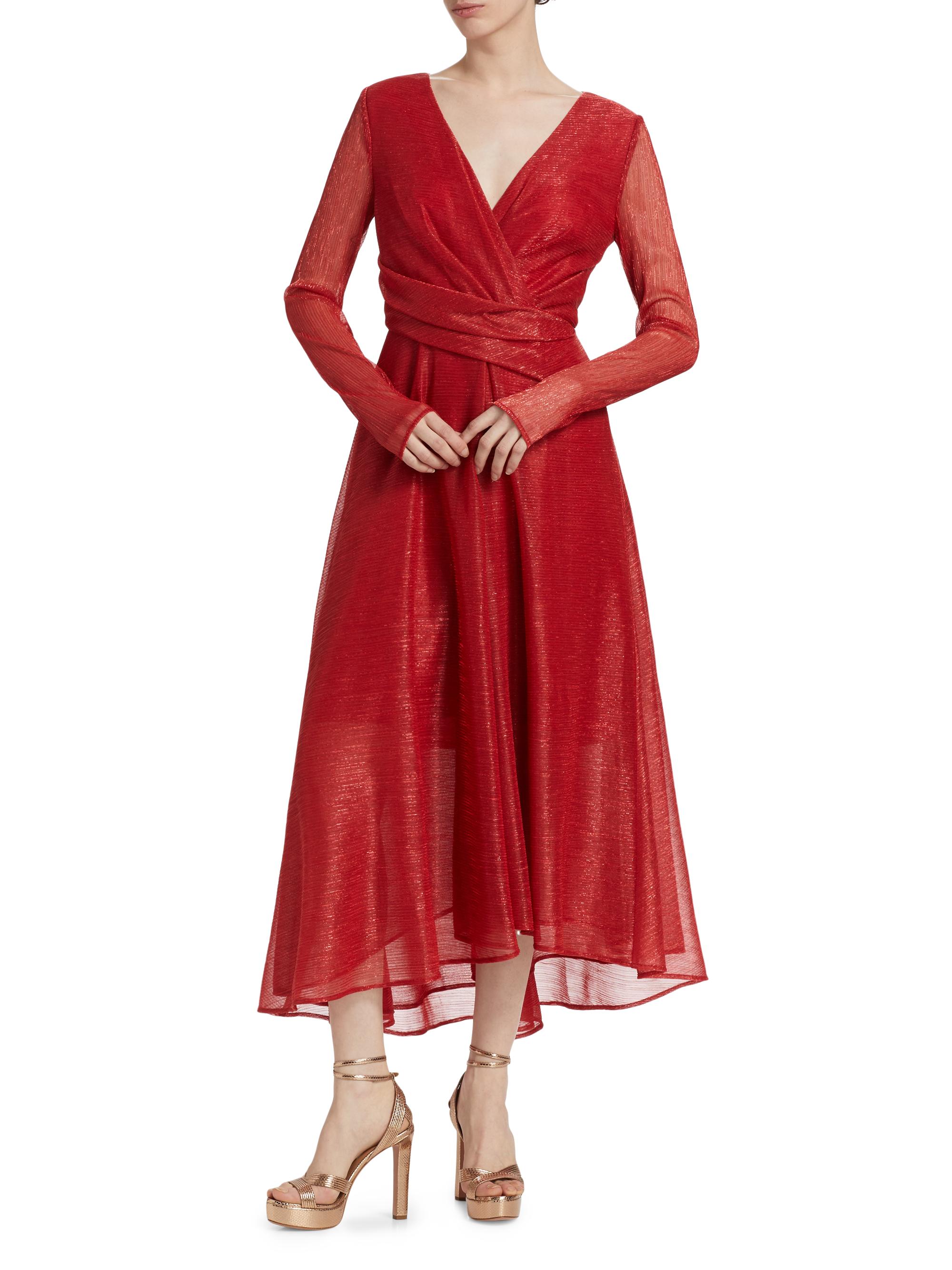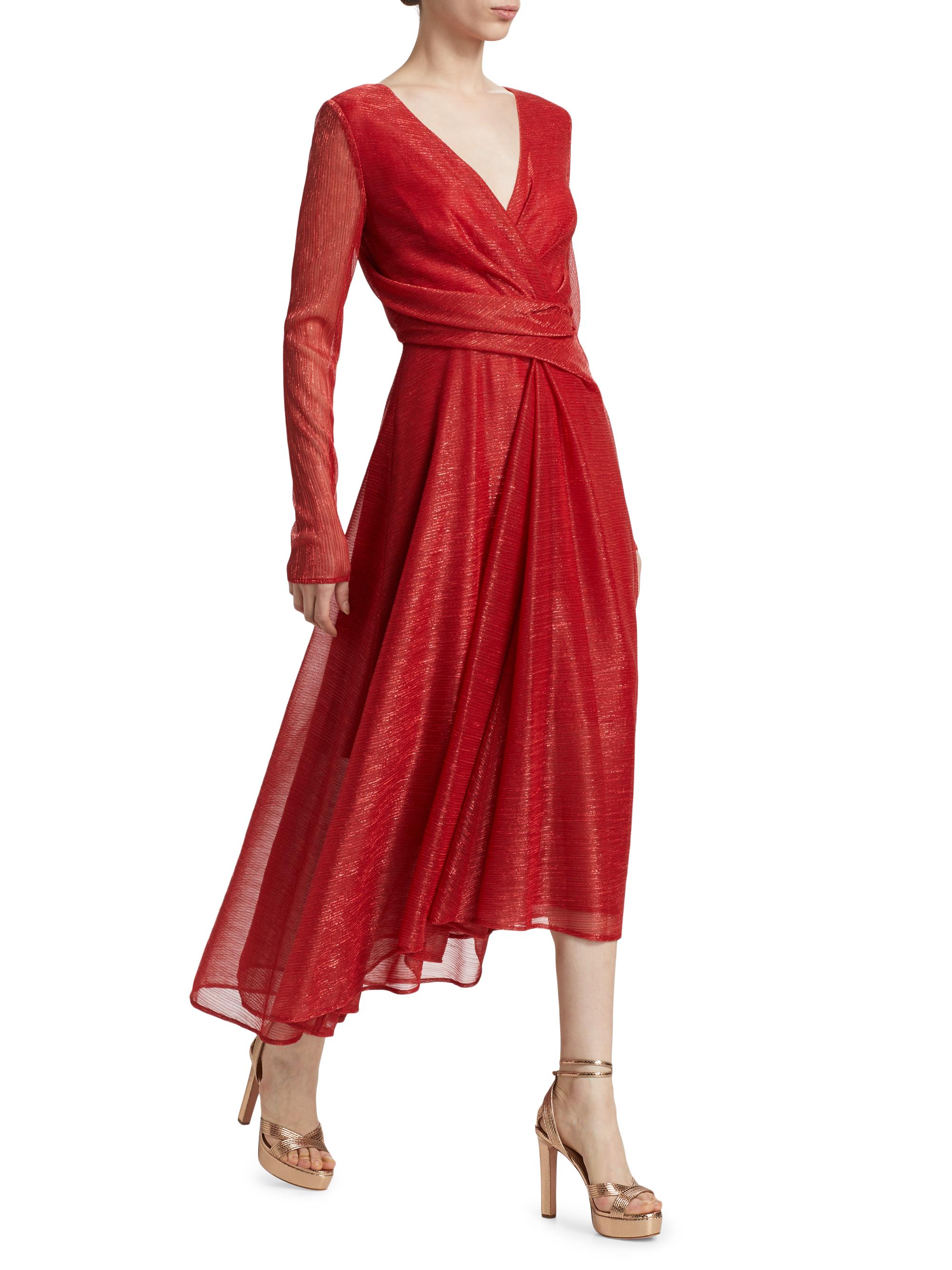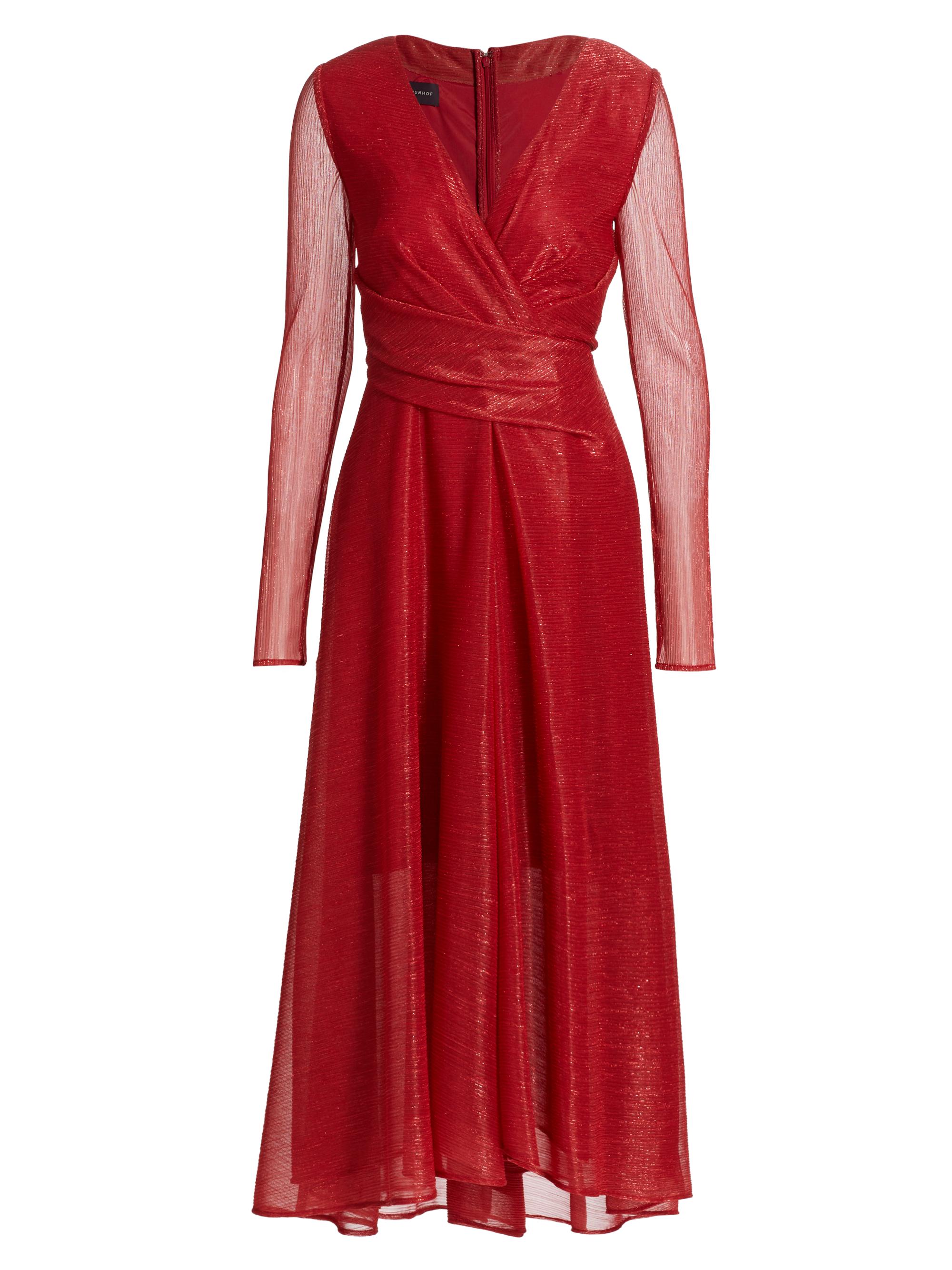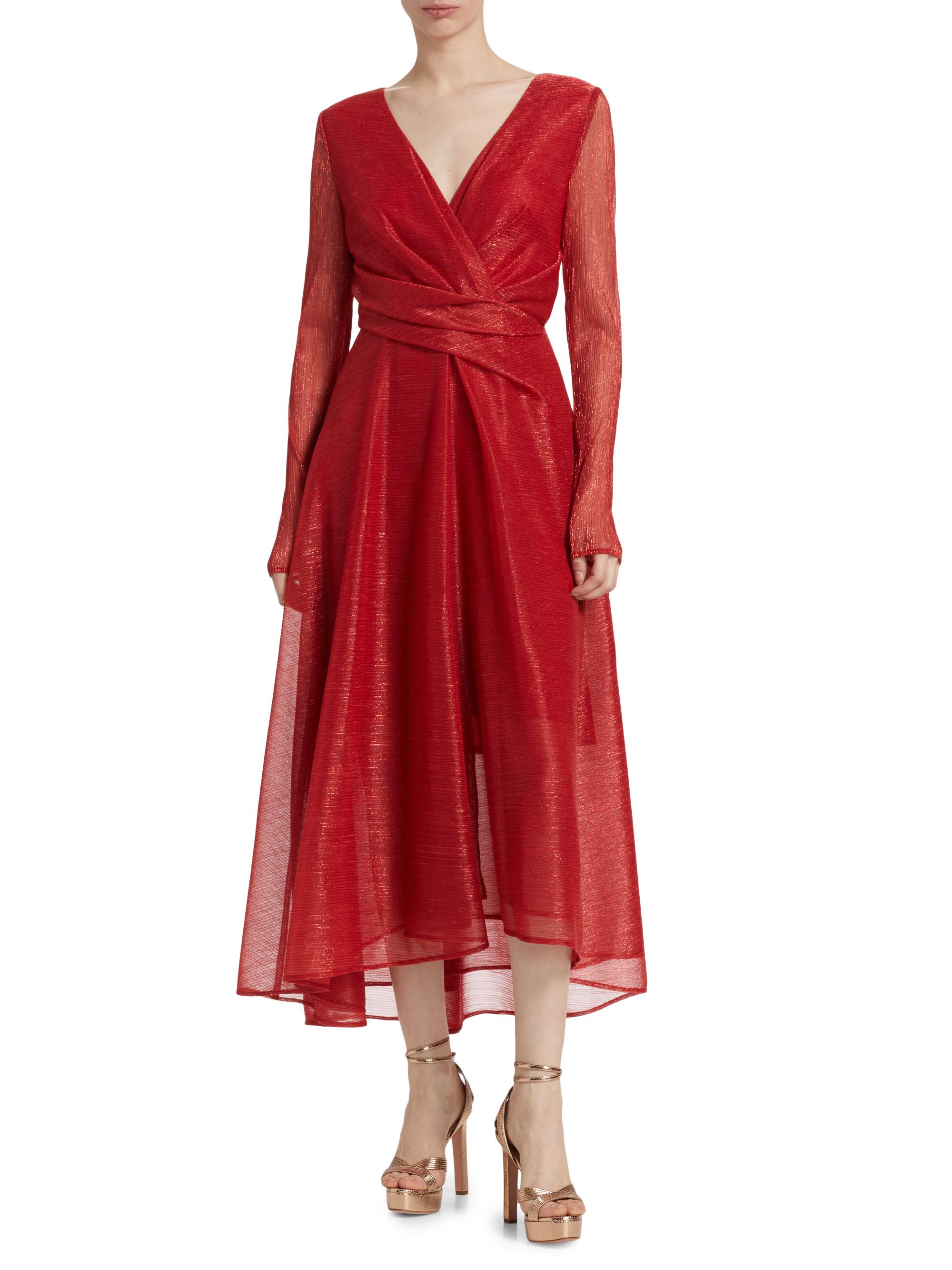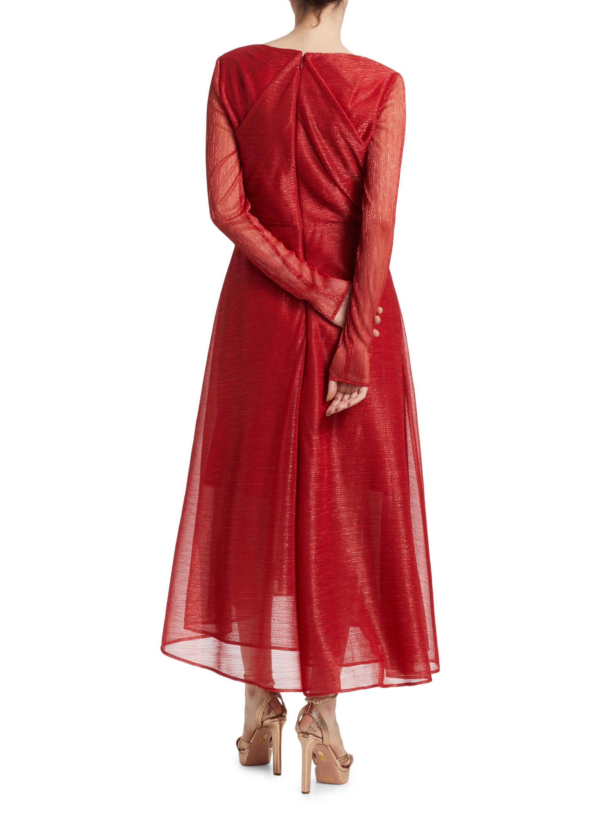 Talbot Runhof Metallic Voile Long-Sleeve Midi-Dress