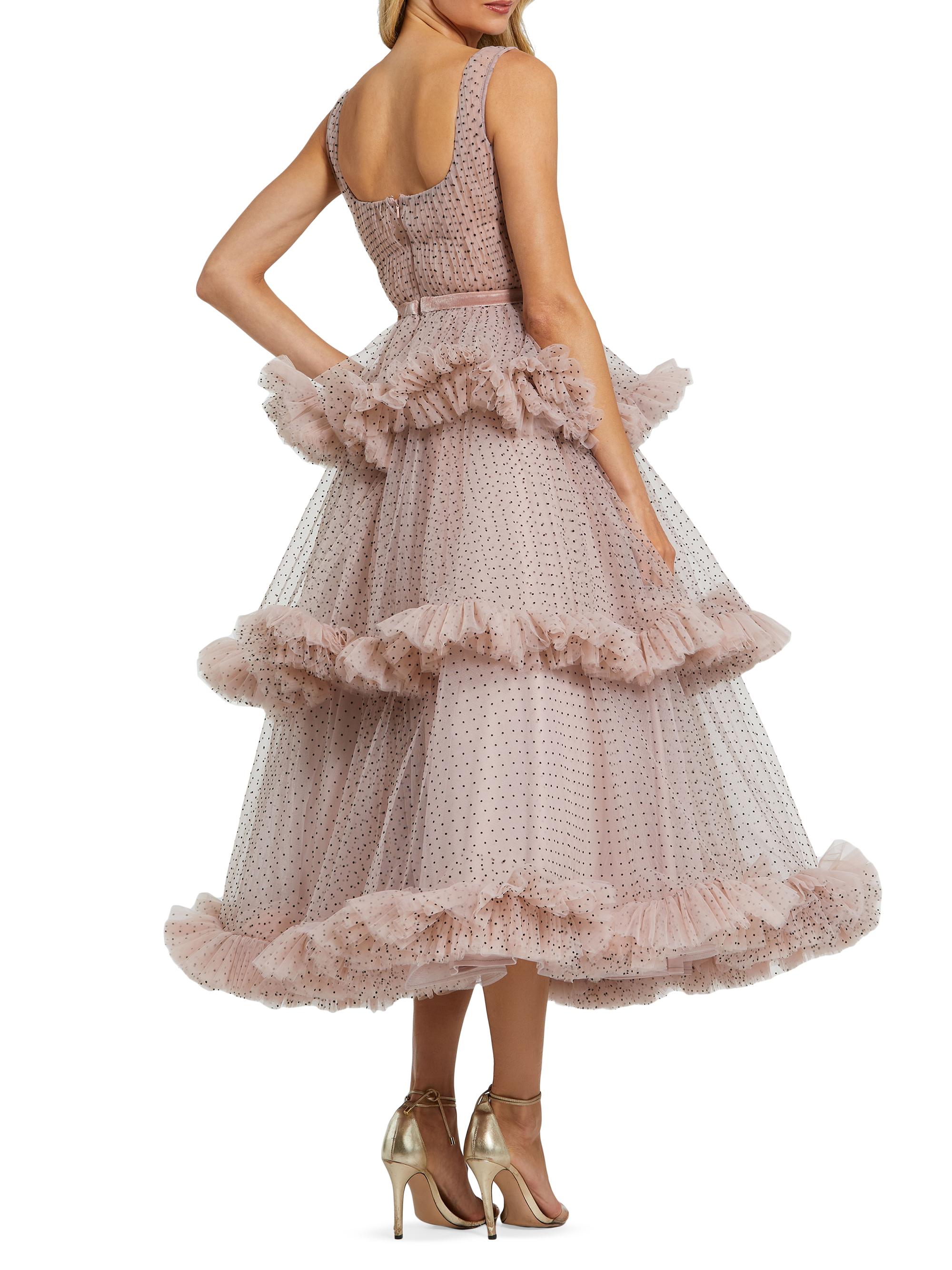 Mac Duggal Polka Dot Ruffle Tulle Cocktail Dress