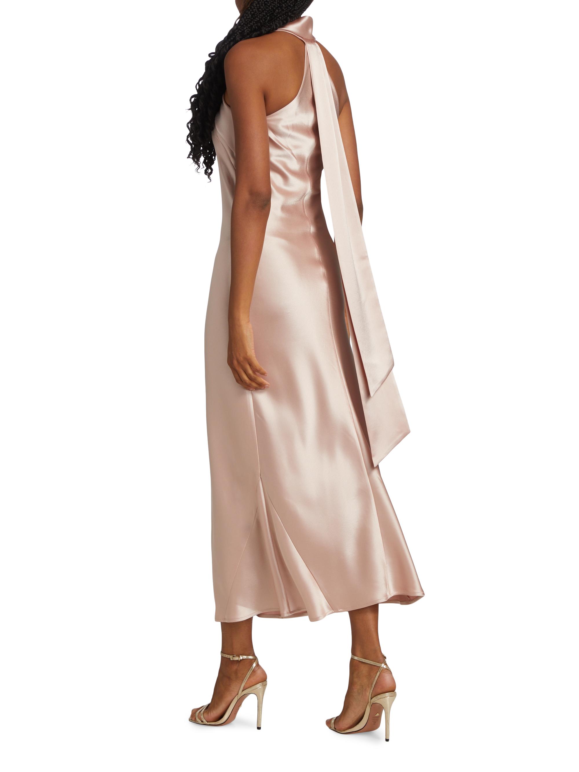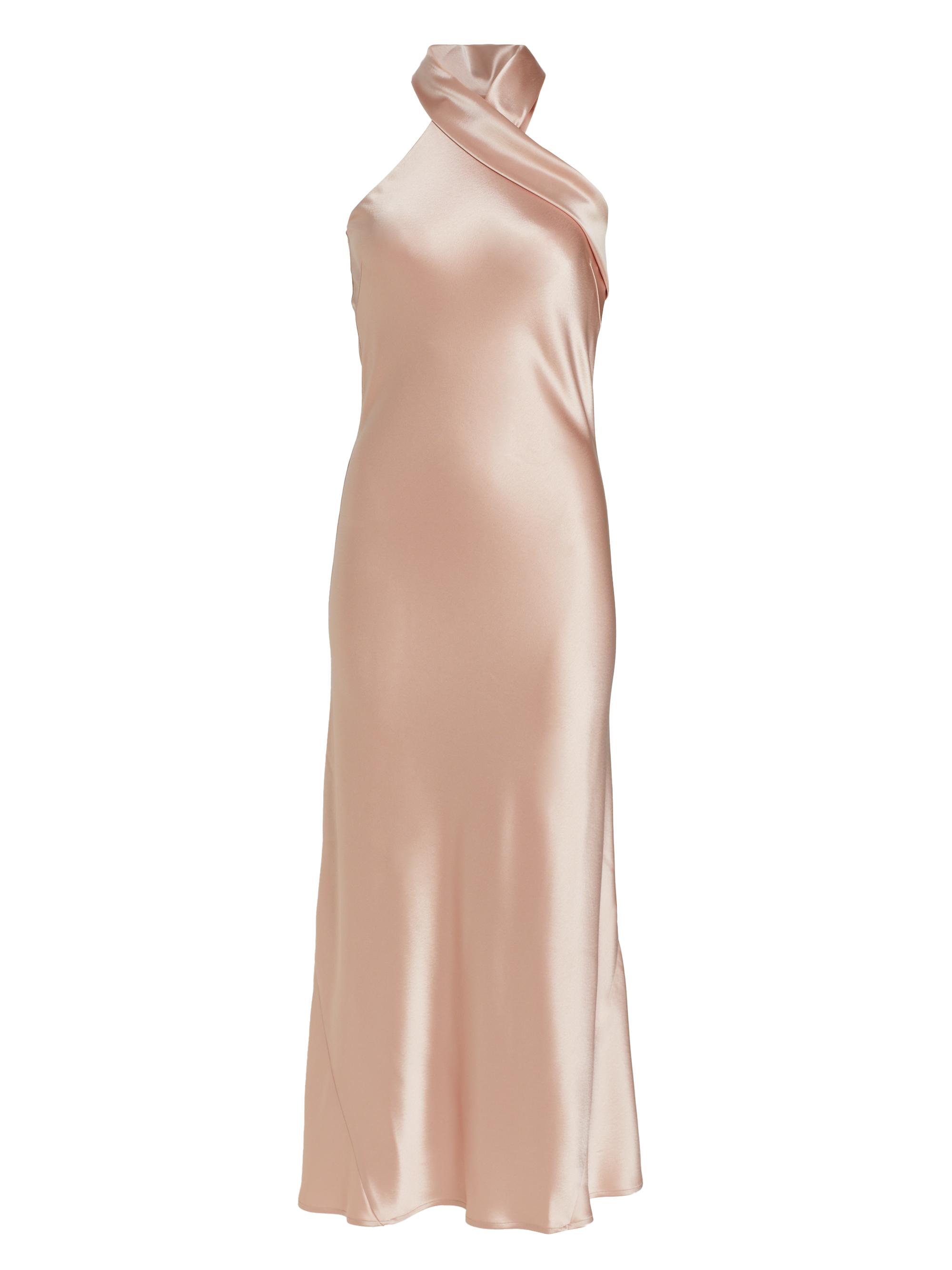 Galvan Pandora Satin Halterneck Midi-Dress ROSE NUDE