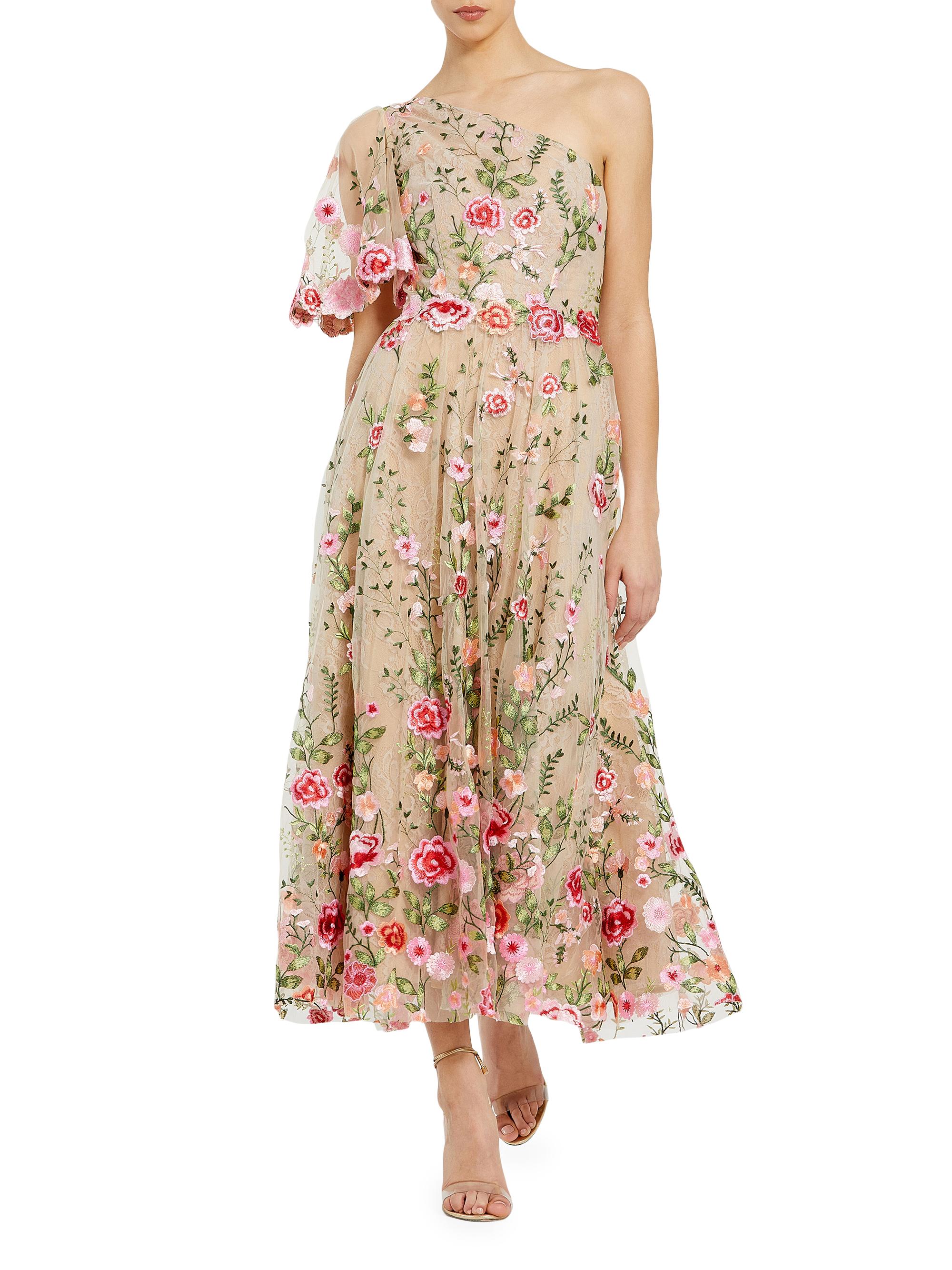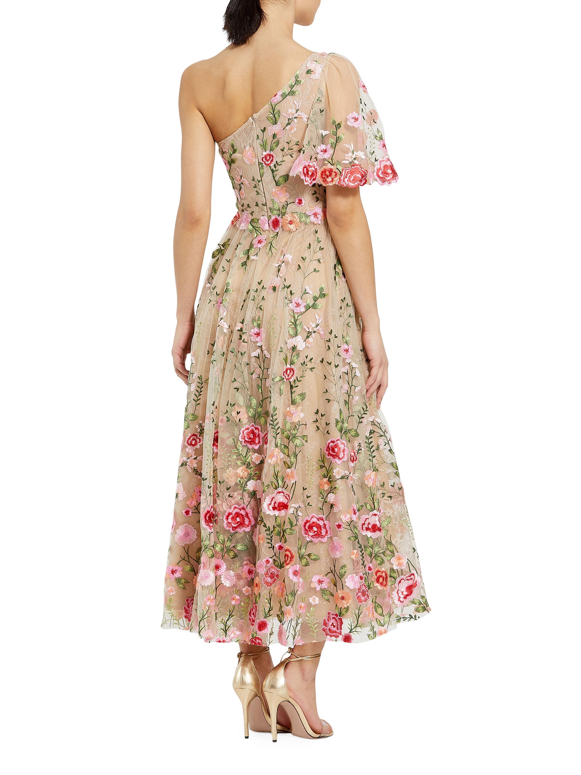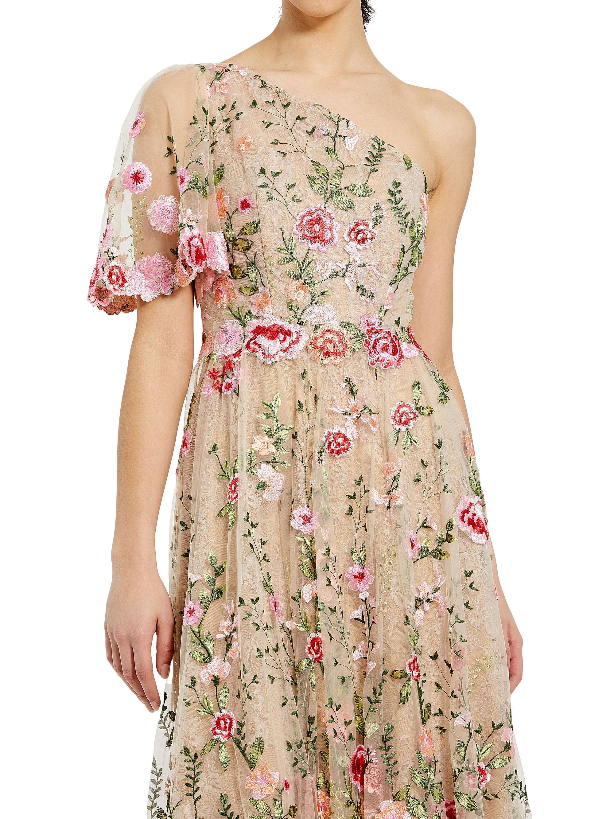 Mac Duggal Floral Embroidered One-Shoulder Midi-Dress PINK MULTI