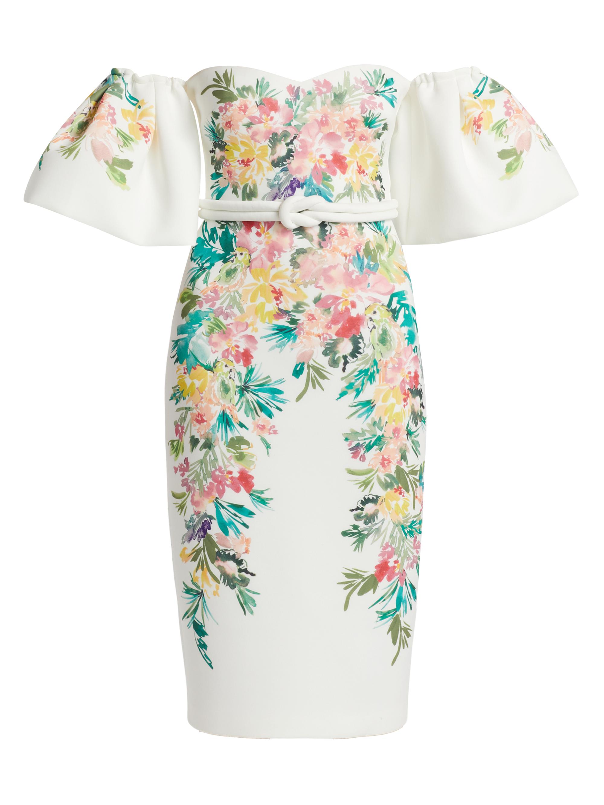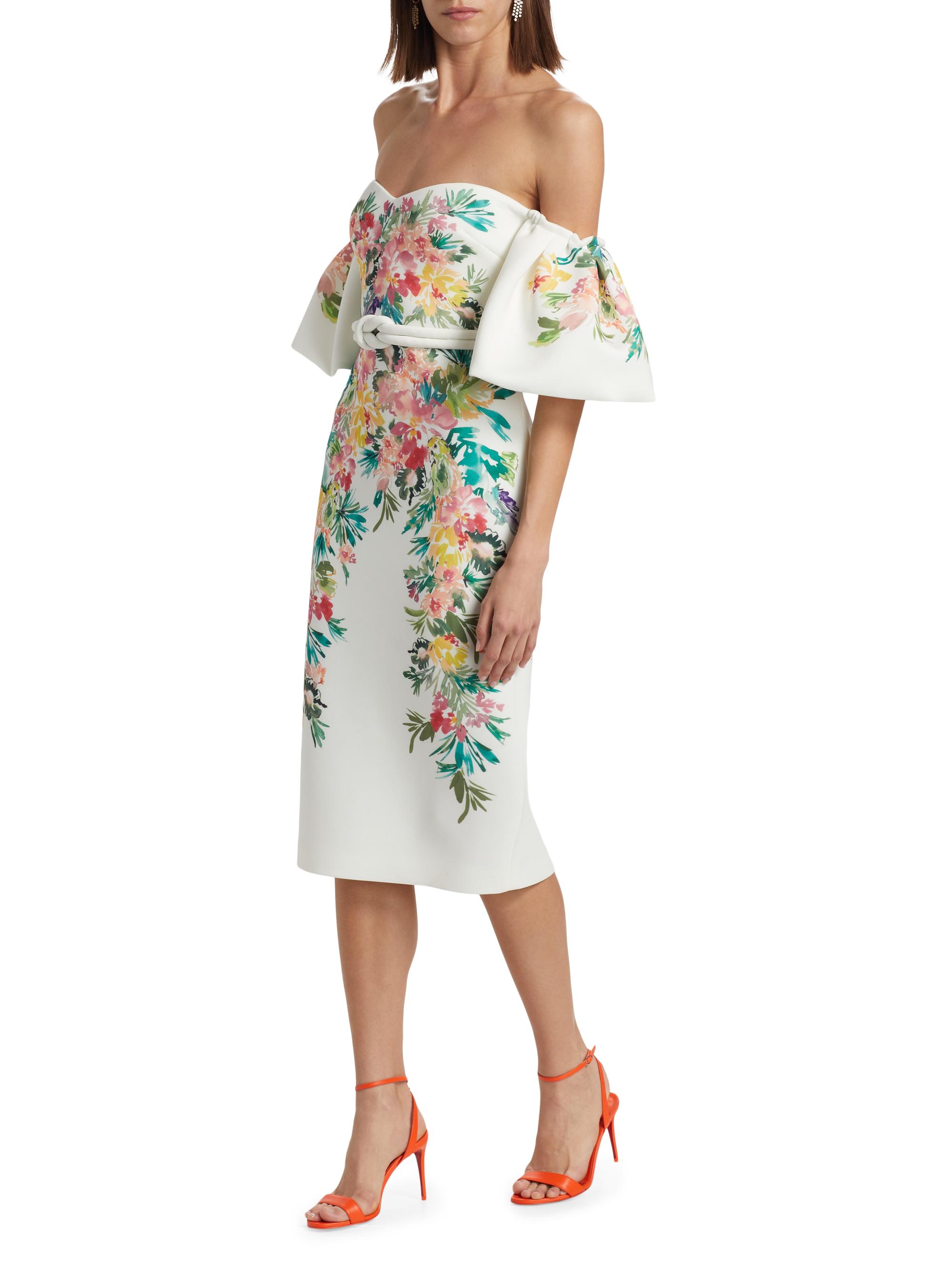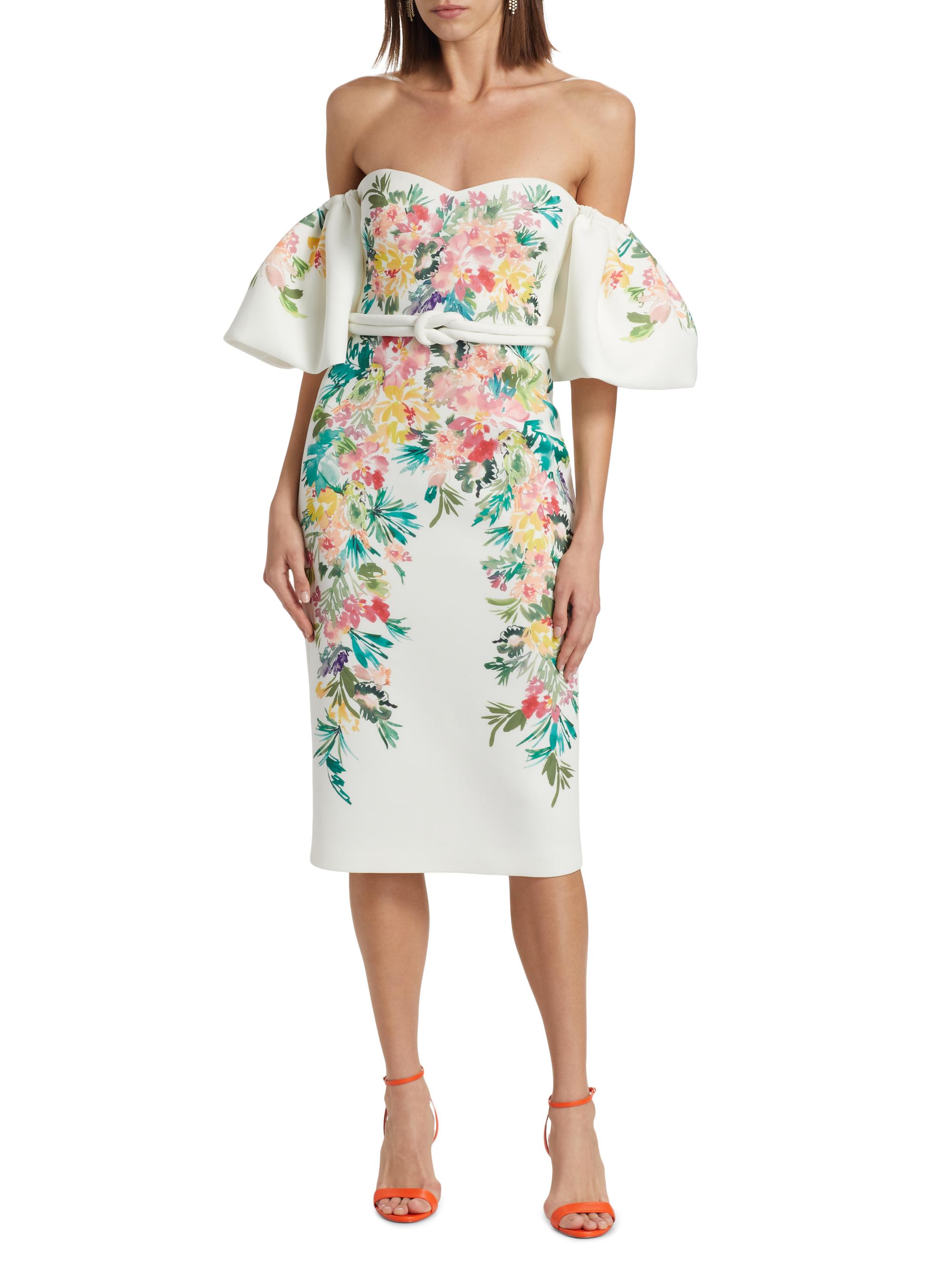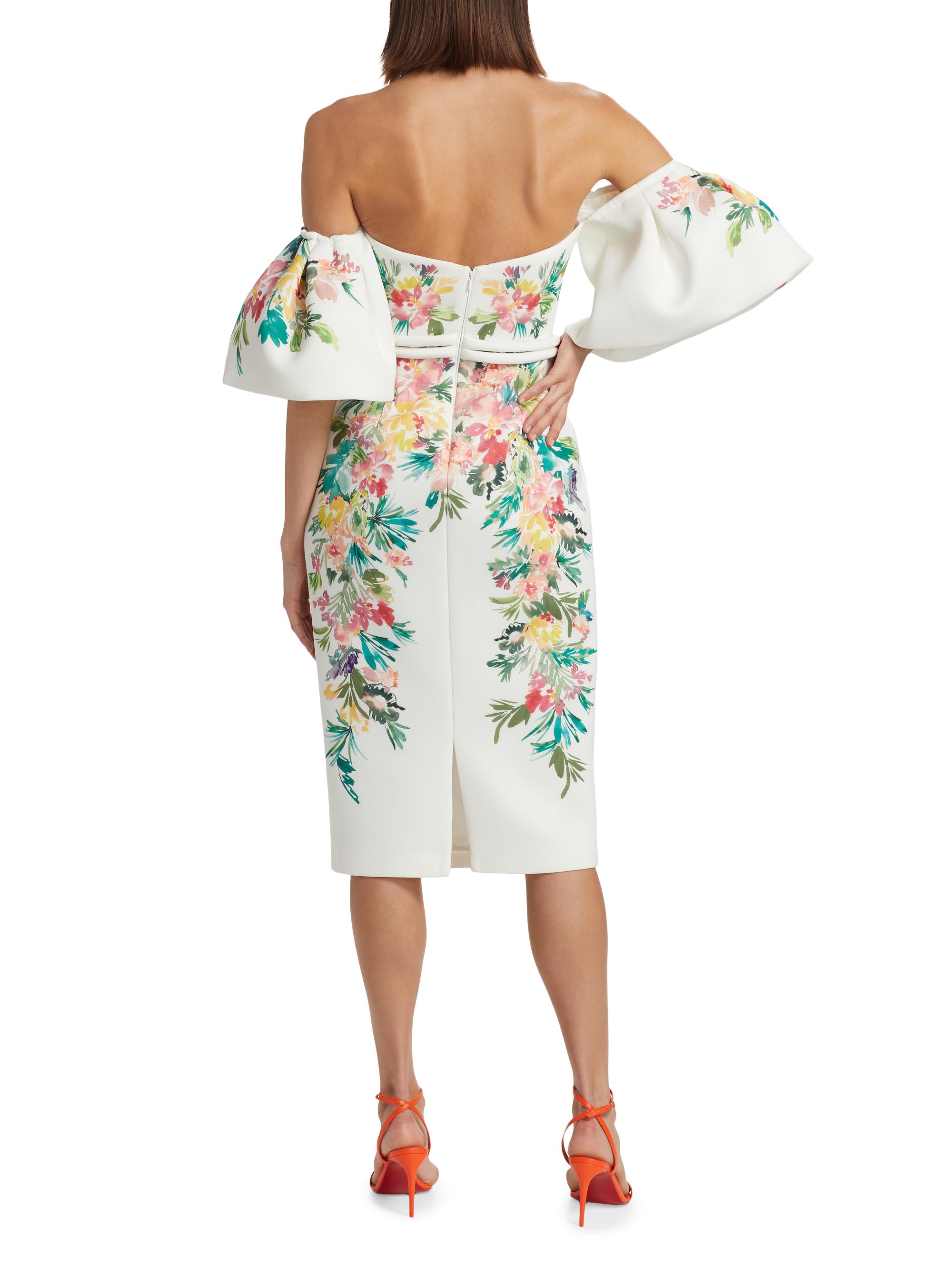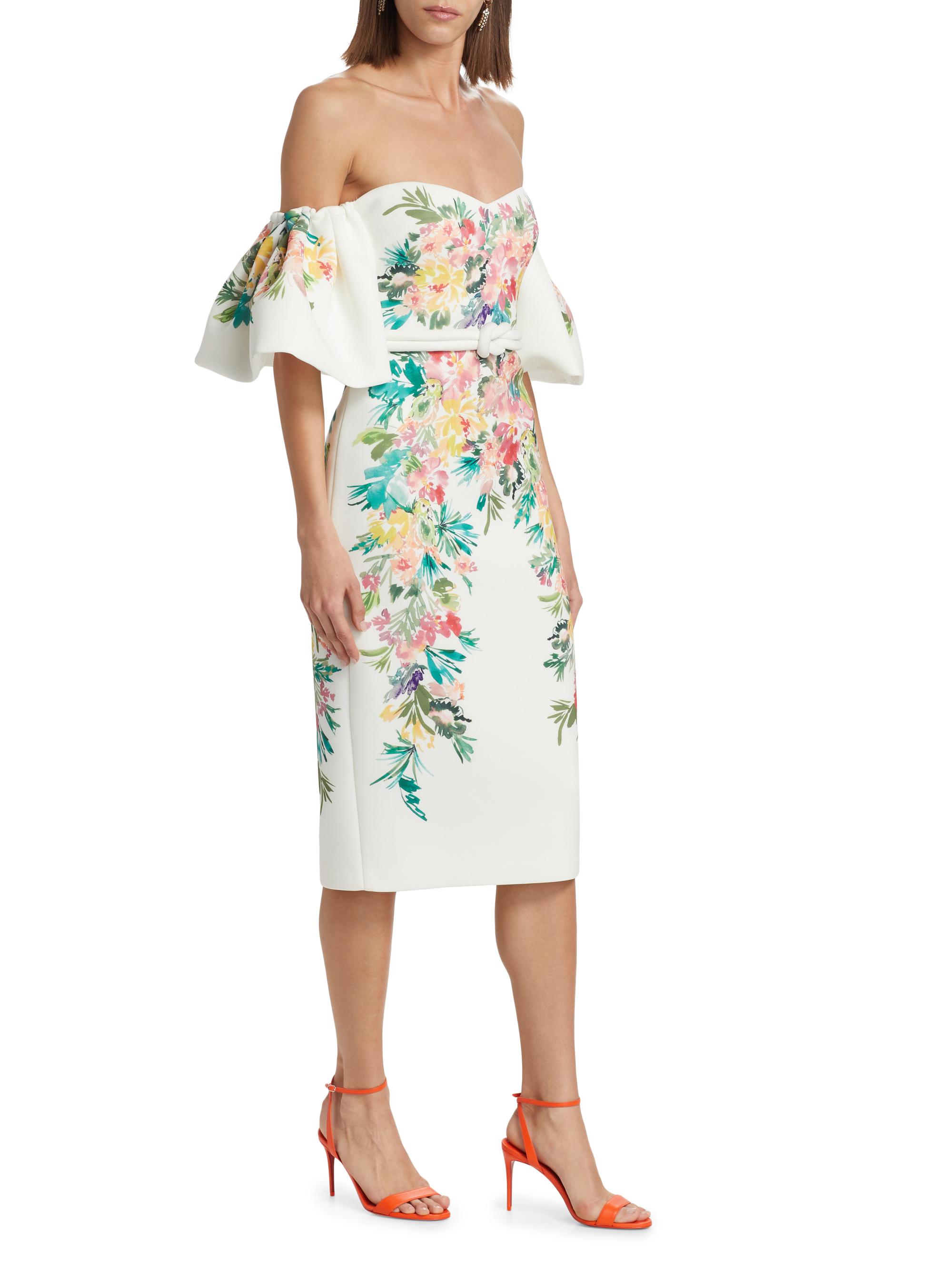 Badgley Mischka Floral Scuba Off-The-Shoulder Cocktail Dress