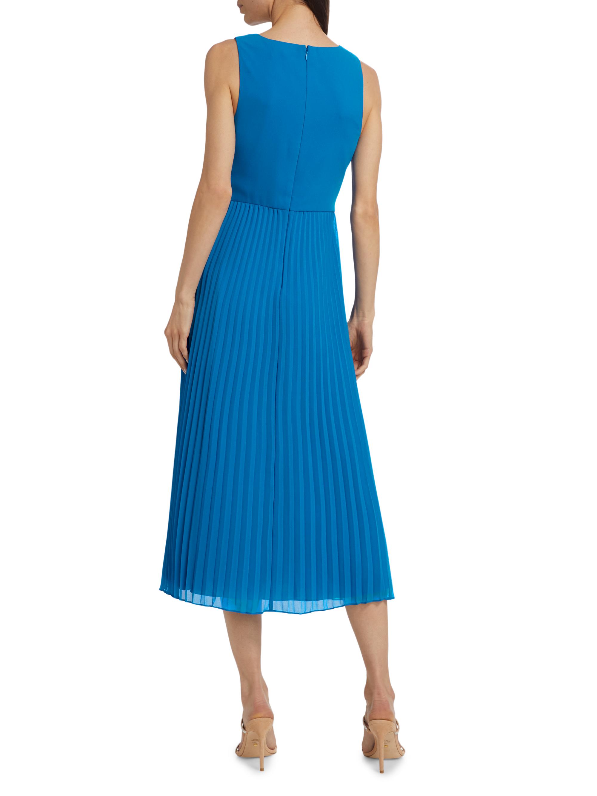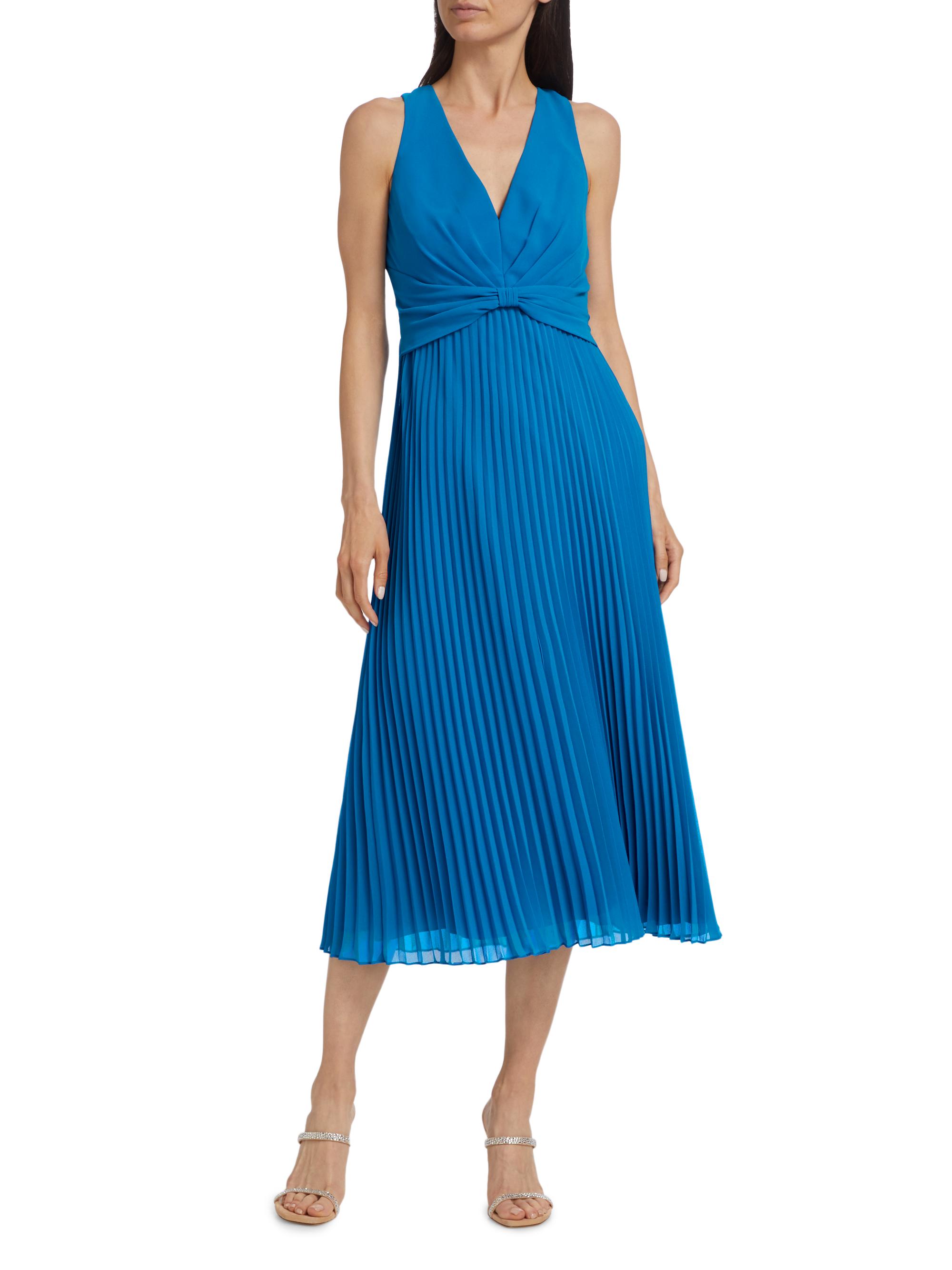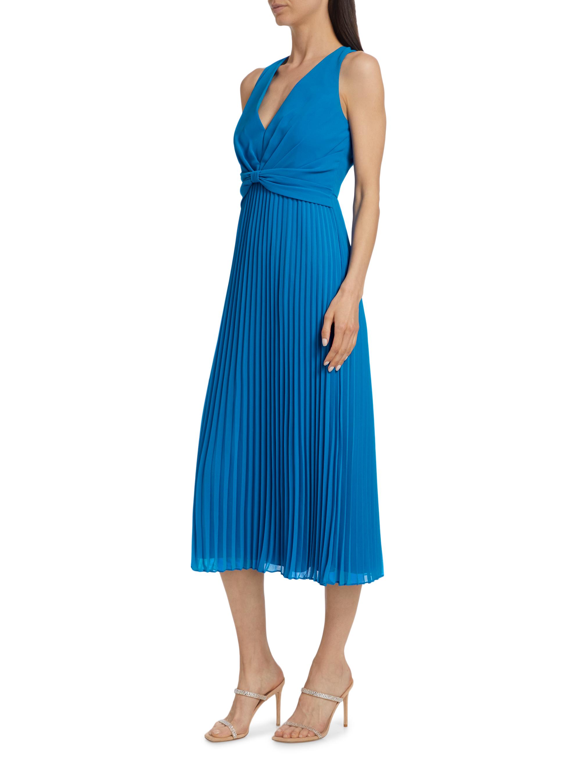 Badgley Mischka Sunburst Pleated Bow-Waist Midi-Dress