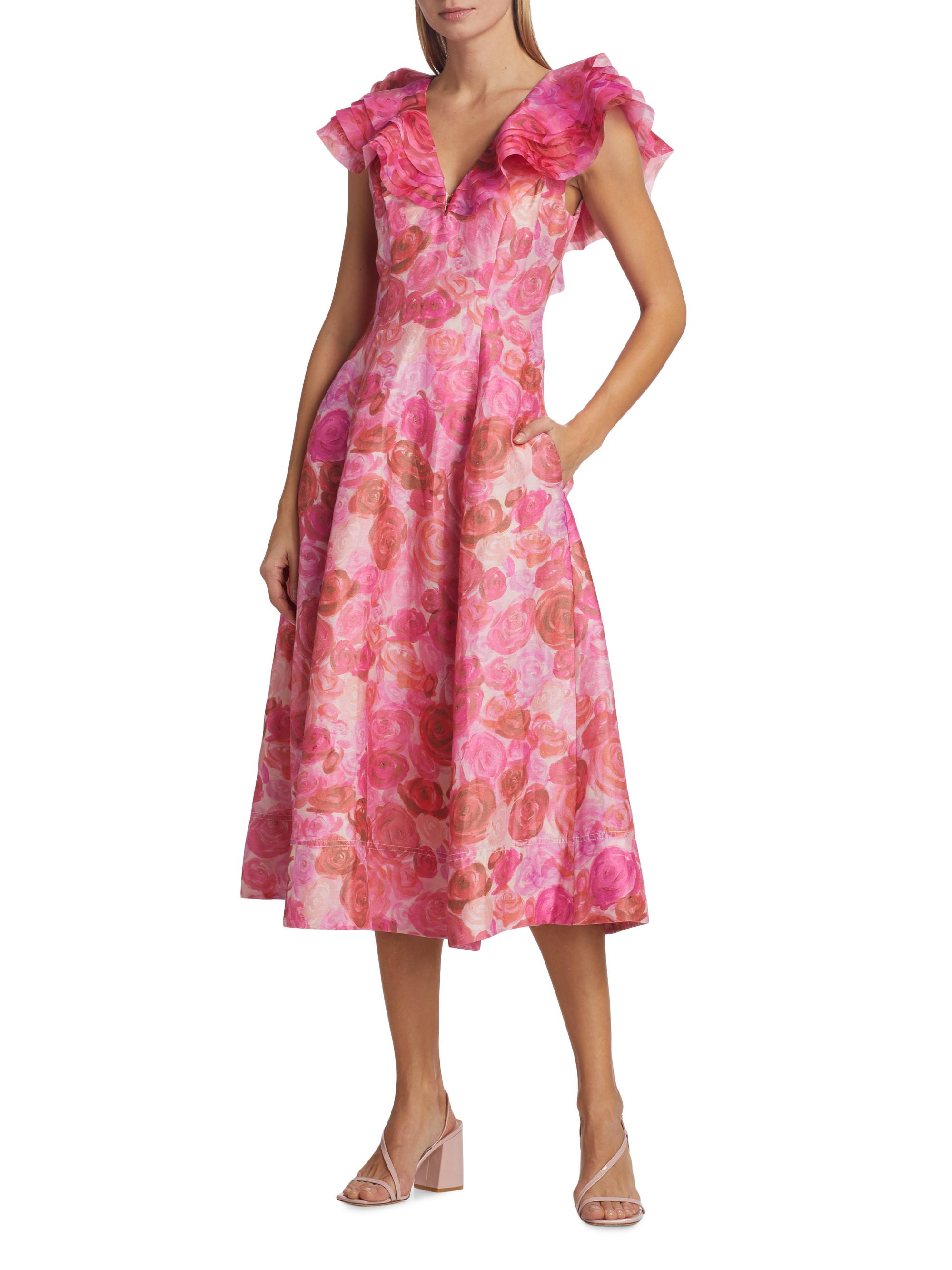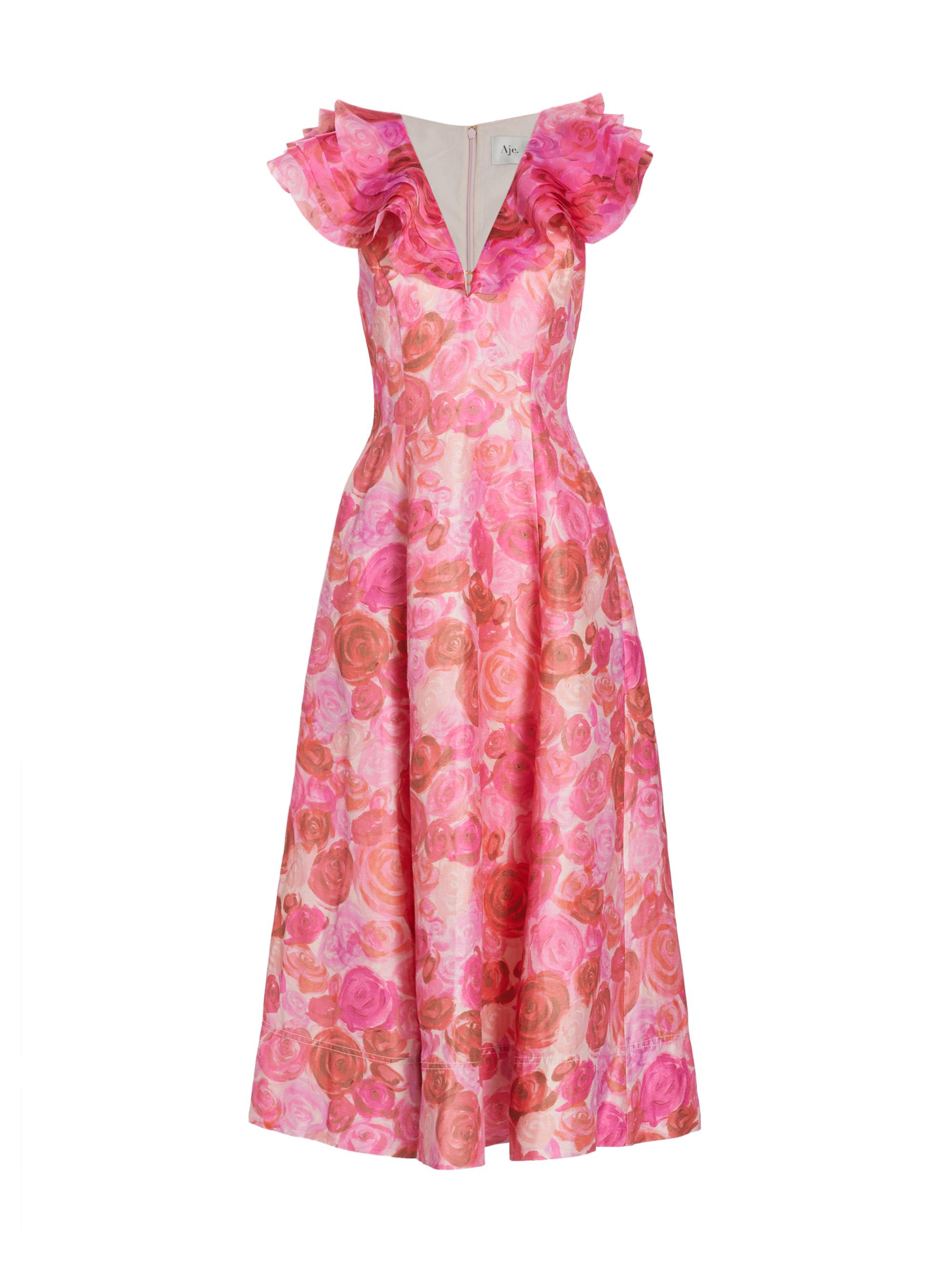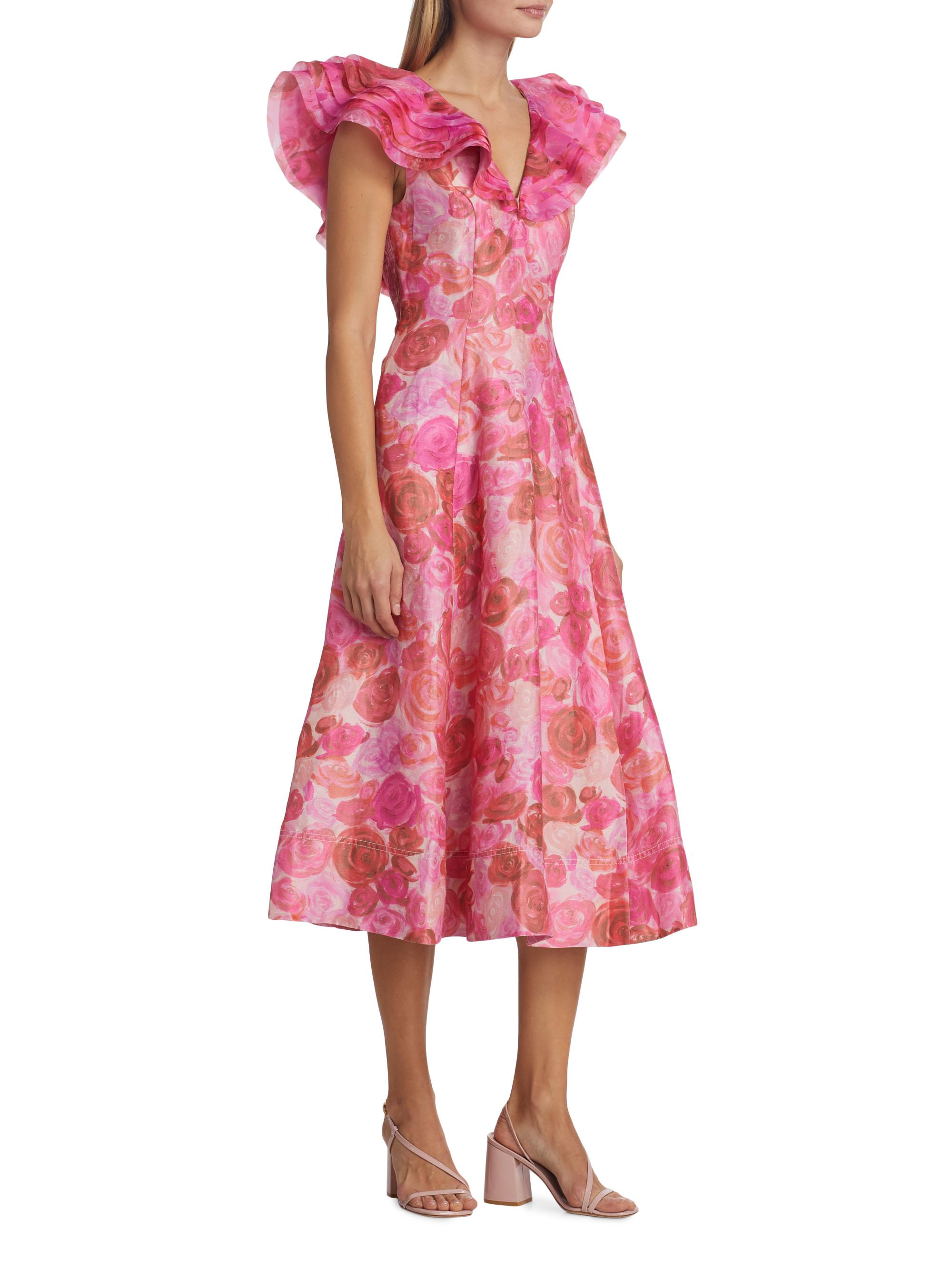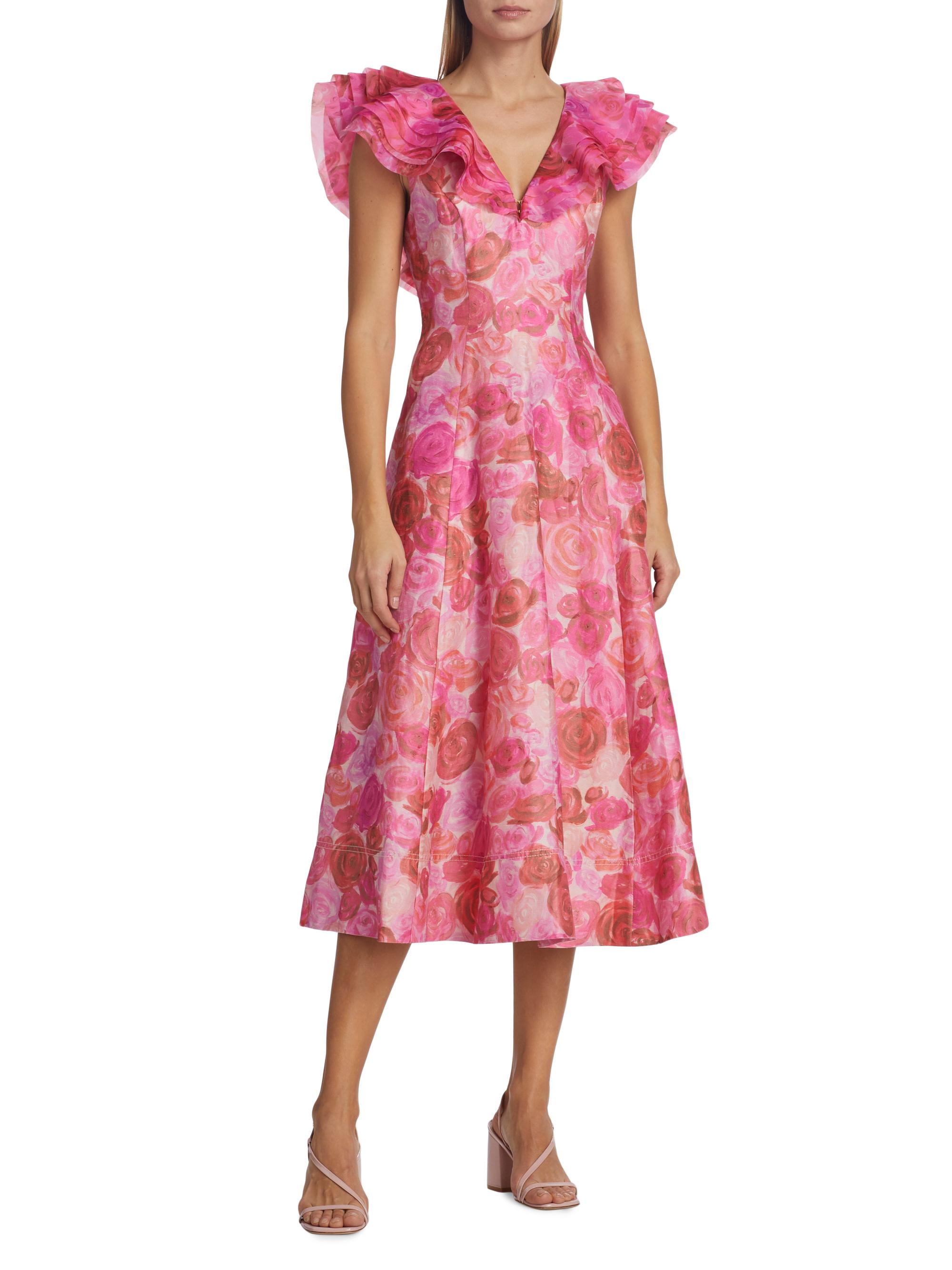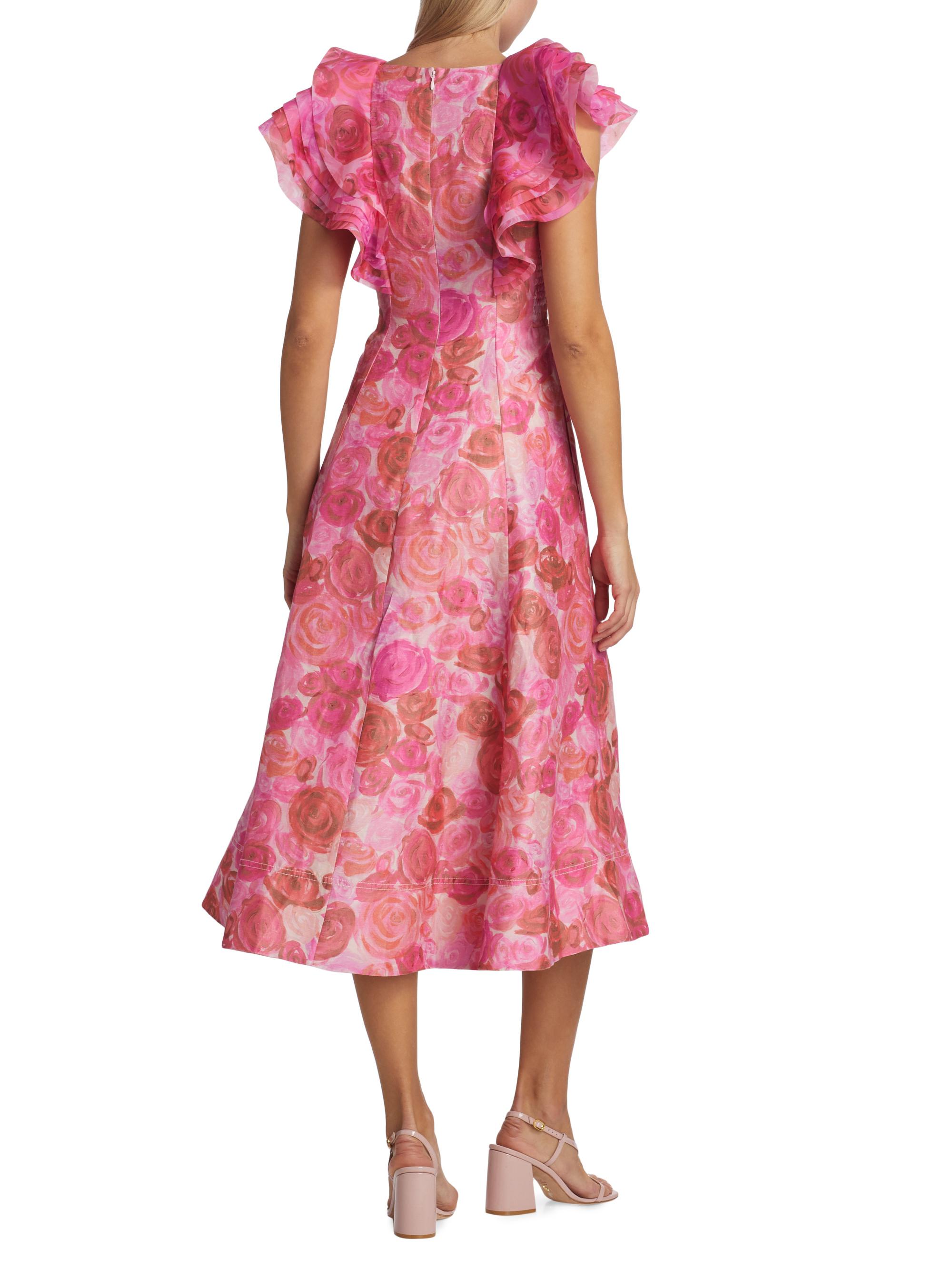 Aje Enchanted Floral Linen-Blend Midi-Dress