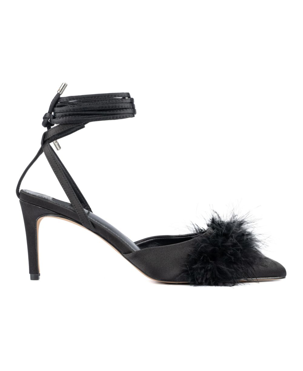 New York & Company Womens Saylor Faux Feather Heel Sandal