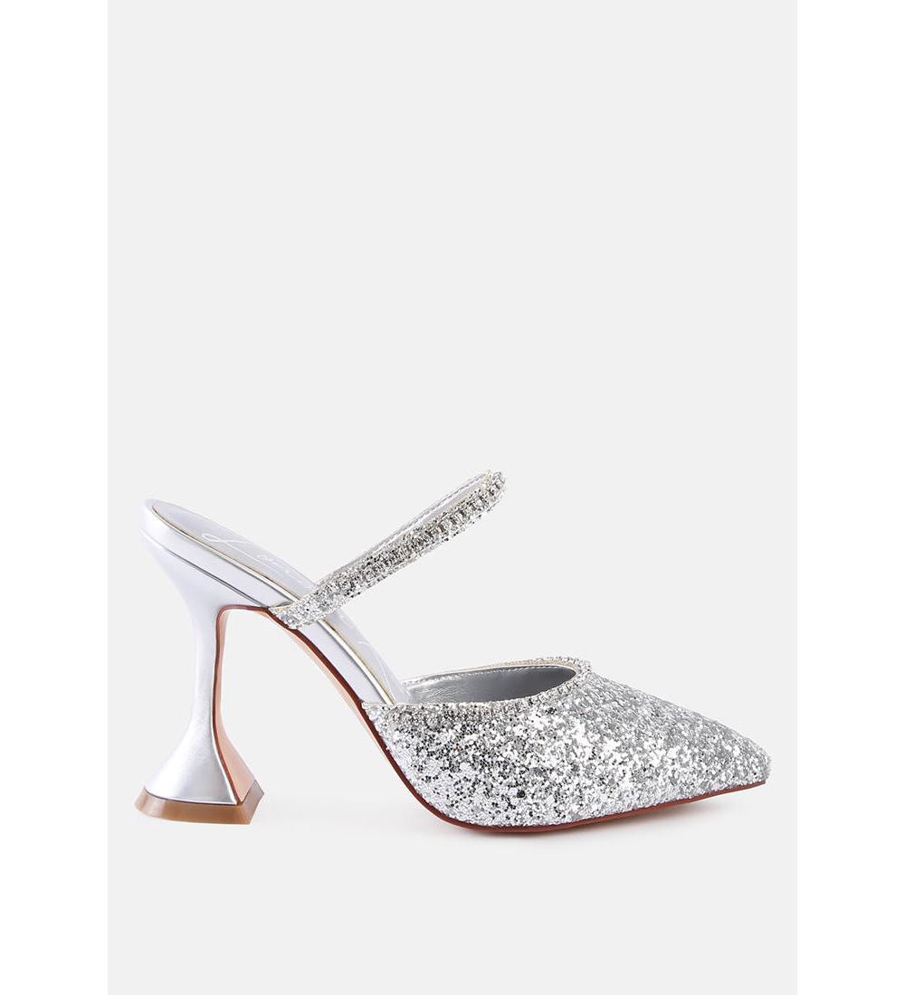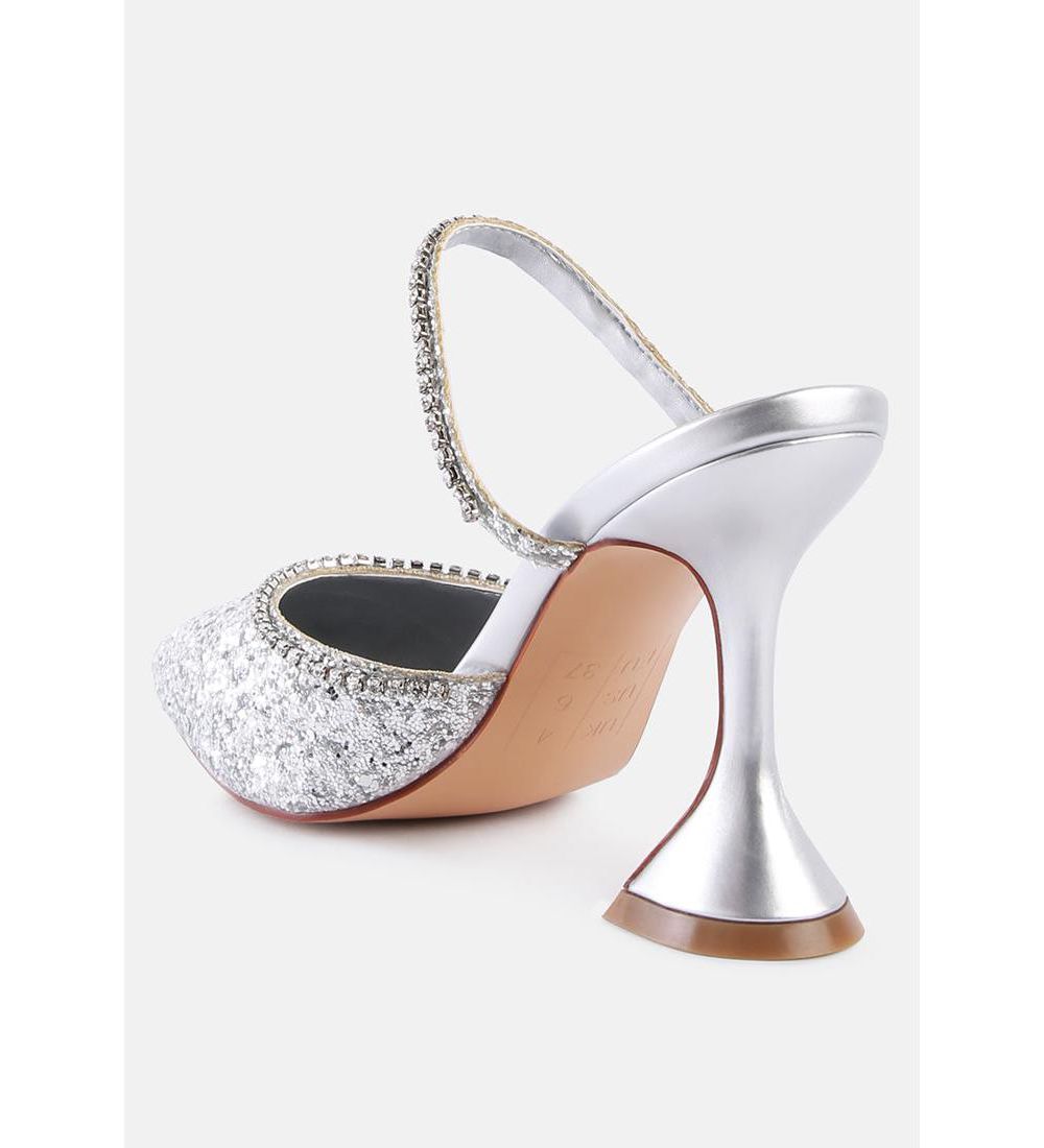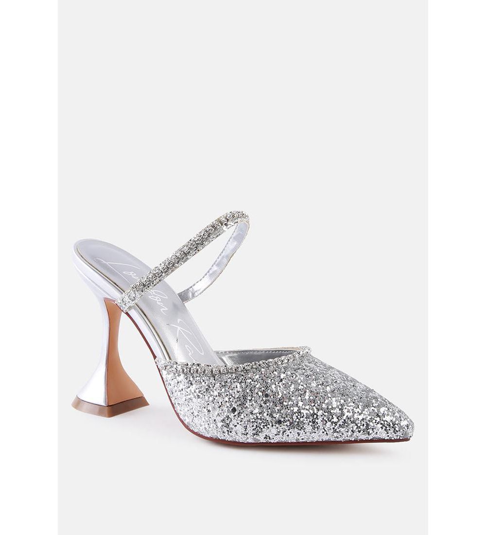 London Rag Iris Glitter Diamante Embellished Spool Heel Sandals