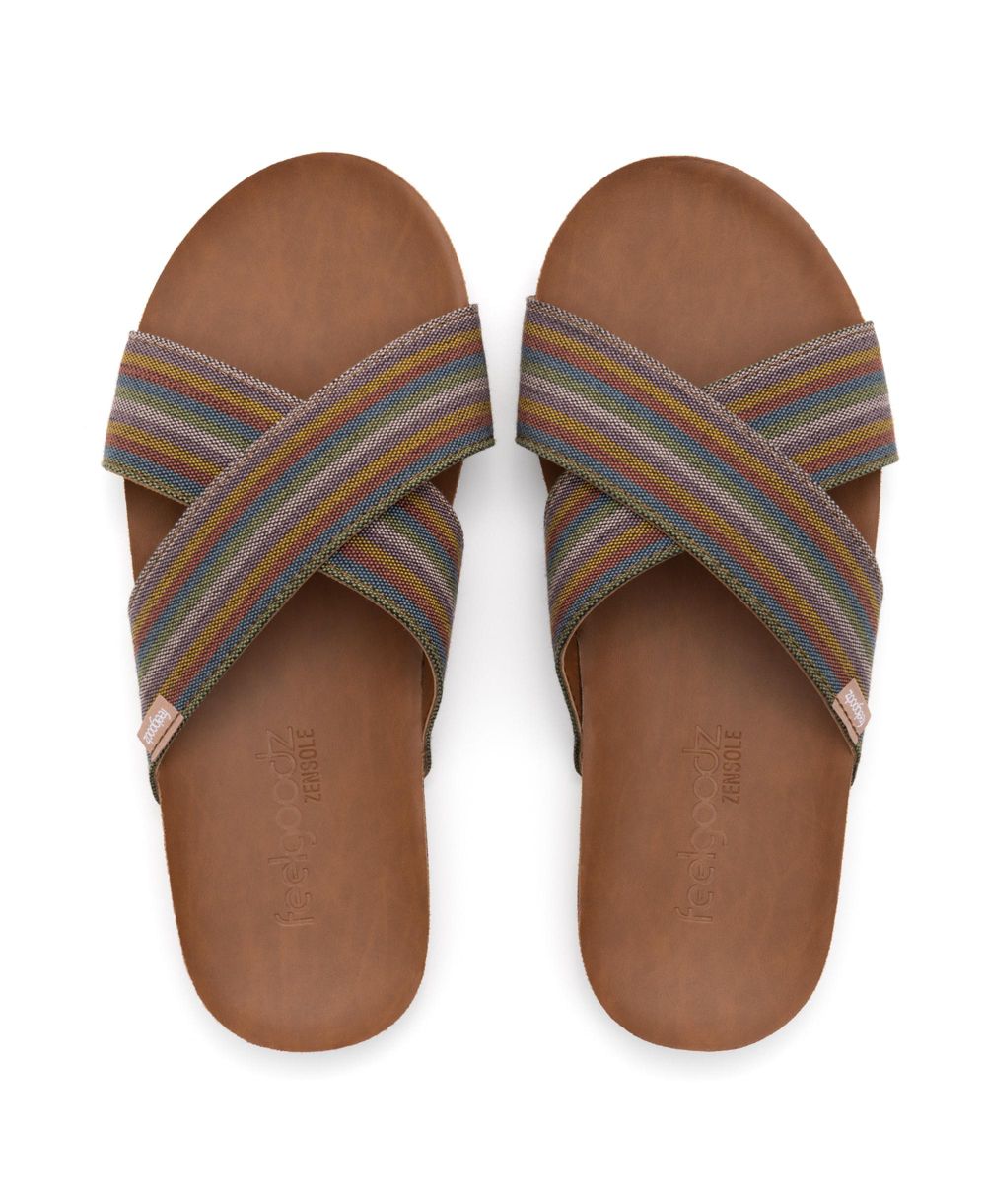 Feelgoodz Womens Zensole Cascades Faux Leather Double Strap Slide Sandals