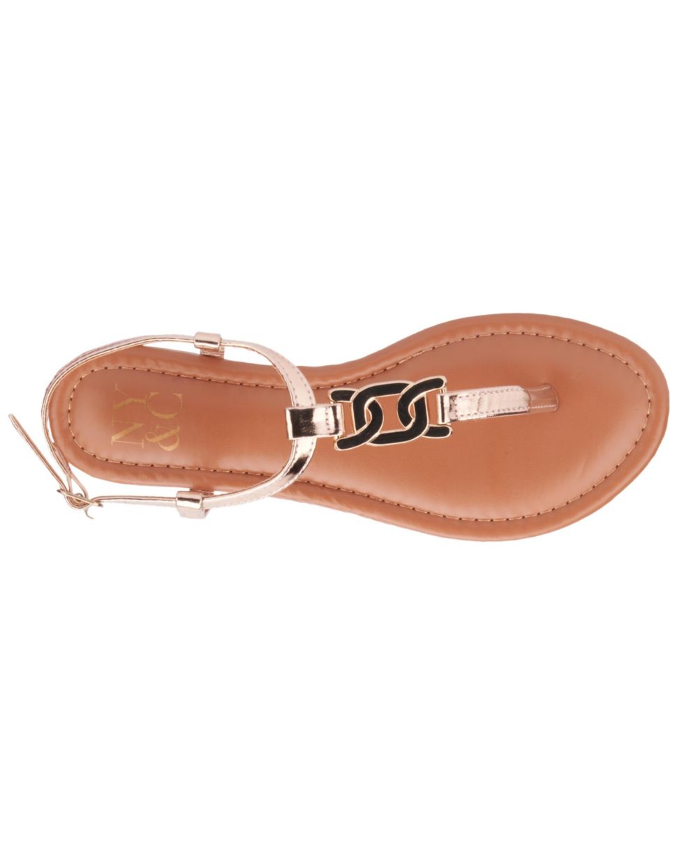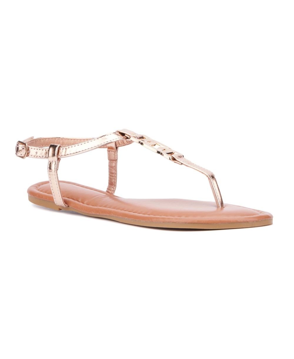 New York & Company Womens Kaia T Strap Sandal With Metal Hardware