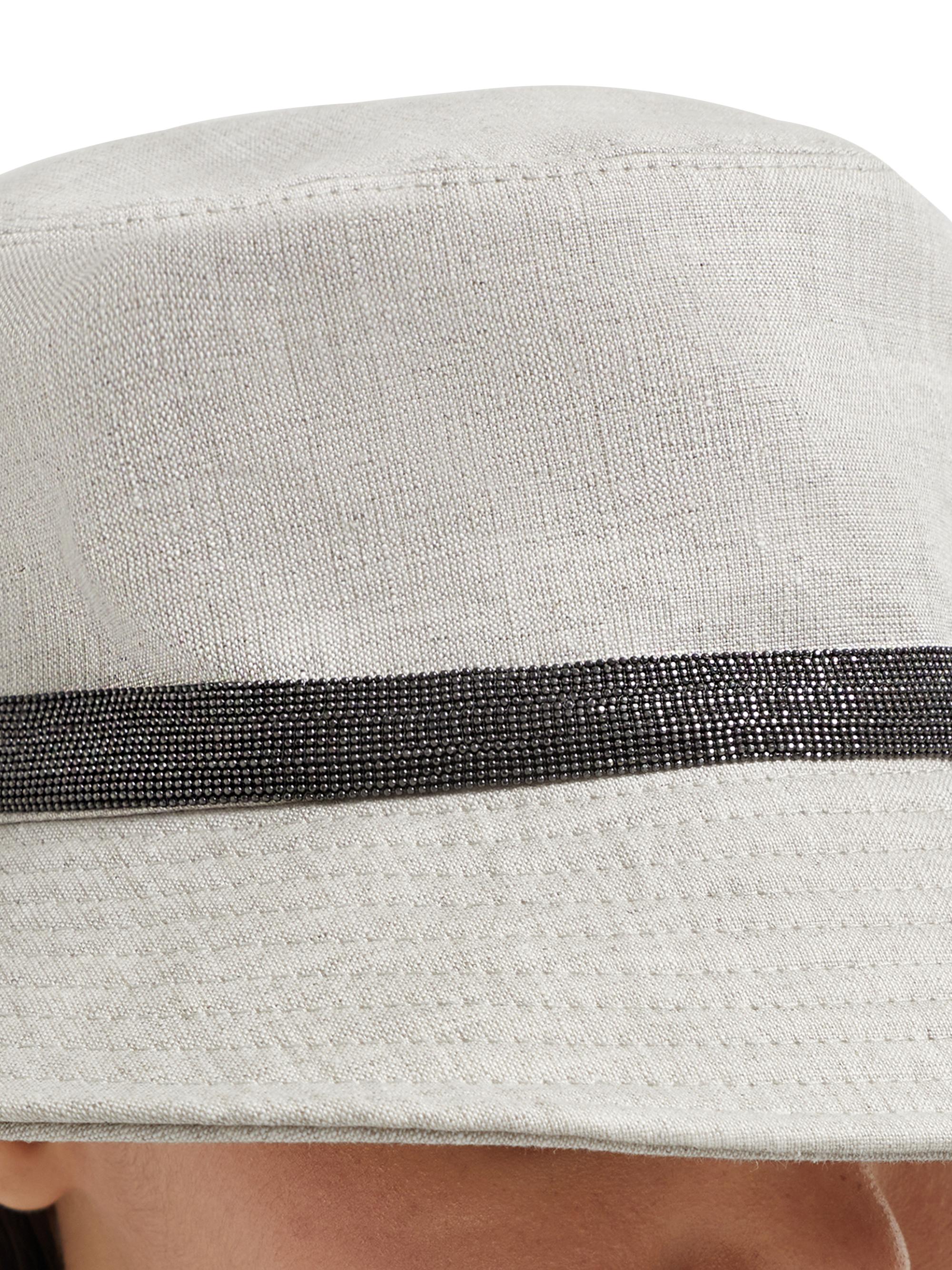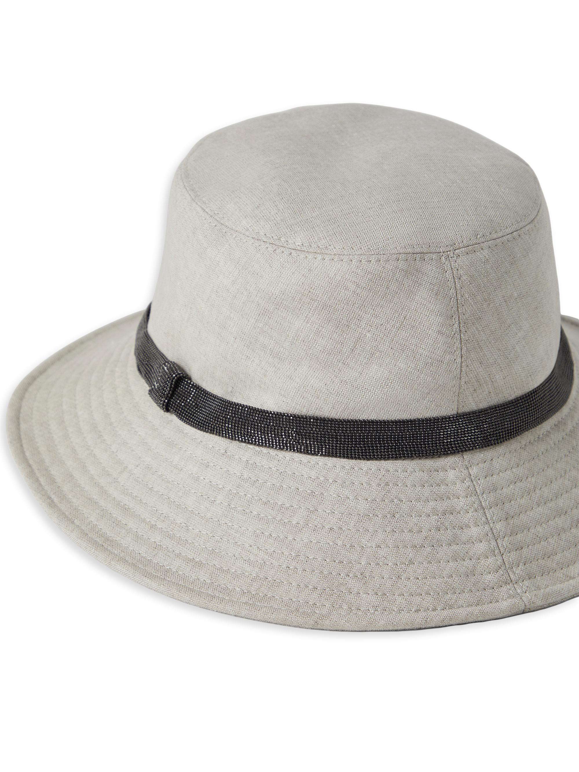 Brunello Cucinelli Delave Linen Bucket Hat with Shiny Band