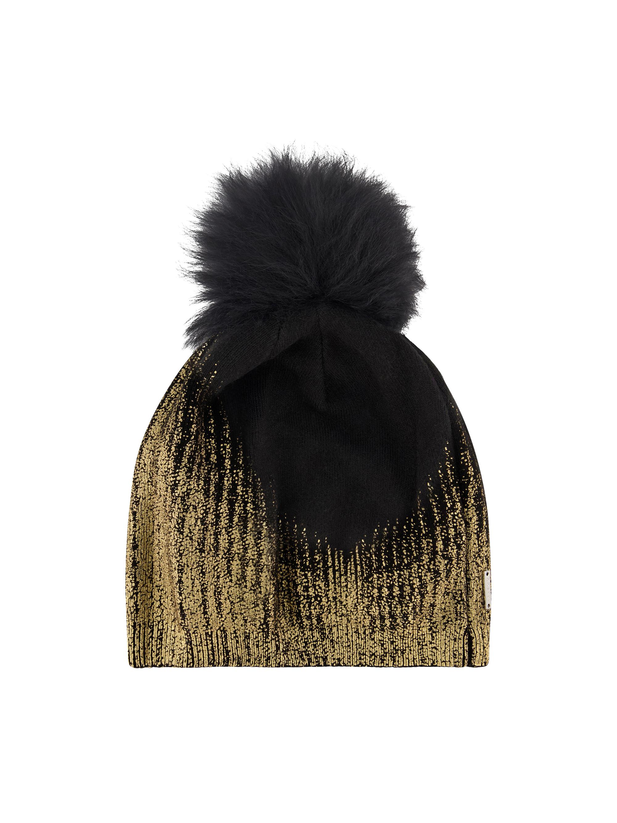 Gorski Metallic Knit Hat with Toscana Lamb Pompom BLACK