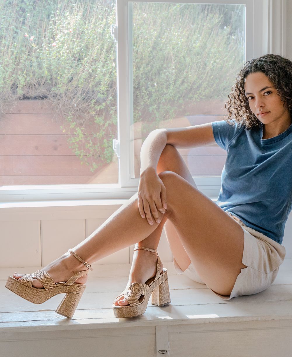 DV Dolce Vita Womens Waylan Raffia Platform Crossband Dress Sandals