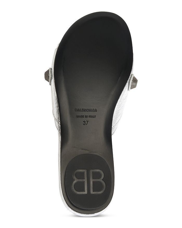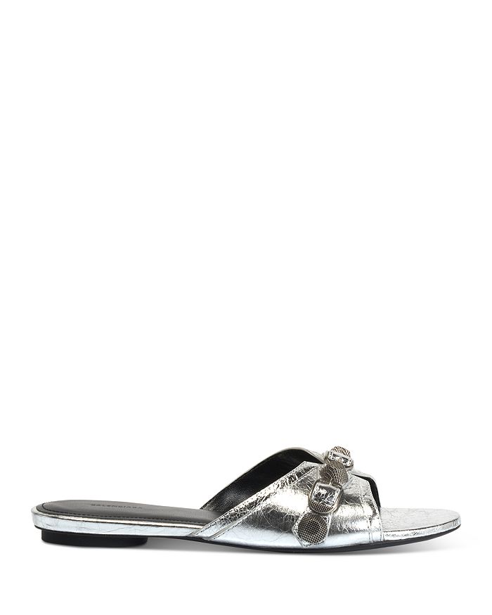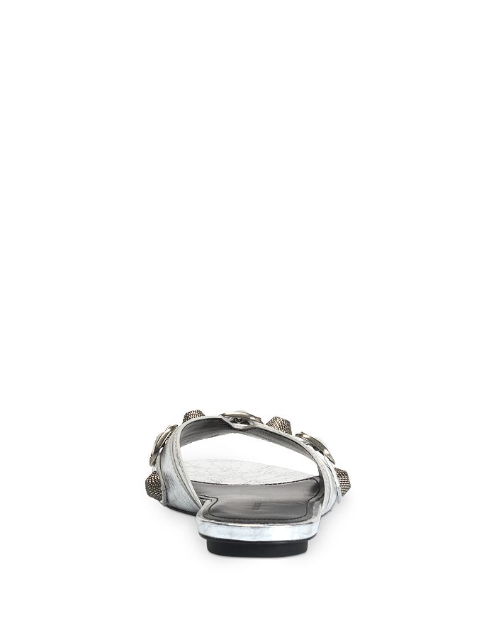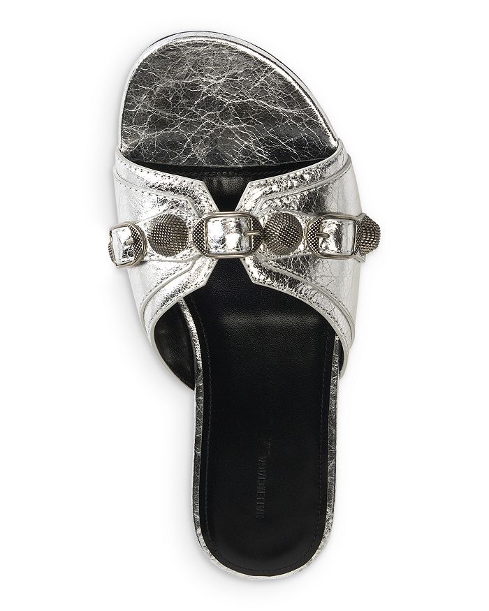 Balenciaga Womens Cagole Buckle Stud Flat Slide Sandals