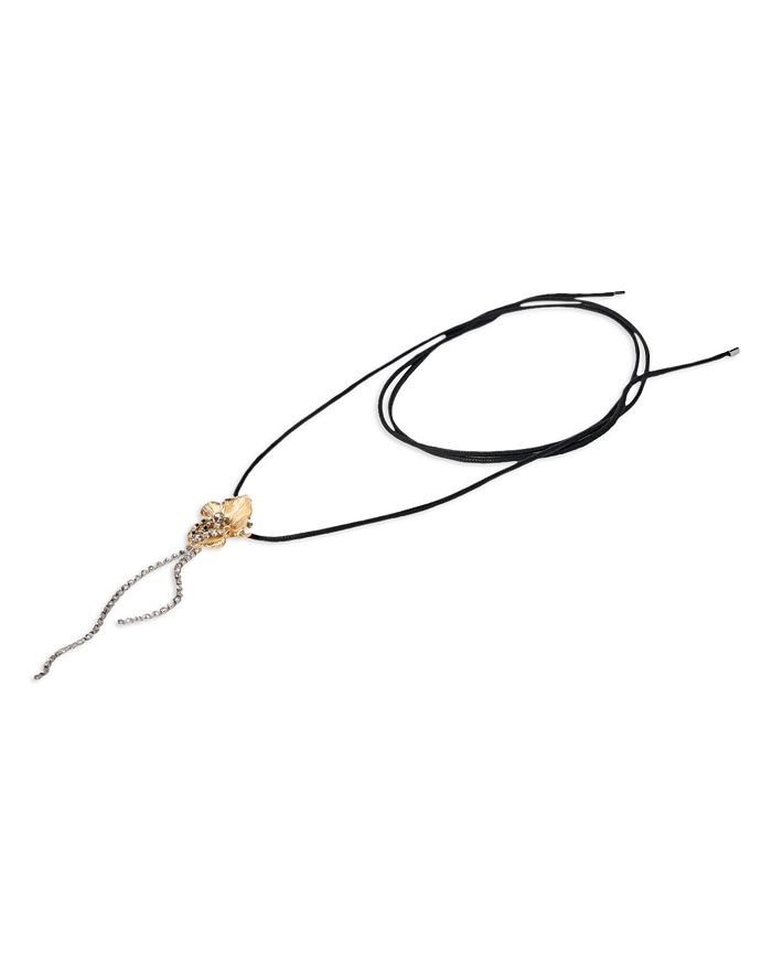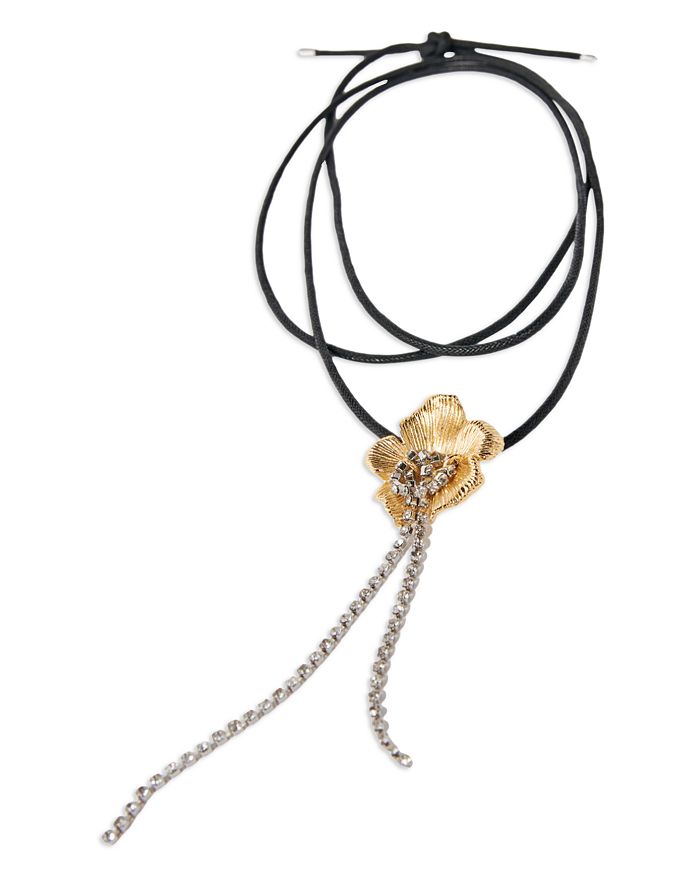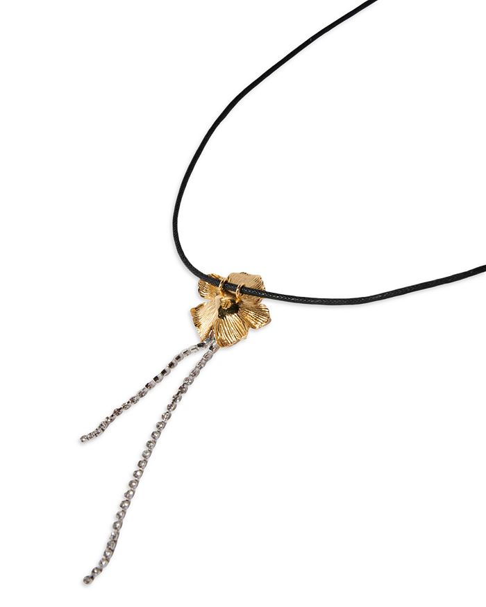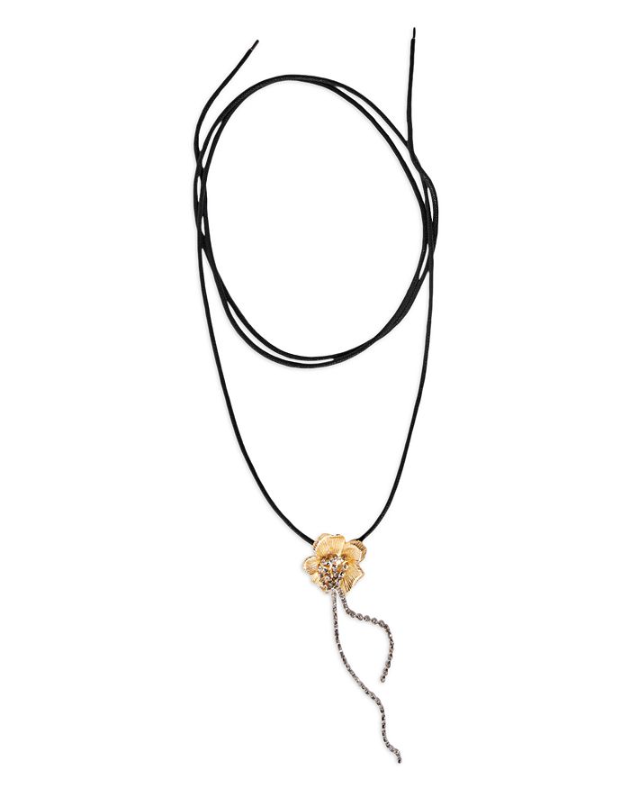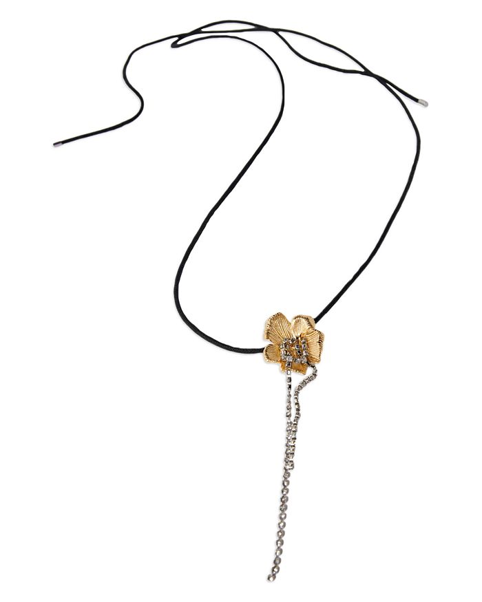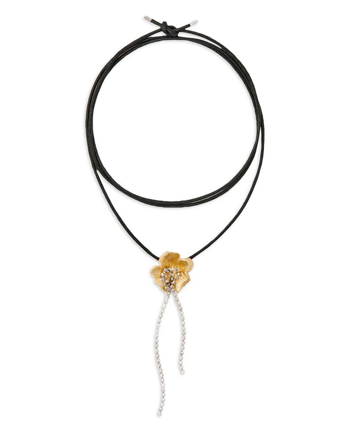Maje Crystal Flower Black Cord Pendant Necklace, 44