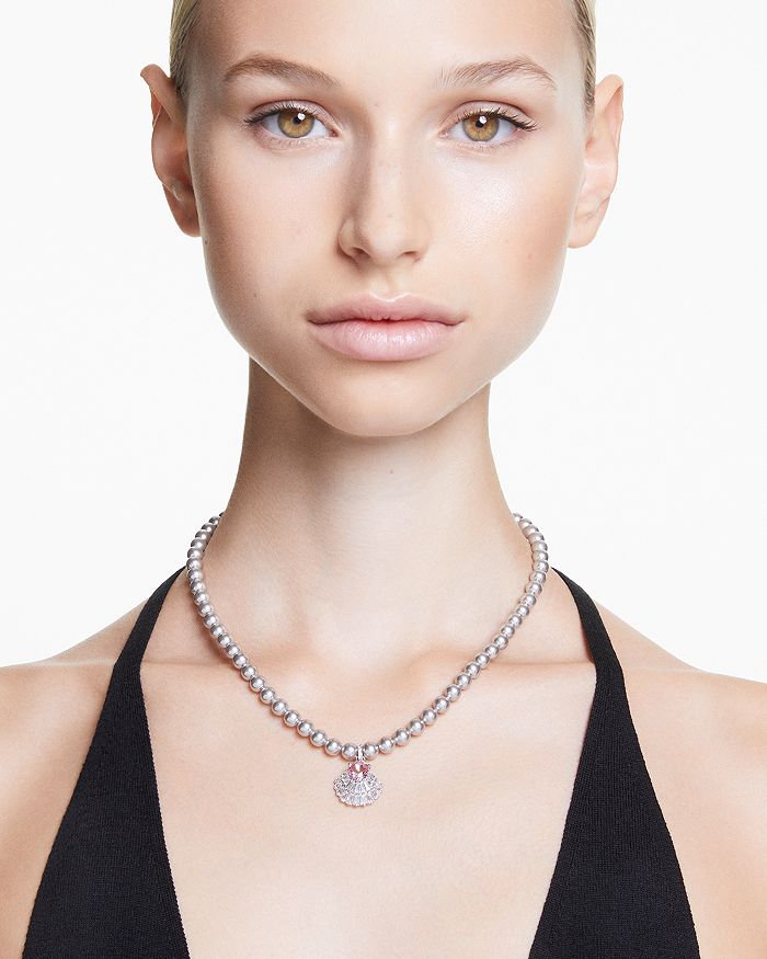Swarovski Idyllia Crystal Shell Beaded Pendant Necklace in Rhodium Plated, 15-17.71