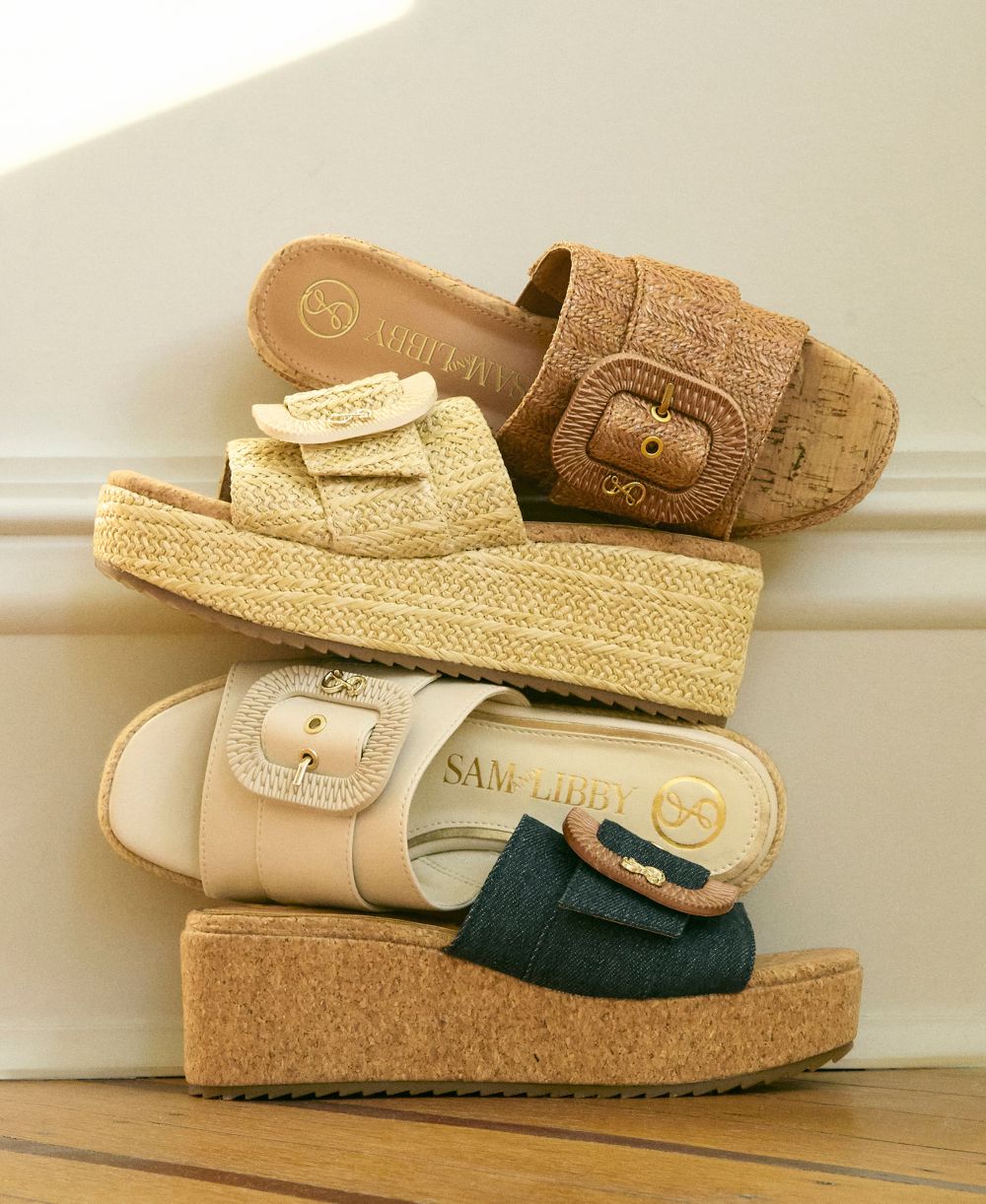 Sam and Libby Womens Crysta Buckle Platform Wedge Sandals