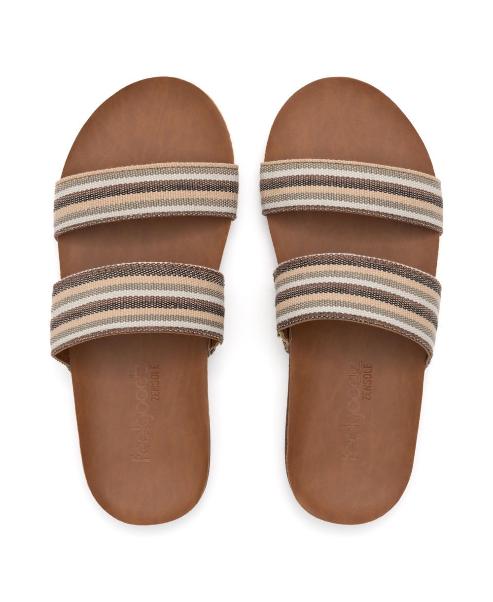 Feelgoodz WOMEN S ZENSOLE VISTAS FAUX LEATHER DOUBLE STRAP SLIDE SANDALS