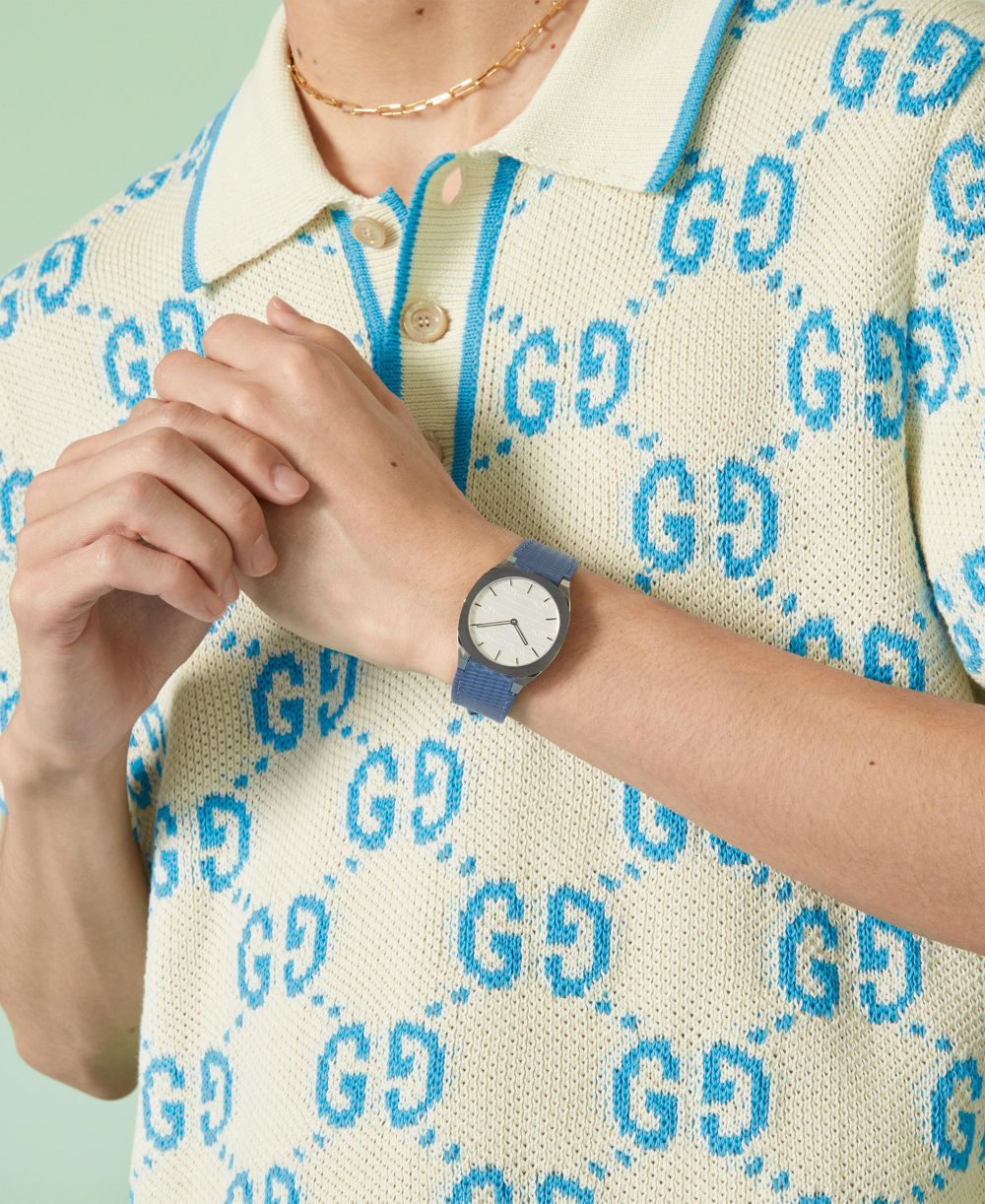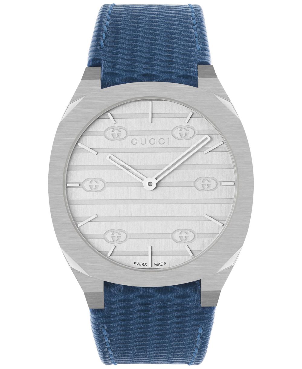 Gucci Womens Swiss 25H Blue Leather Strap Watch 34mm