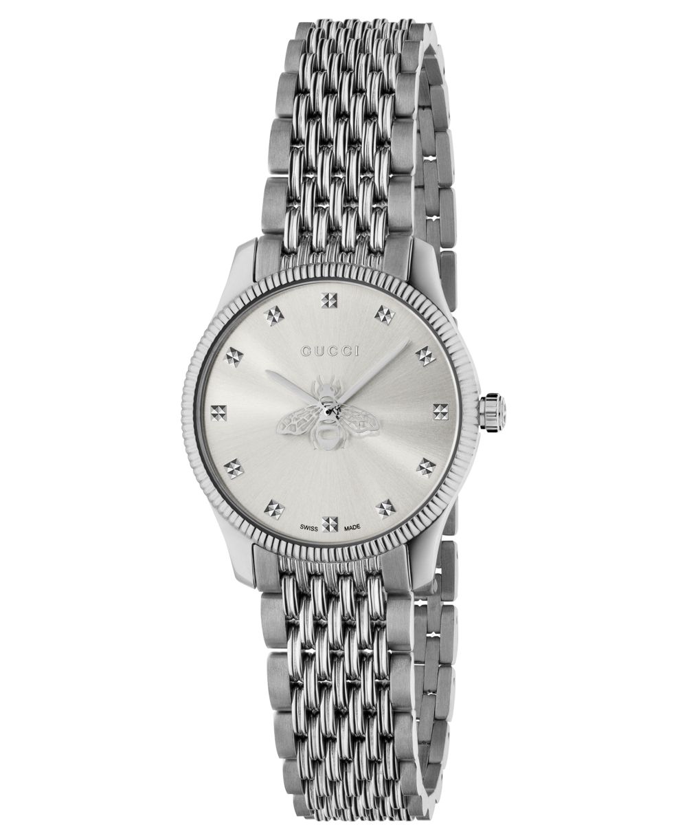 Gucci Womens Swiss G Timeless Stainless Steel Slim Bracelet Watch 29mm