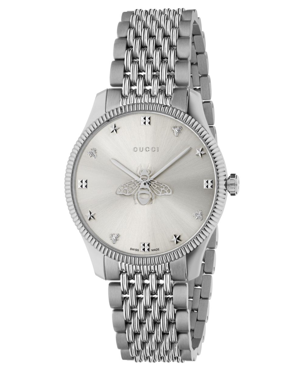 Gucci Womens Swiss G Timeless Slim Stainless Steel Bracelet Watch 36mm