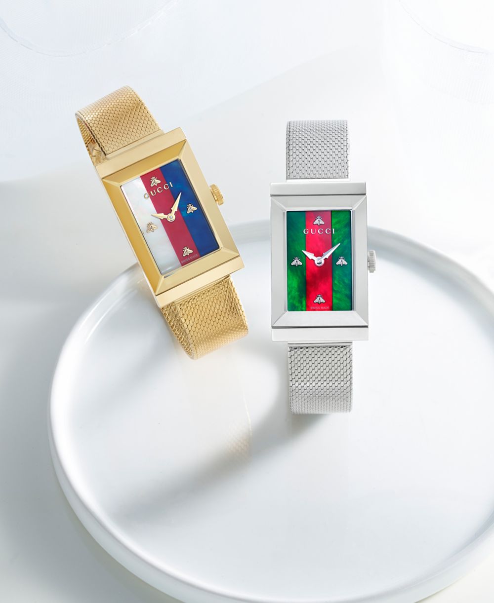 Gucci G Frame Stainless Steel Mesh Bracelet Watch 21x34mm