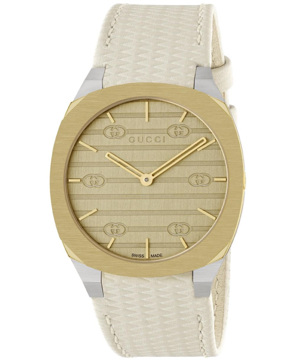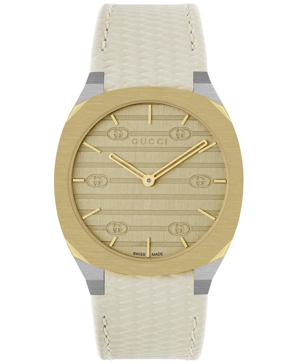 Gucci Womens Swiss 25H White Leather Strap Watch 34mm