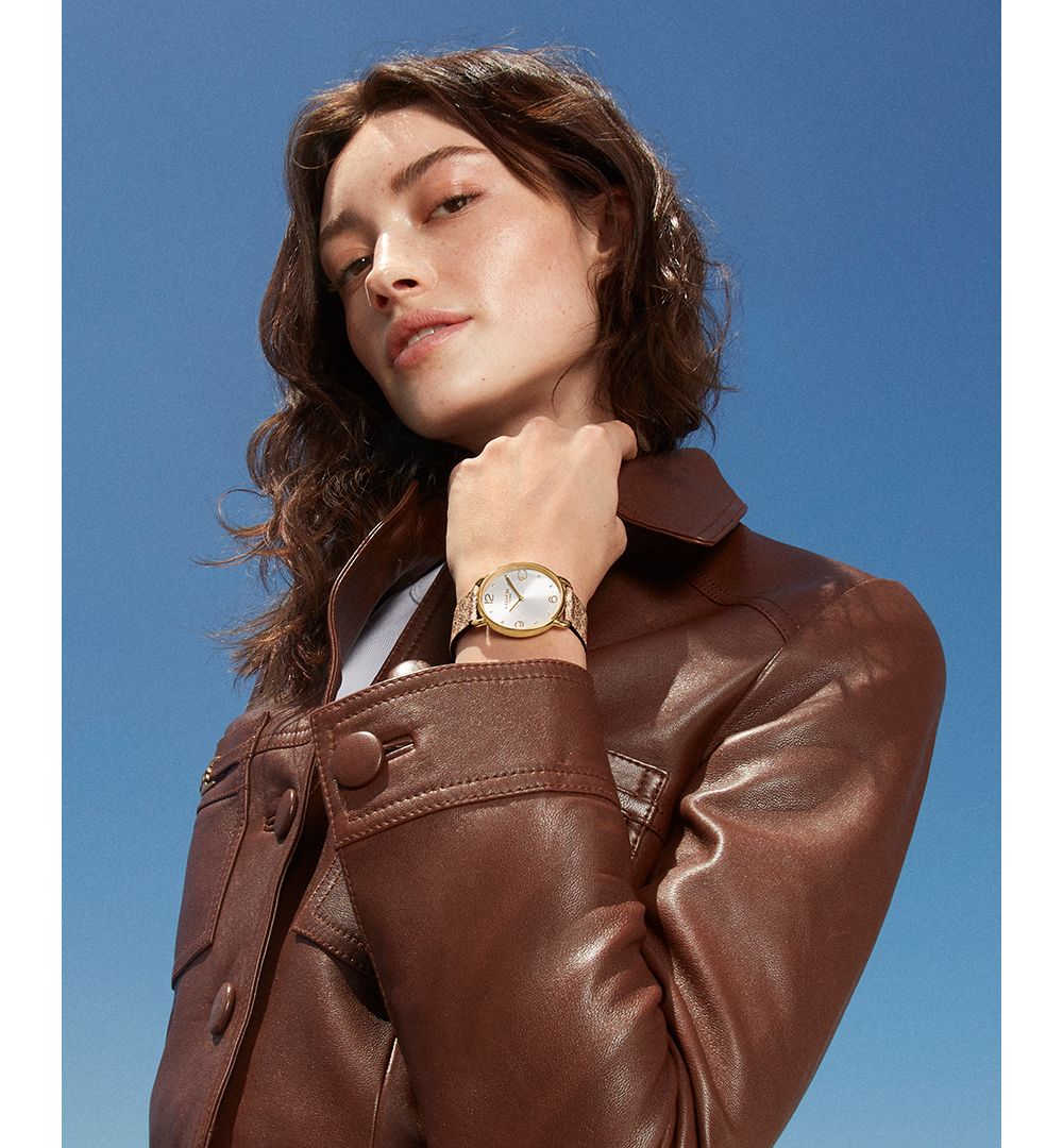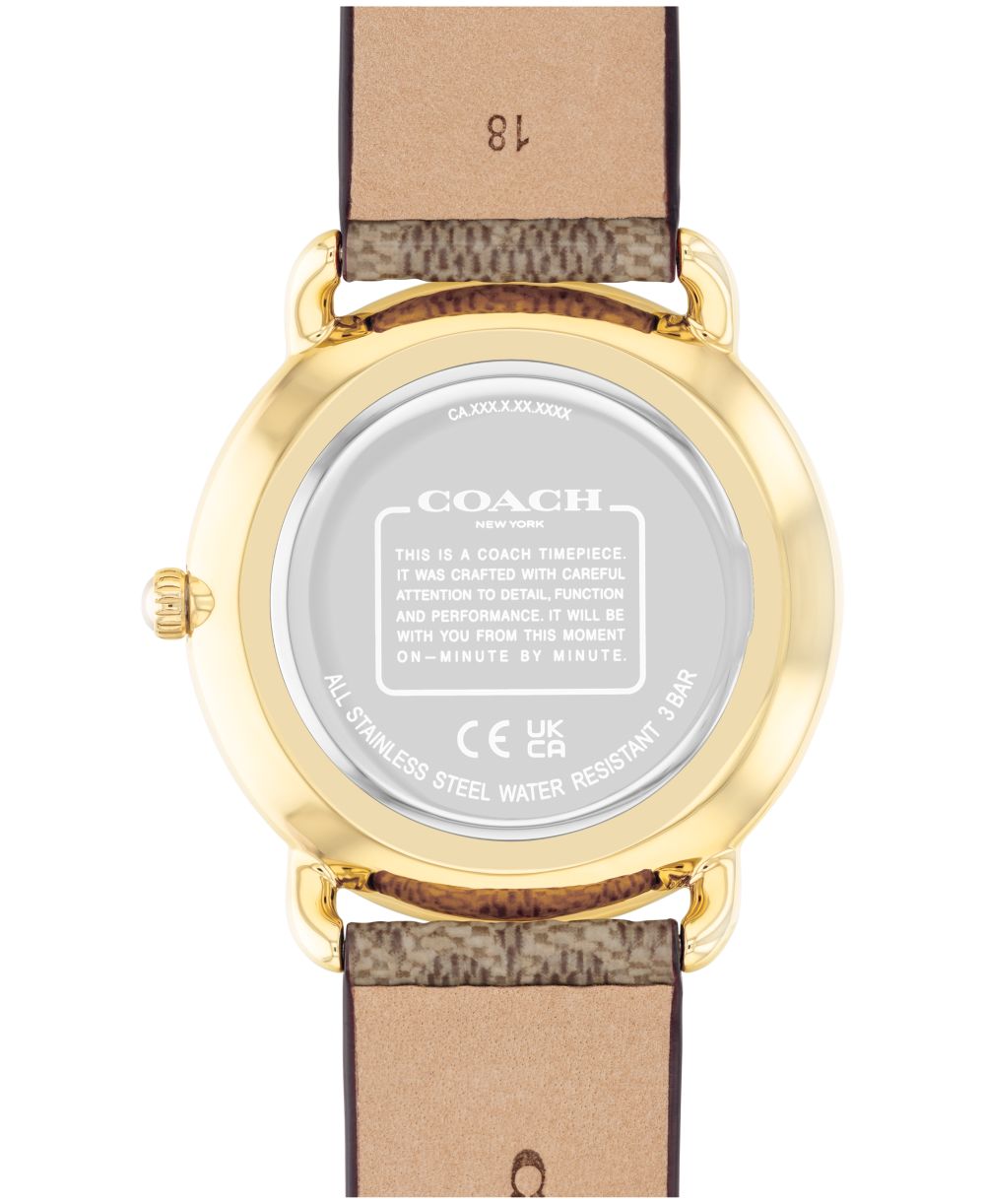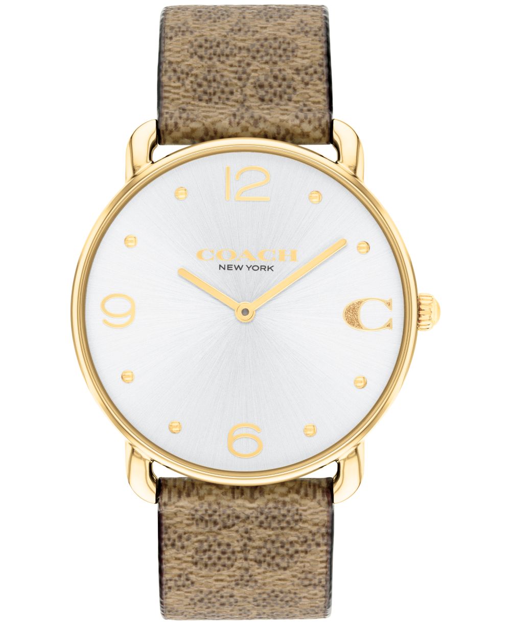 COACH Womens Elliot Signature Tan Canvas Strap Watch 36mm