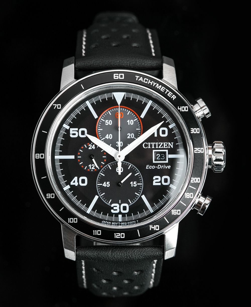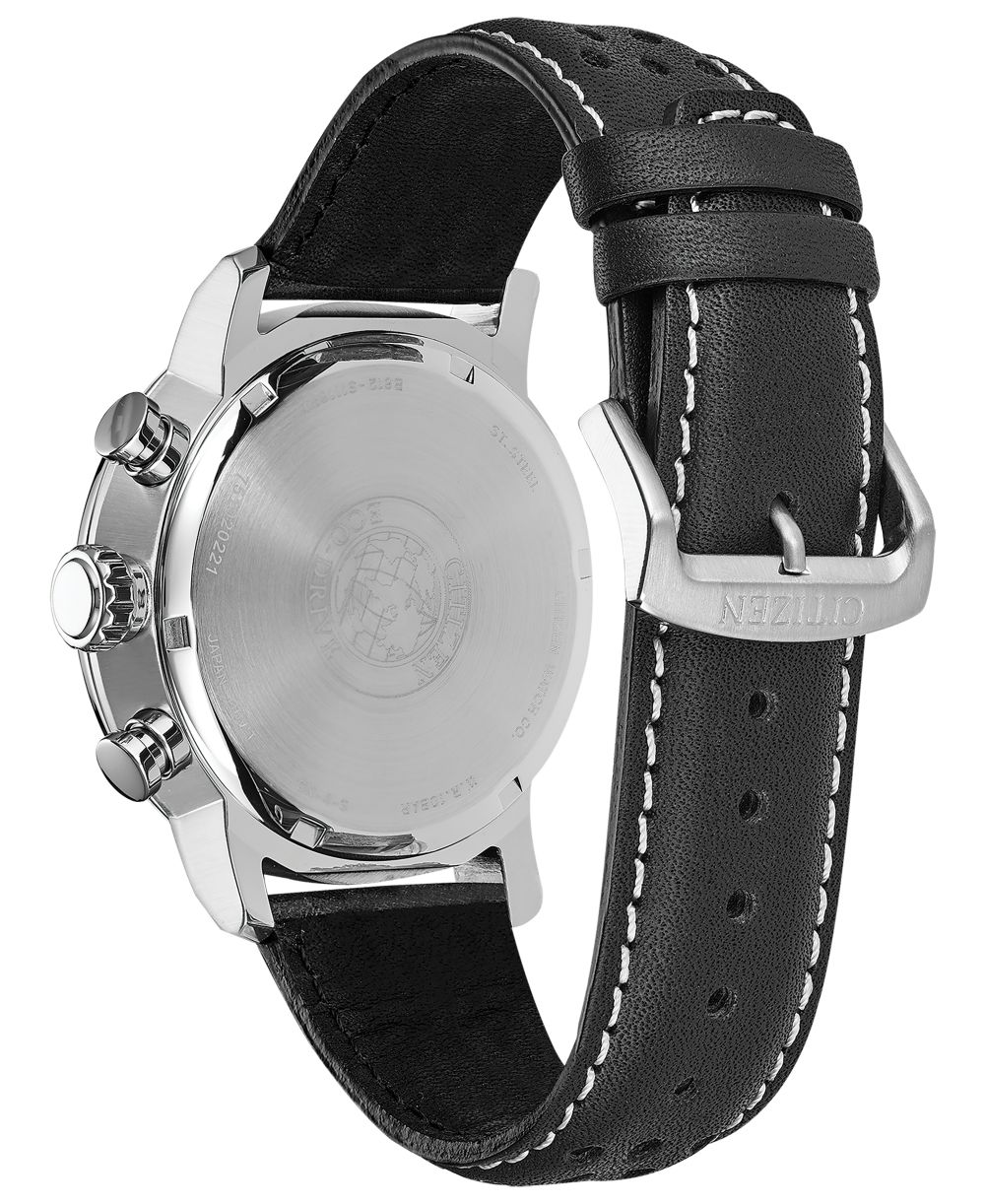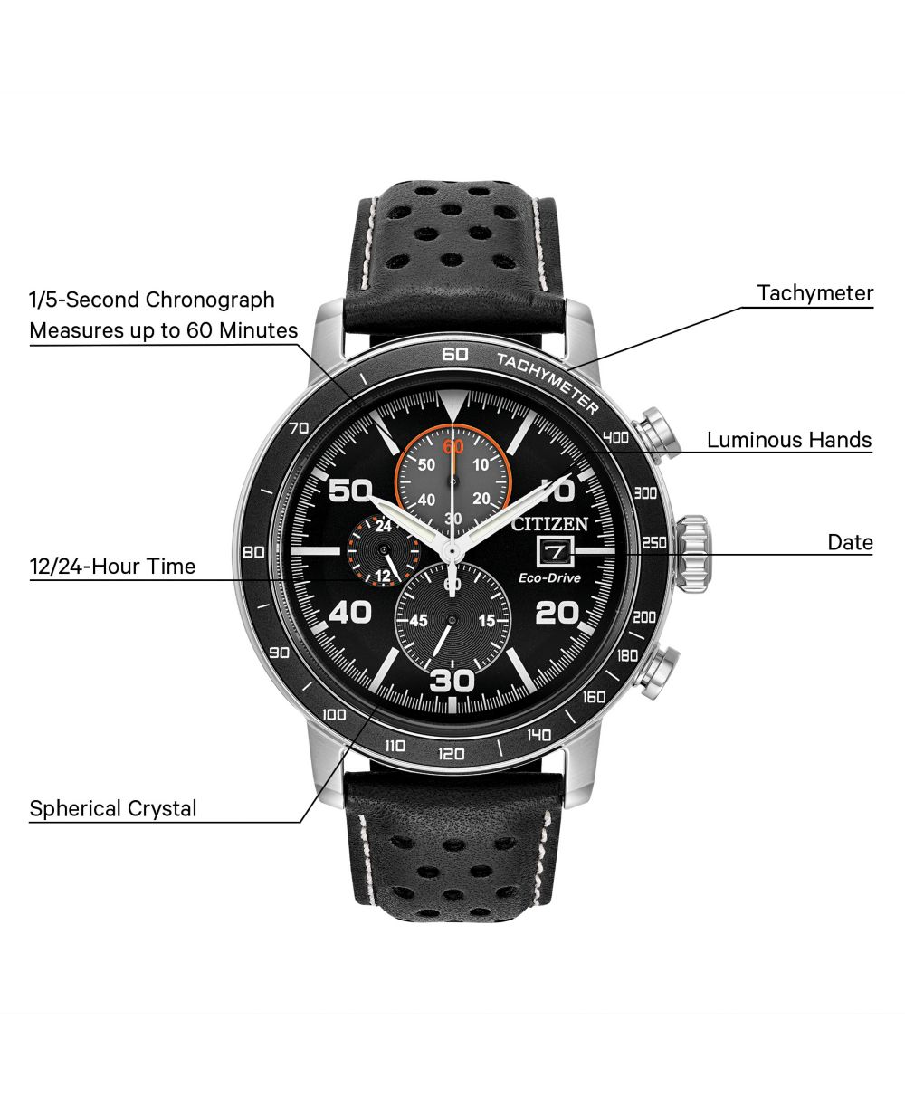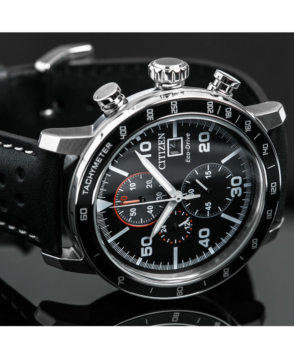 Citizen Eco Drive Mens Chronograph Black Leather Strap Watch 44mm
