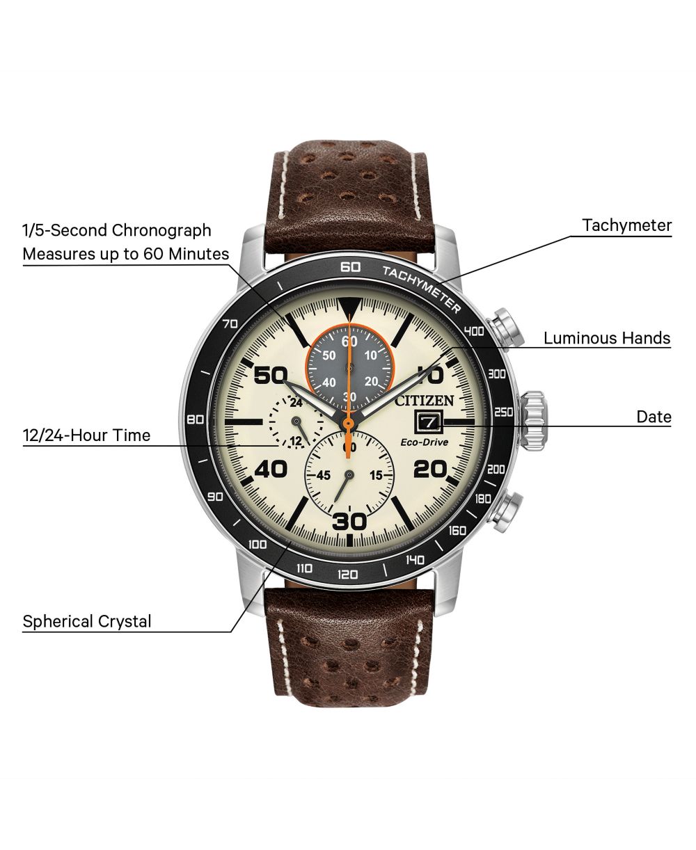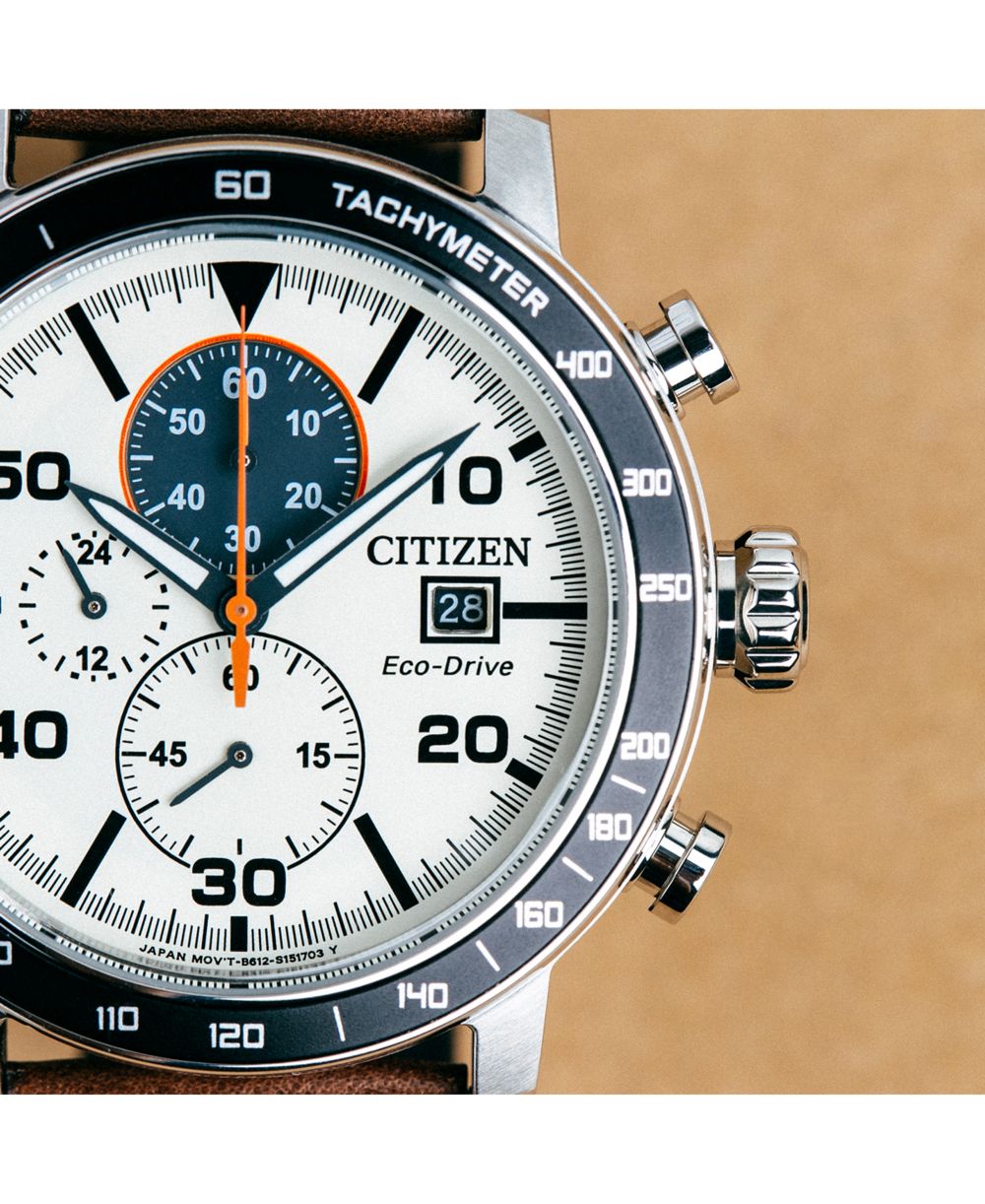 Citizen Eco Drive Mens Chronograph Brown Leather Strap Watch 44mm