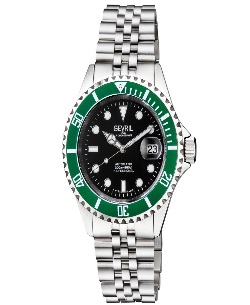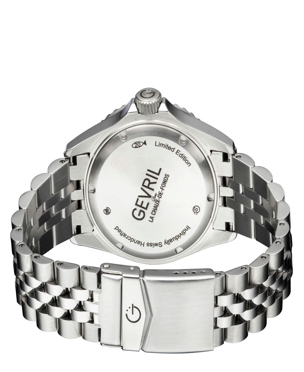 Gevril Mens Wall Street Swiss Automatic Silver Tone Stainless Steel Bracelet Watch 43mm