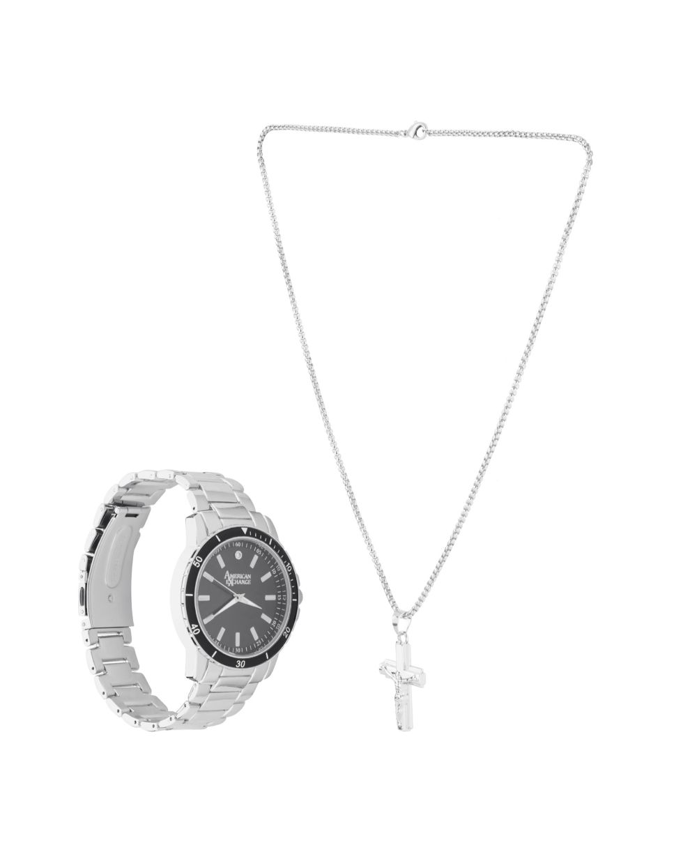 American Exchange Mens Quartz Silver Alloy Watch 42mm Gift Set