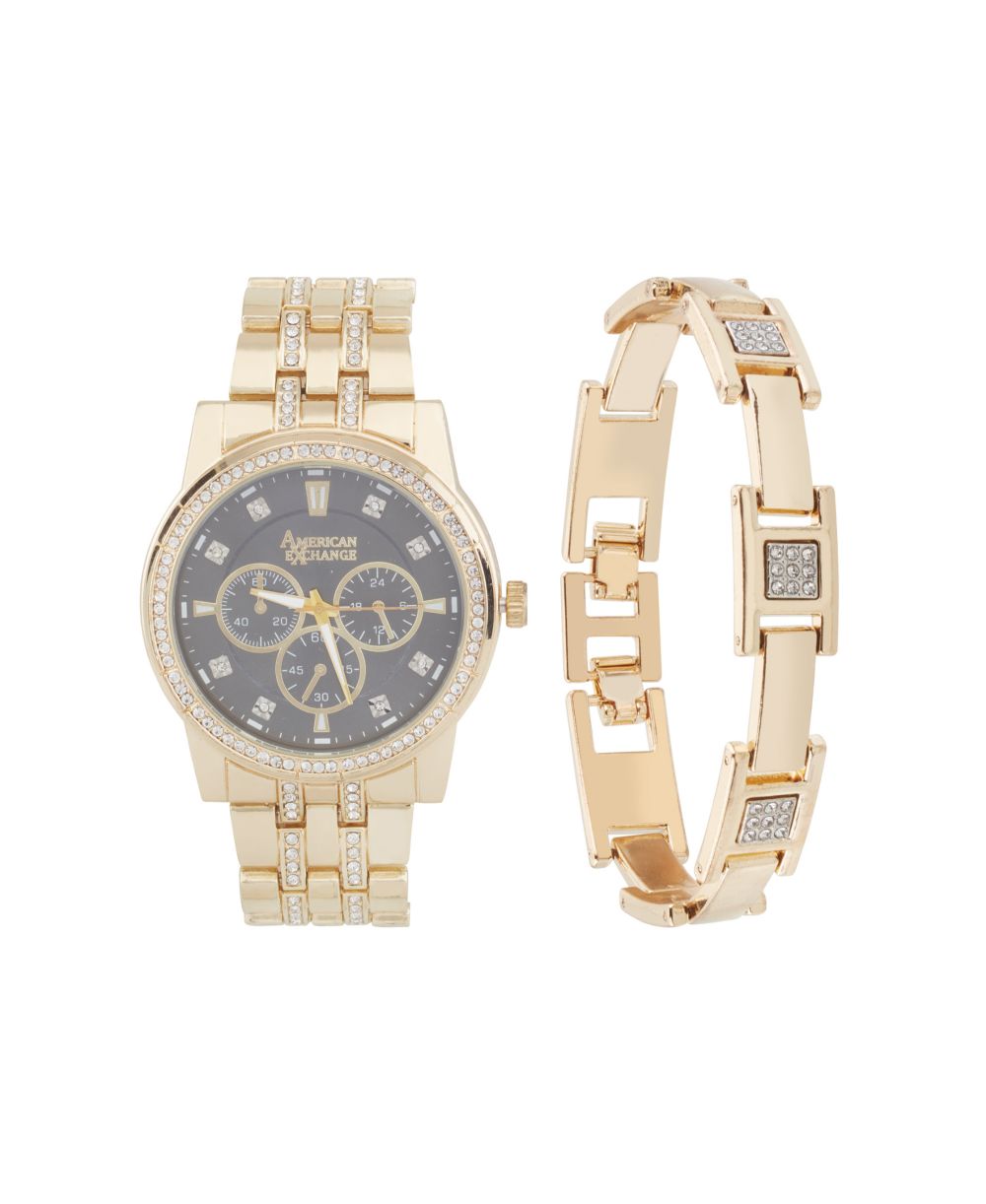 American Exchange Mens Crystal Bracelet Watch 46mm Gift Set