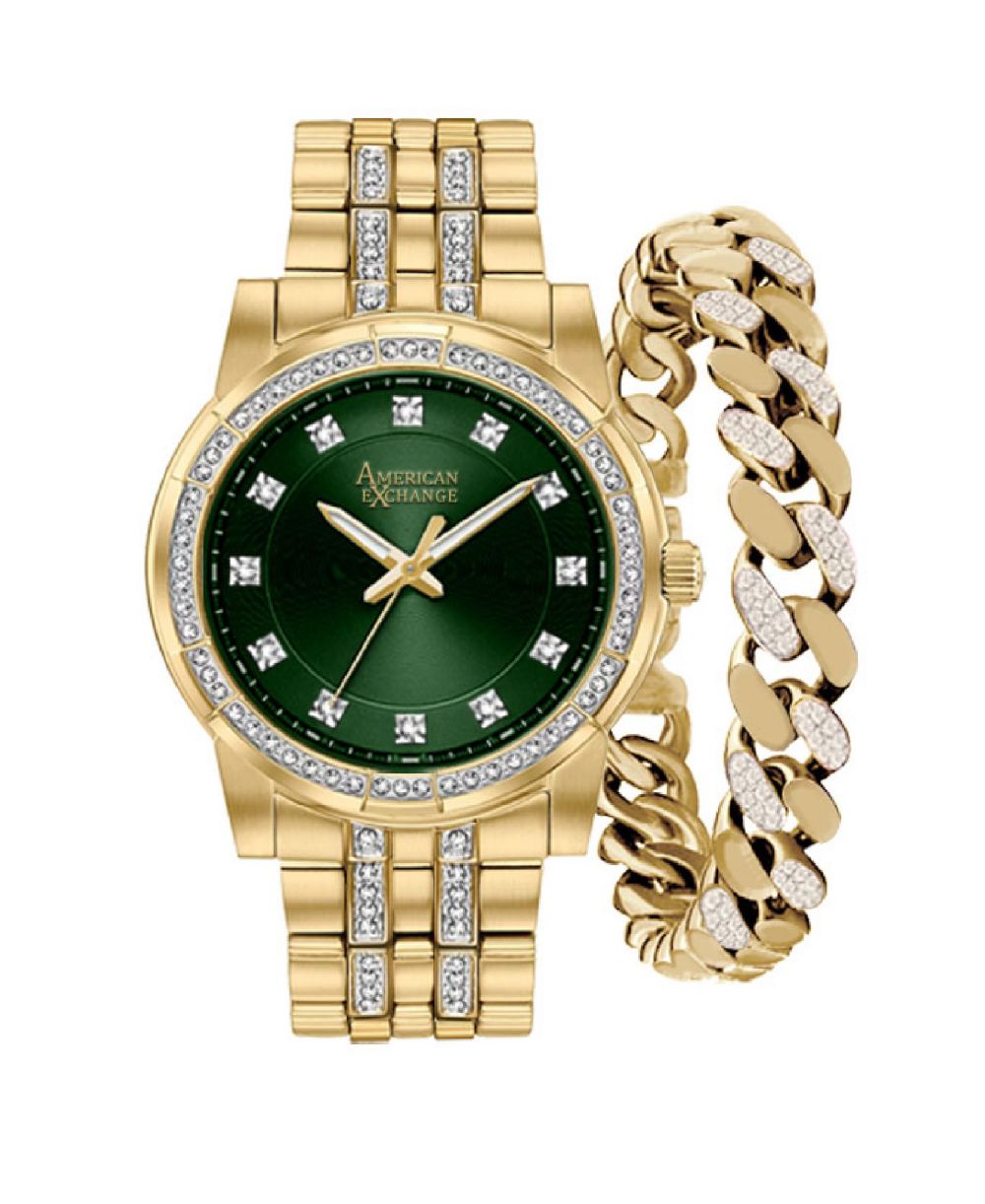 American Exchange Mens Crystal Bracelet Watch 46mm Gift Set