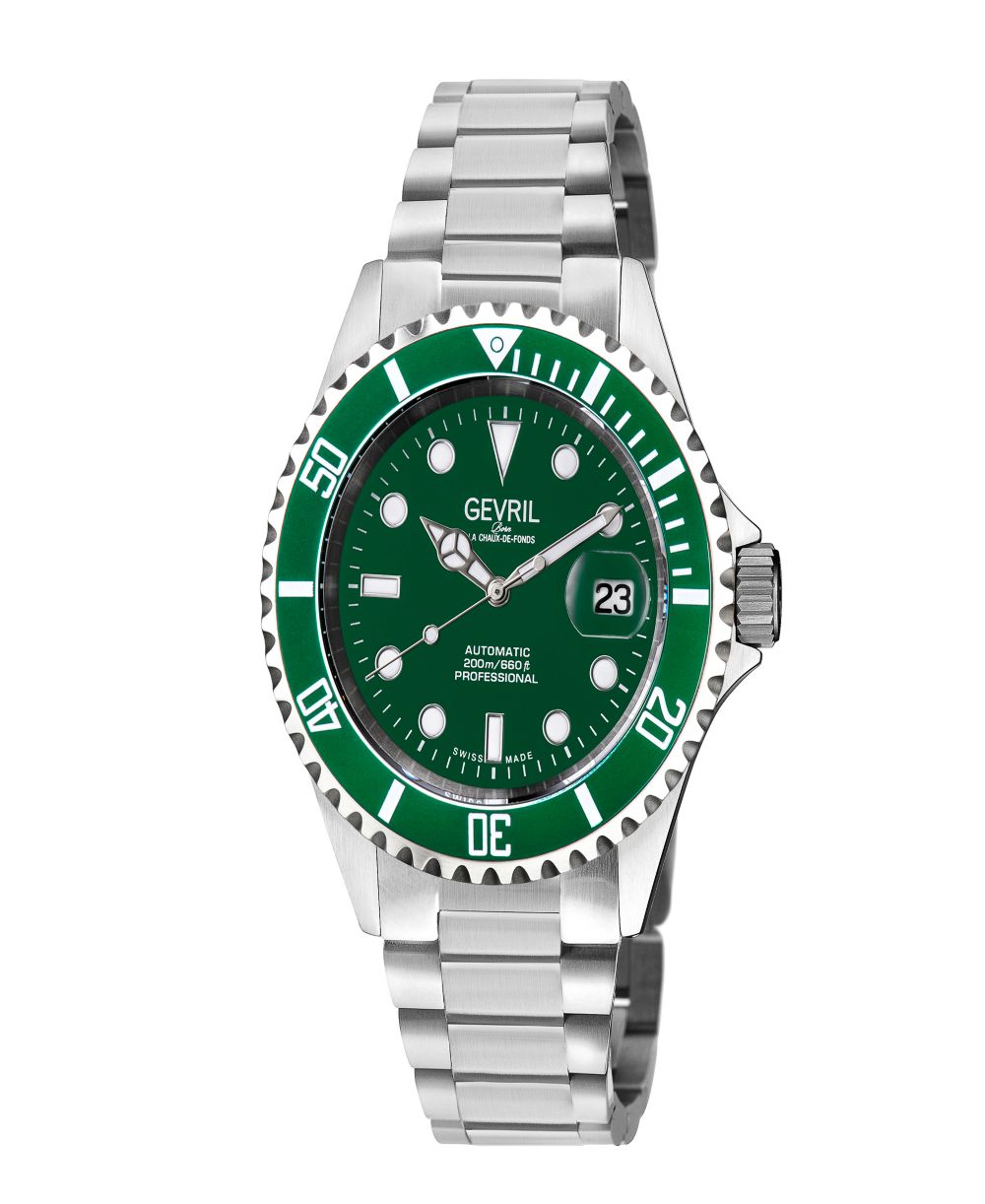 Gevril Mens Wallstreet Silver Tone Stainless Steel Watch 43mm