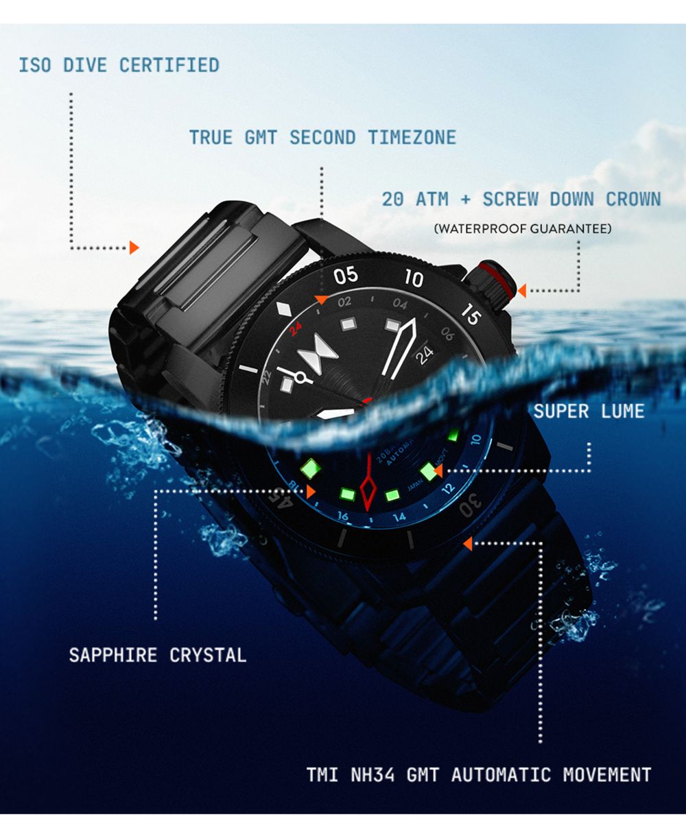 MVMT Mens Cali Diver Automatic Black Stainless Steel Bracelet Watch 40mm
