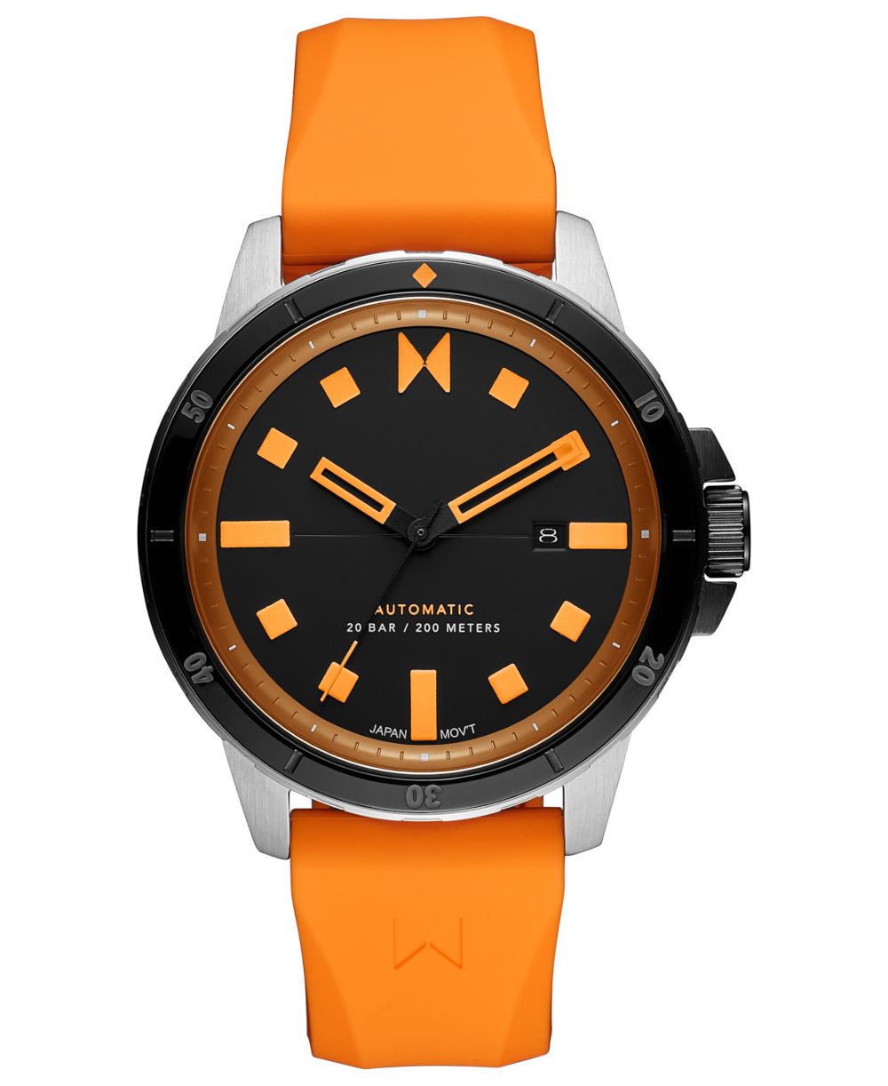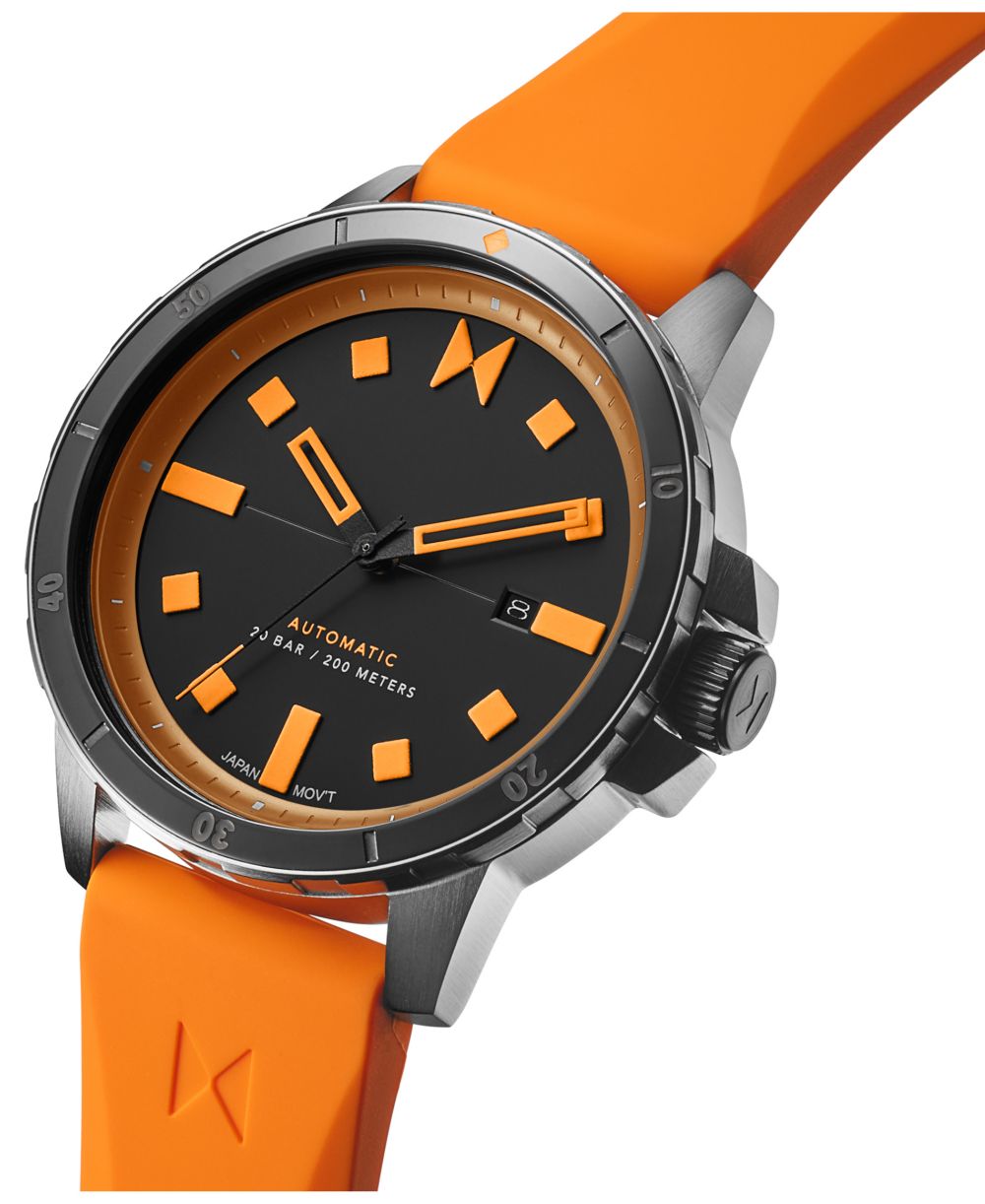 MVMT Mens Minimal Sport Automatic Orange Silicone Strap Watch 45mm