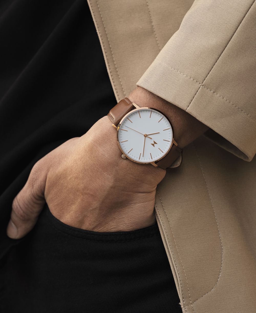 MVMT Mens Legacy Slim Brown Leather Strap Watch 42mm