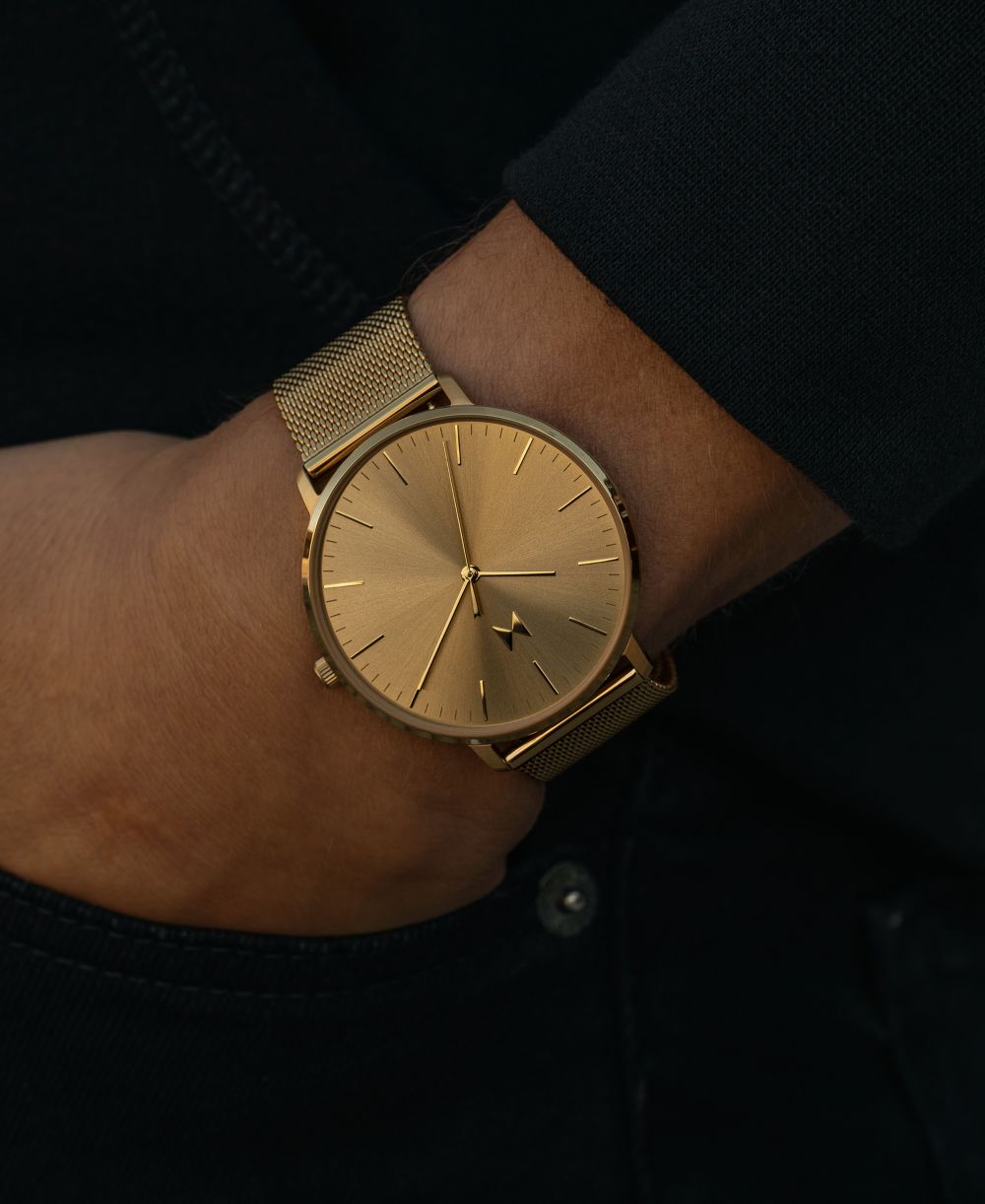 MVMT Mens Legacy Slim Gold Tone Mesh Bracelet Watch 42mm