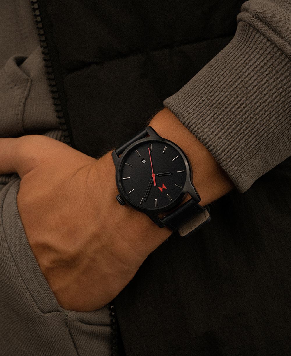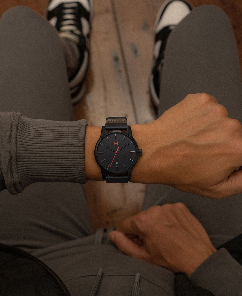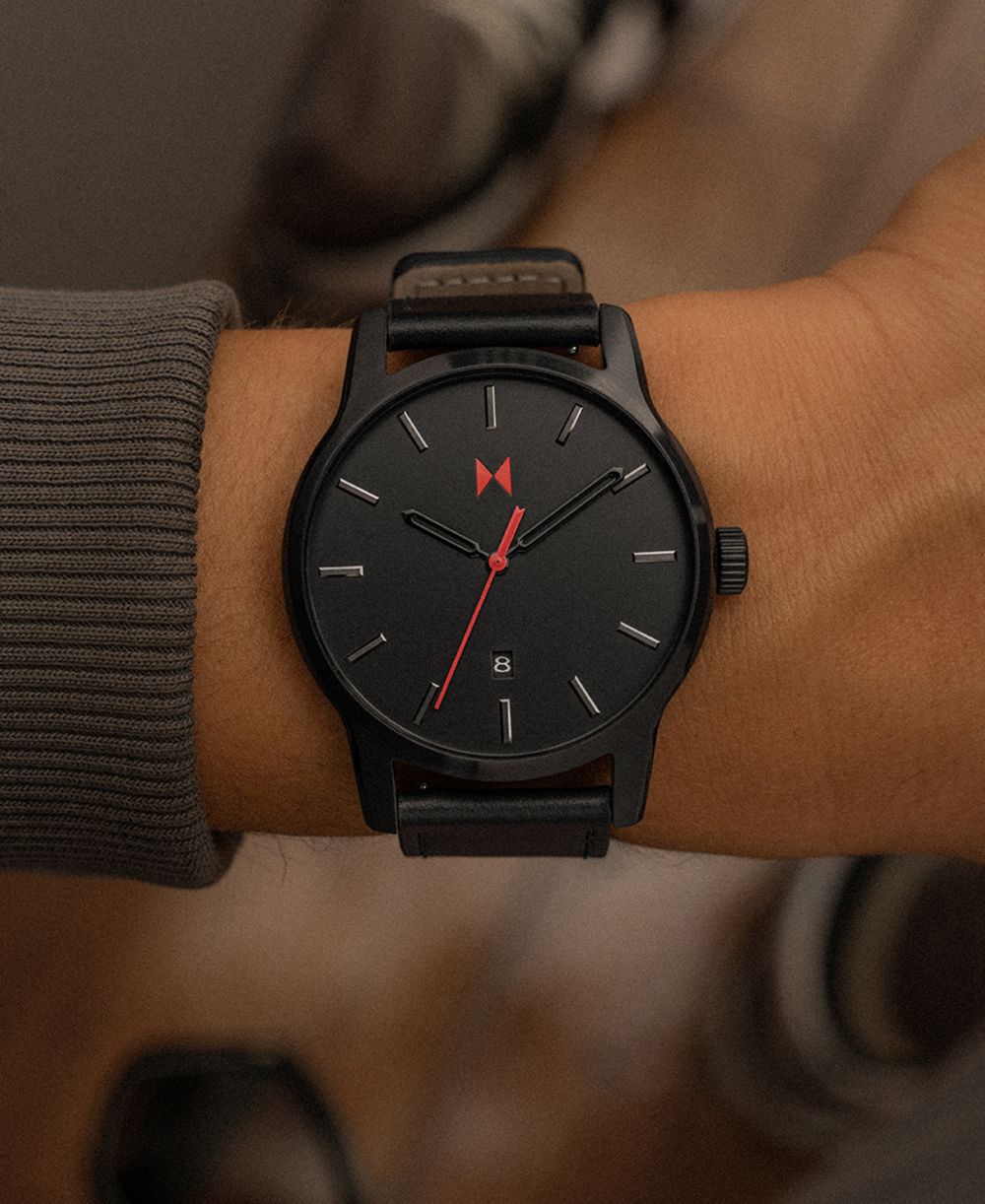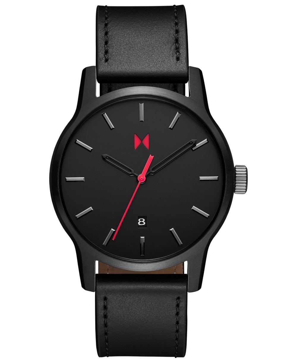 MVMT Mens Classic II Black Leather Strap Watch 44mm