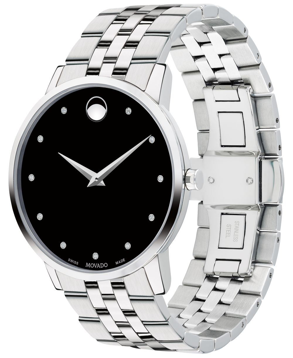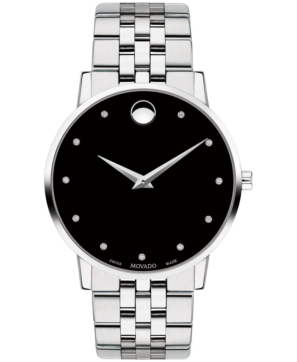 Movado Mens Swiss Museum Classic Diamond Accent Stainless Steel Bracelet Watch 40mm