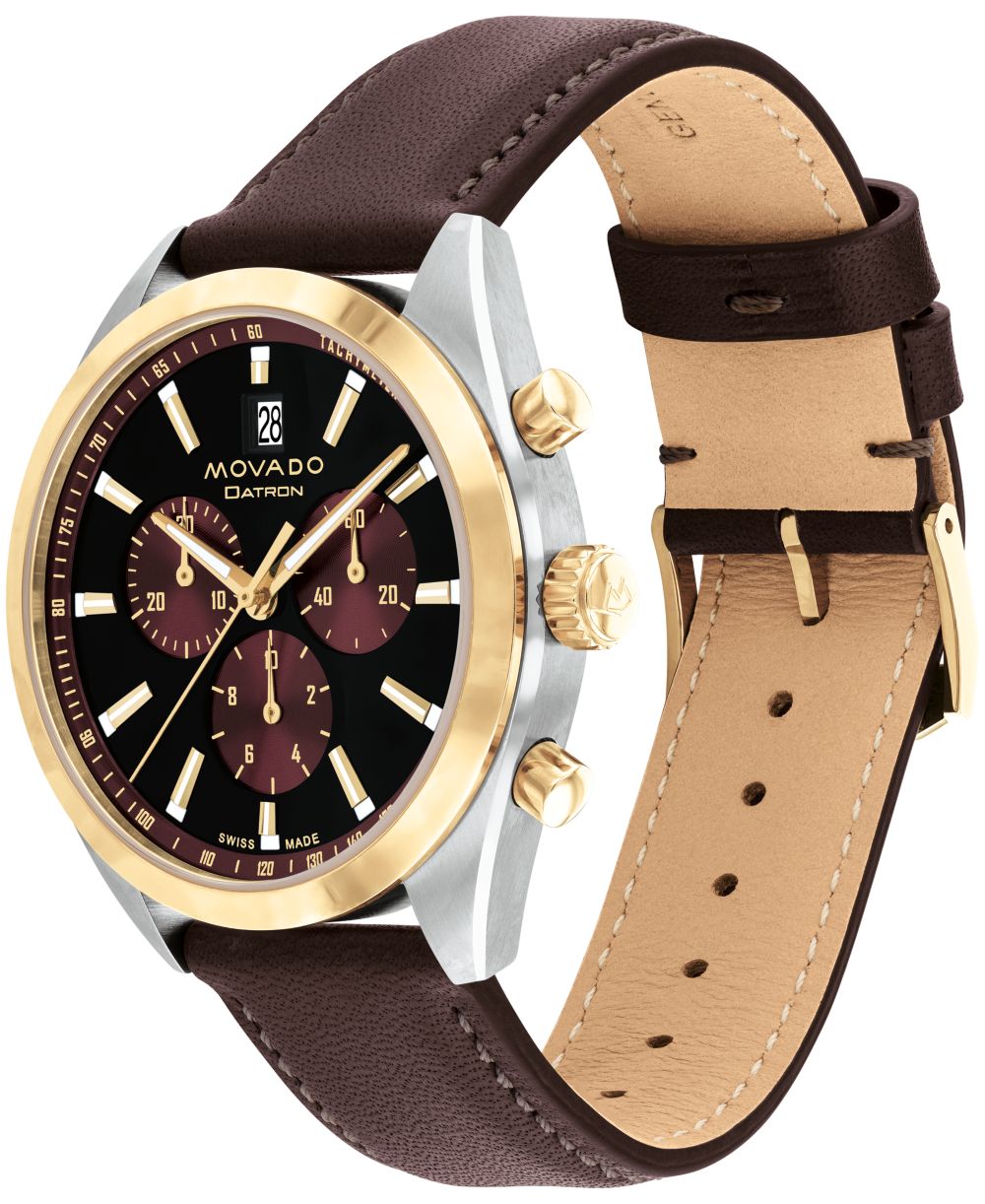 Movado Mens Datron Swiss Quartz Chrono Brown Leather Watch 40mm