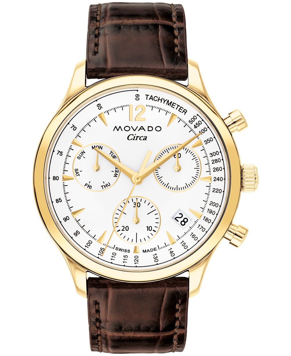 Movado Mens Heritage Circa Swiss Quartz Chronograph Brown Genuine Leather Strap Watch 43mm