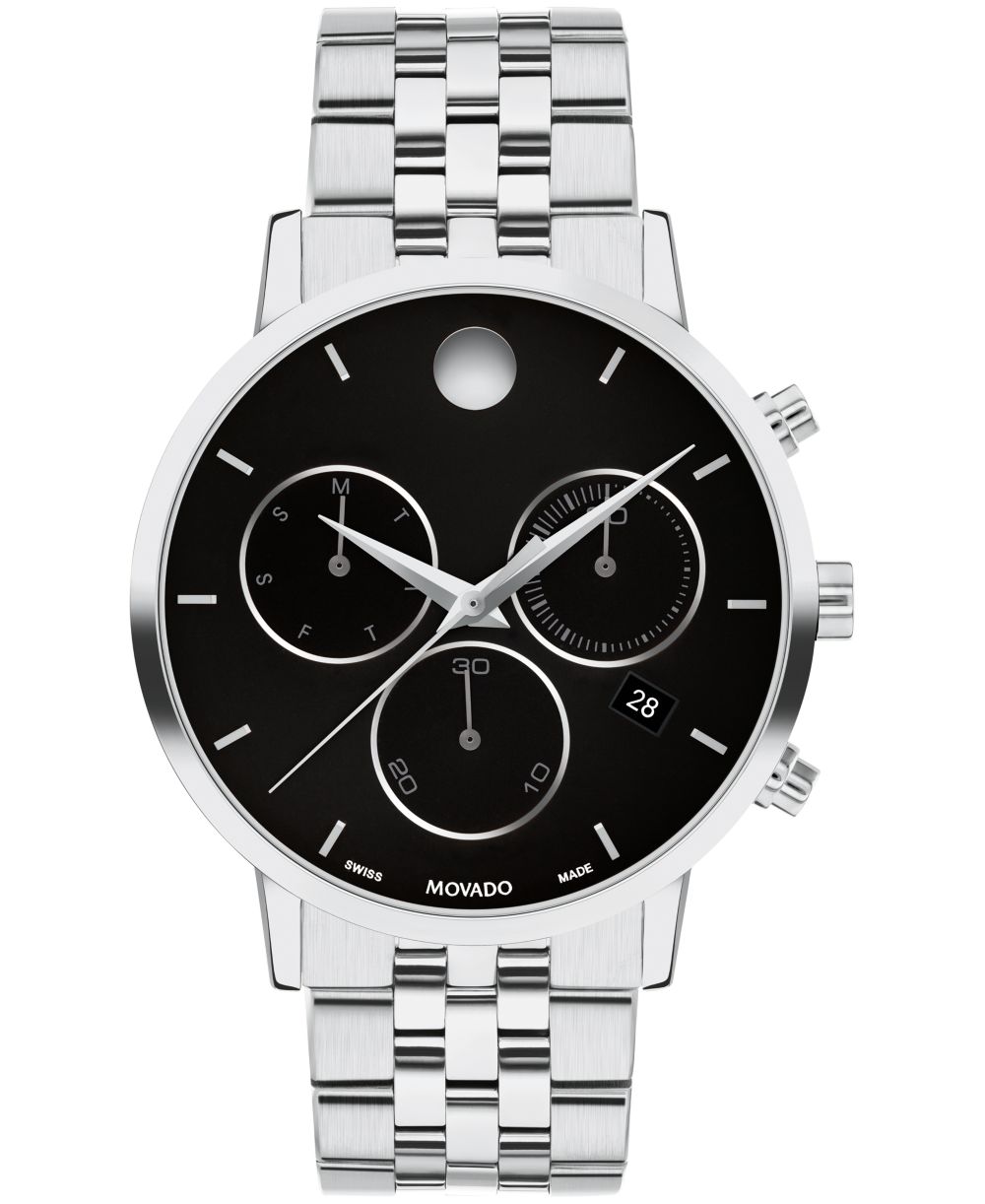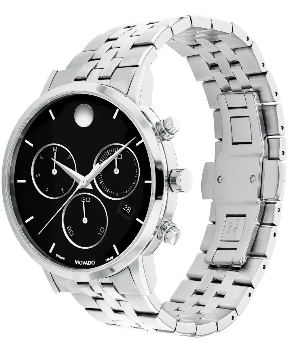Movado Mens Museum Classic Swiss Quartz Chrono Silver Tone Stainless Steel Watch 42mm